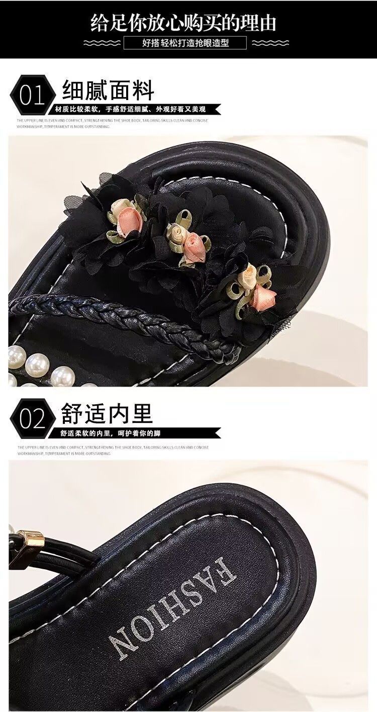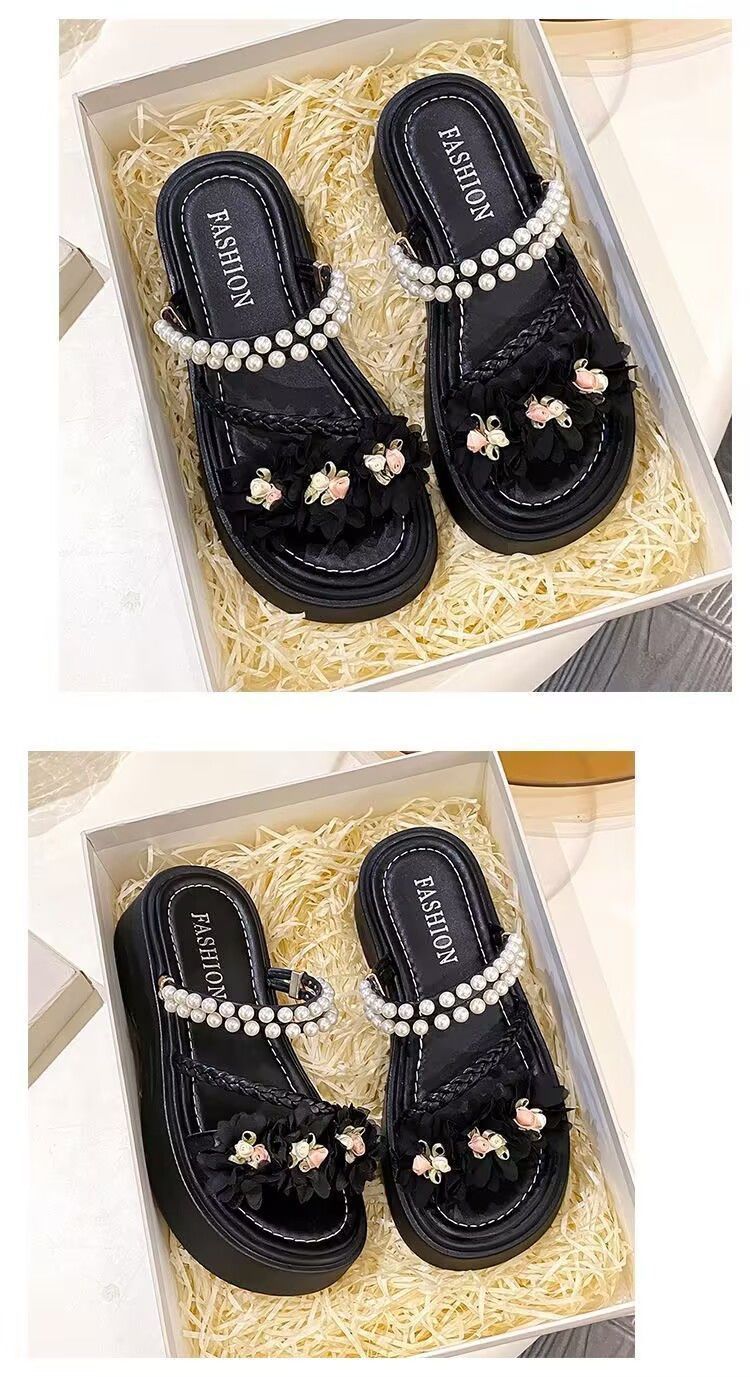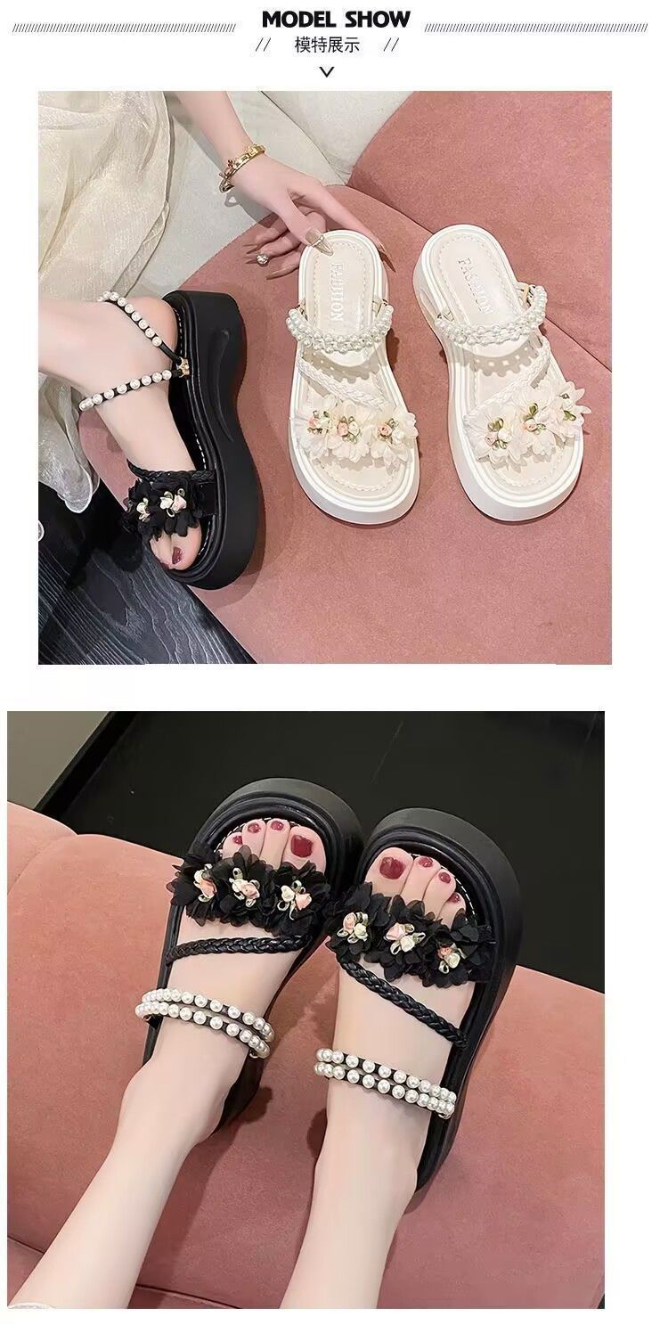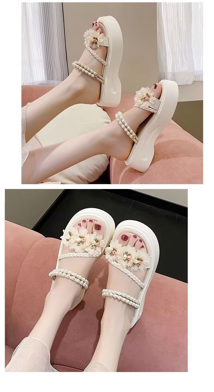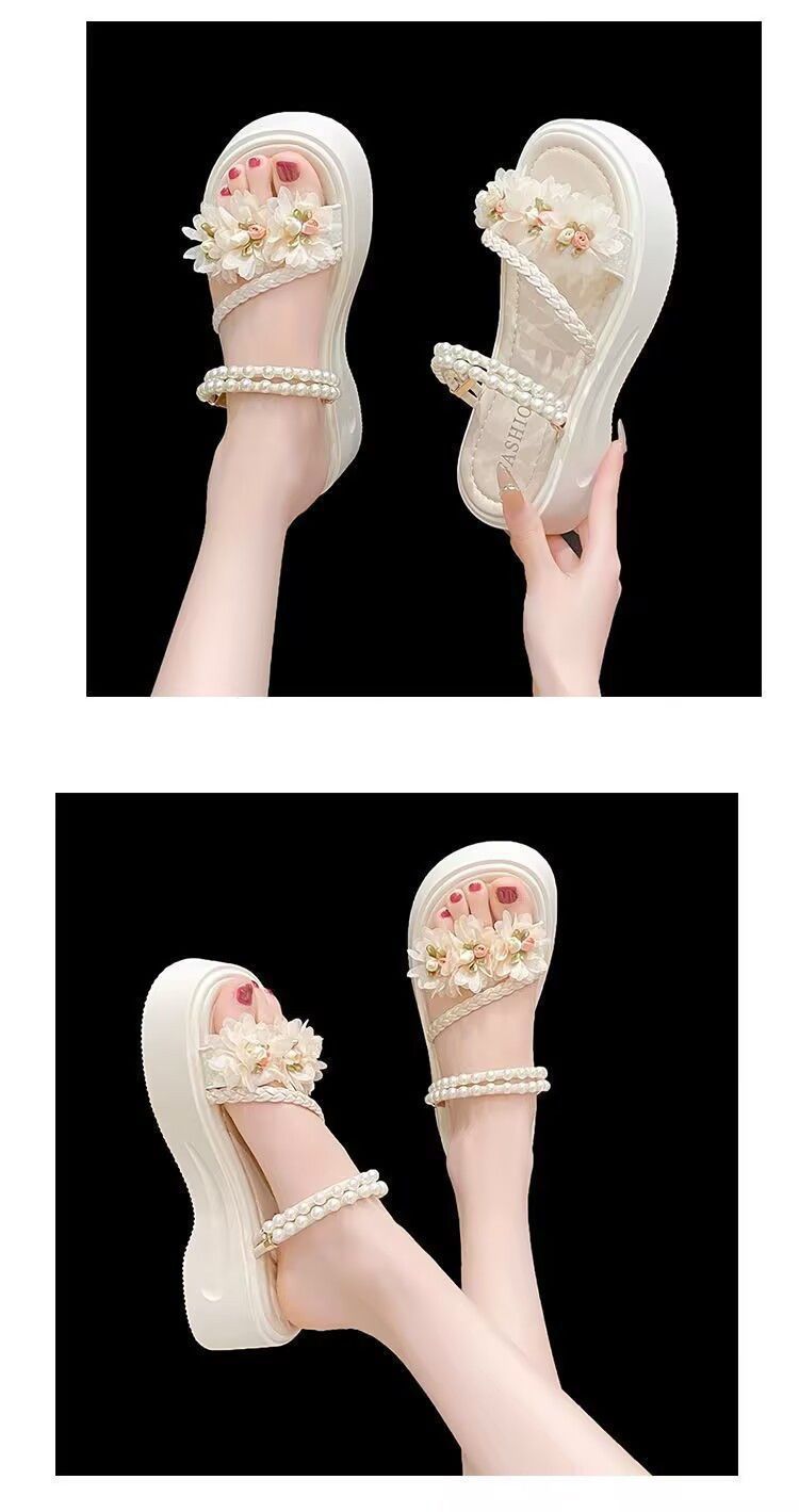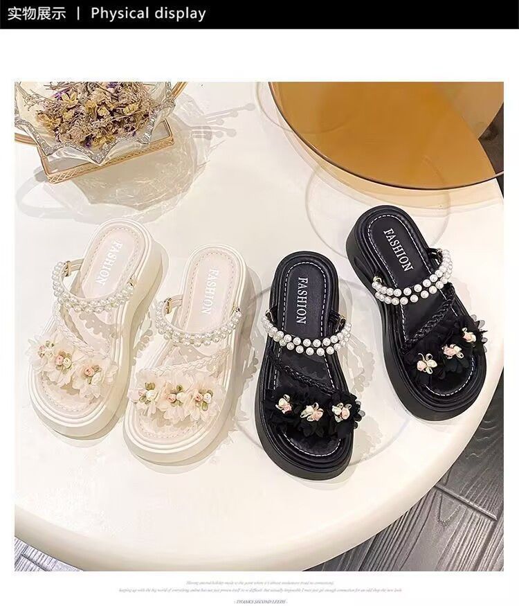 2025 여성을위한 새로운 작은 향기 꽃 슬리퍼 여름 겉옷 두꺼운 밑창 해변 휴가 스커트와 여성용 비치 샌들스토어 가기