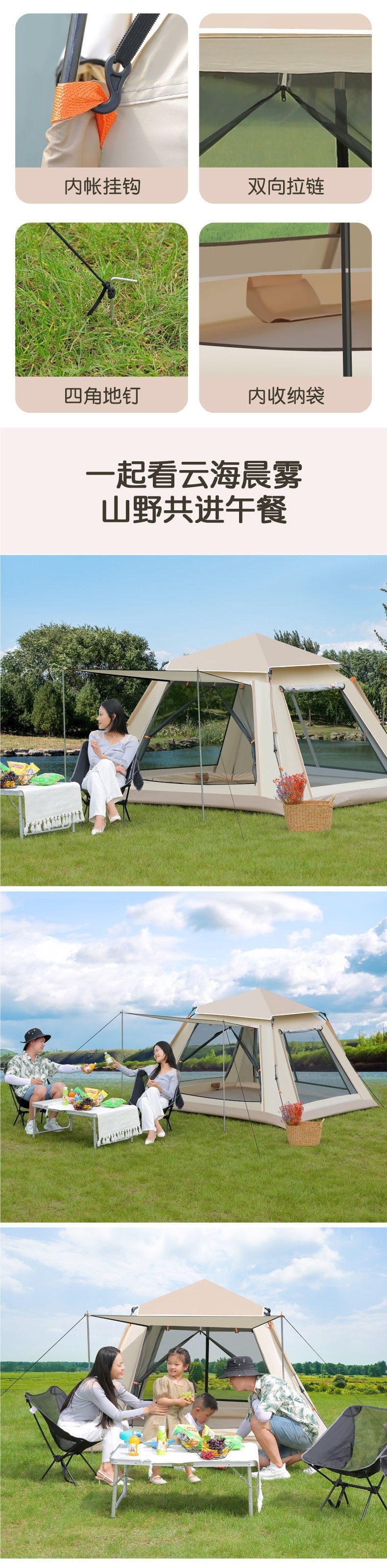 • 텐트 + 방습 매트 + 피크닉 매트 + 공기주입식 베개 2개