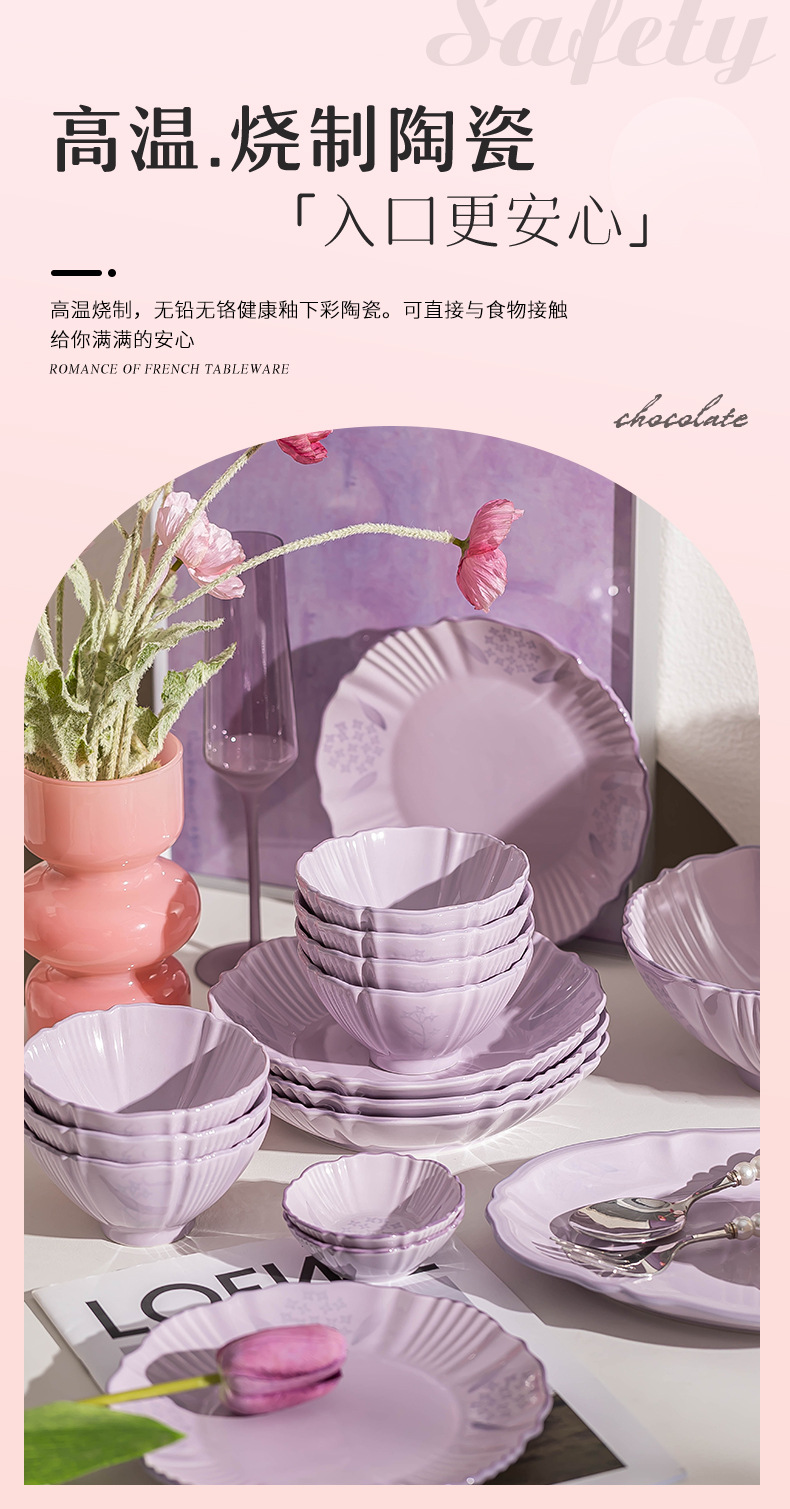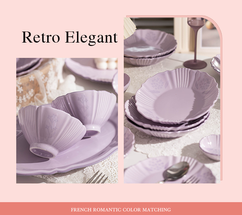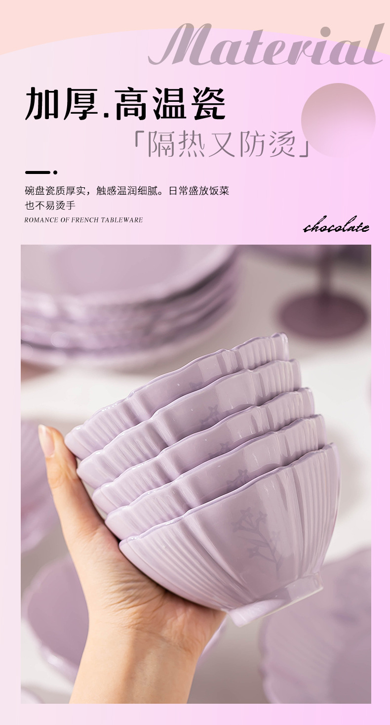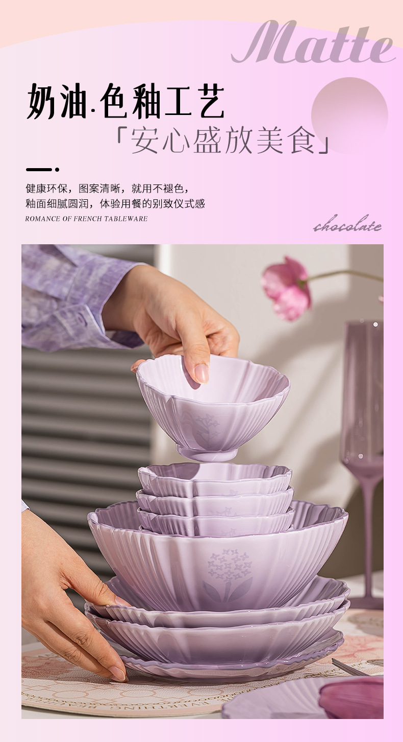 Ins 스타일 크림 보라색 그릇과 접시 세트 가정용 세라믹 식기 그릇 그릇 밥 그릇 수프 그릇 접시 모자 그릇 집들이 선물