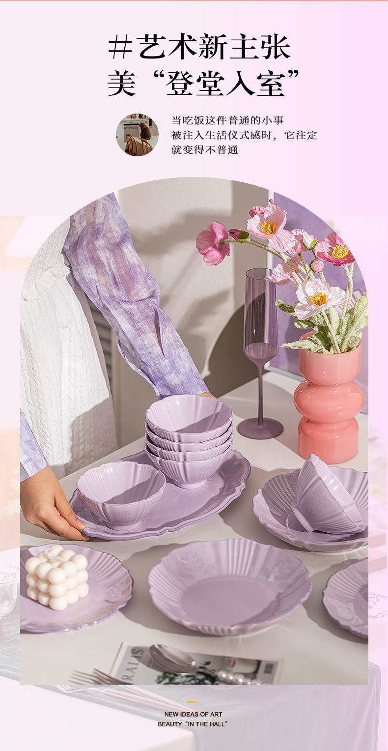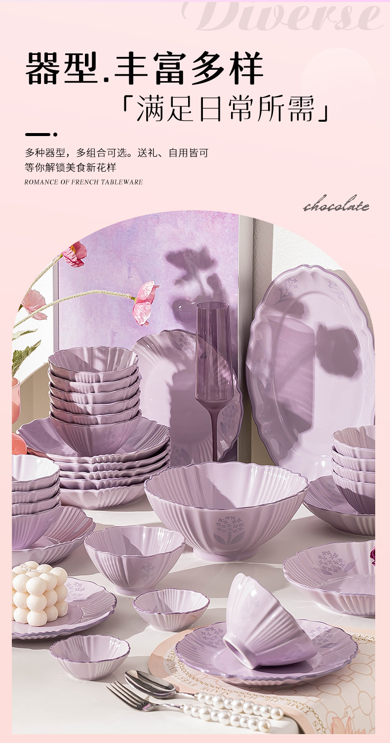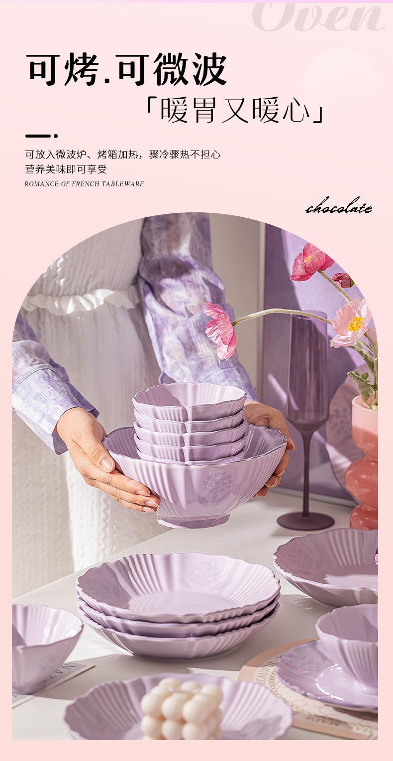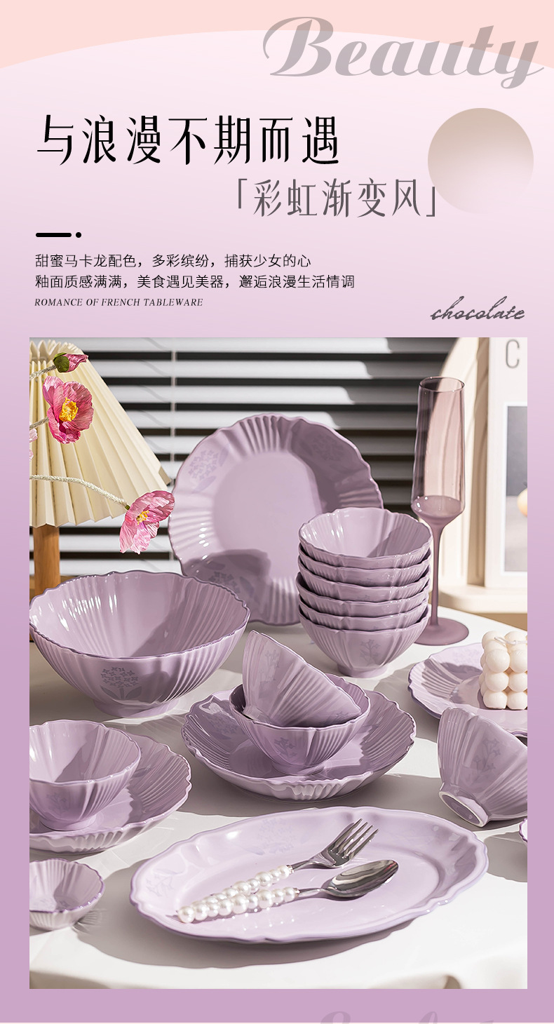 Ins 스타일 크림 보라색 그릇과 접시 세트 가정용 세라믹 식기 그릇 그릇 밥 그릇 수프 그릇 접시 모자 그릇 집들이 선물