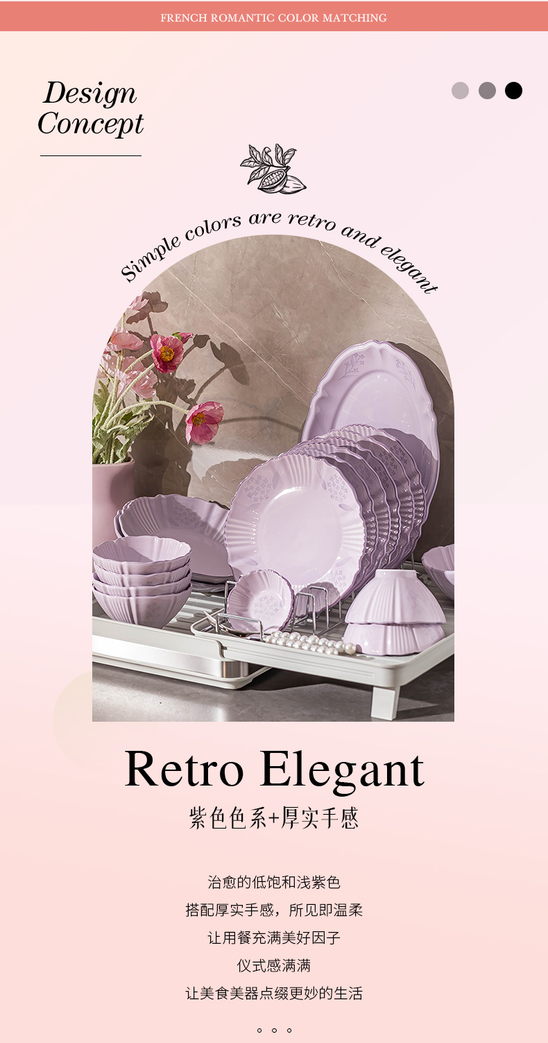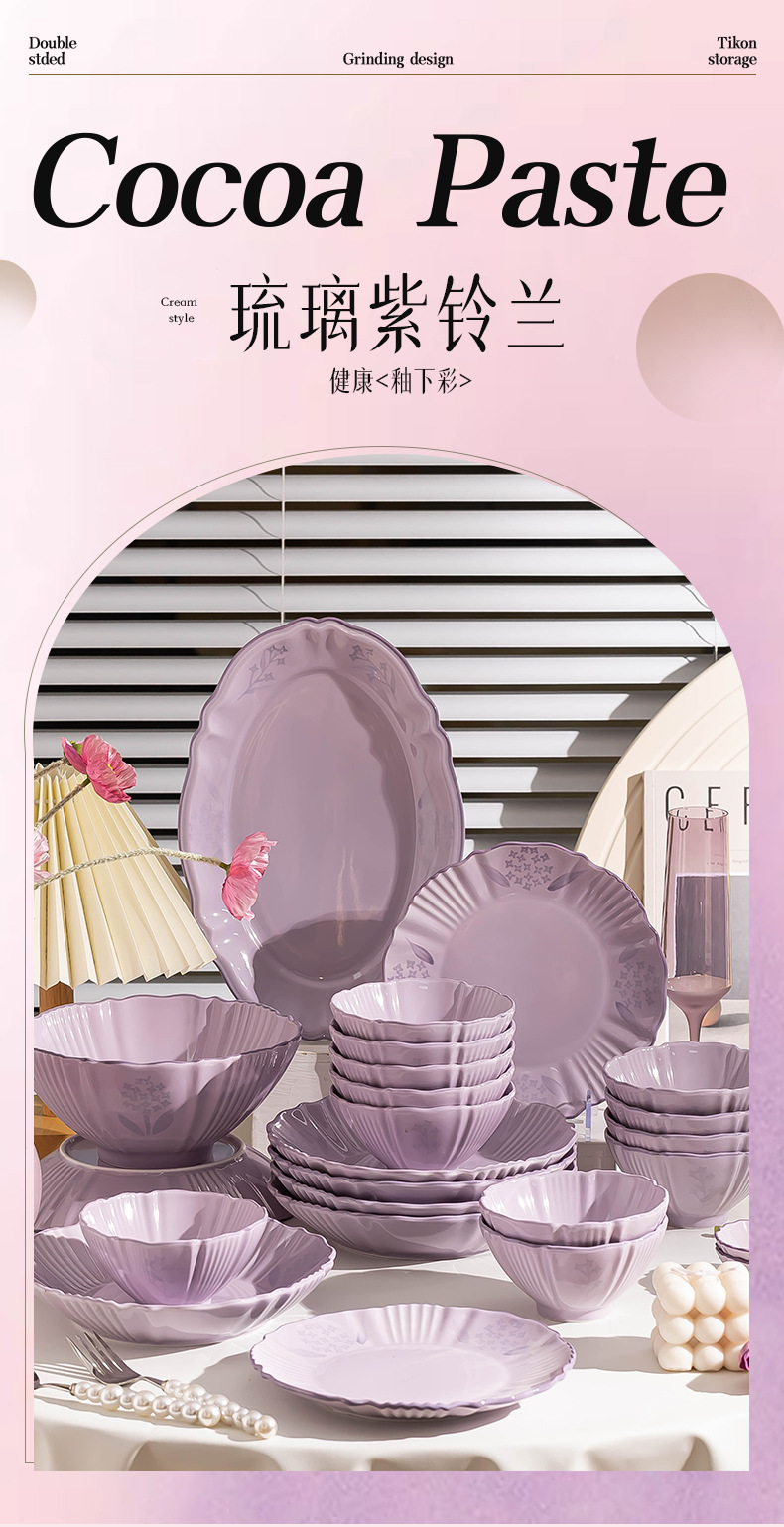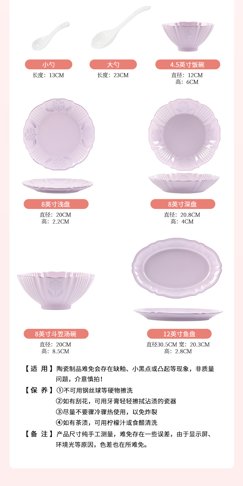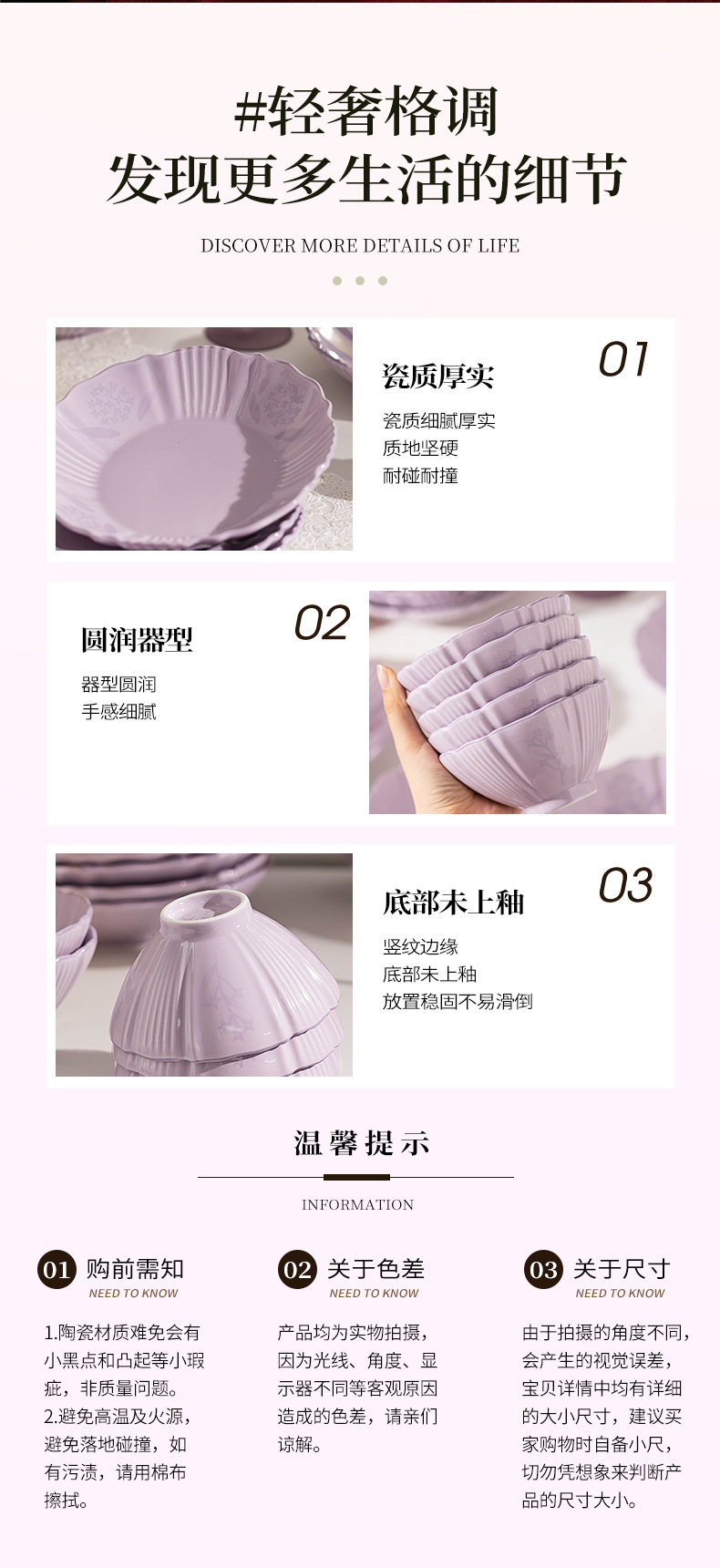 Ins 스타일 크림 보라색 그릇과 접시 세트 가정용 세라믹 식기 그릇 그릇 밥 그릇 수프 그릇 접시 모자 그릇 집들이 선물