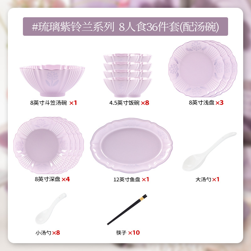 • 글레이즈드 퍼플 은방울꽃 - 8인용 36개 세트(국그릇 포함) [레드 플로럴 선물 상자]