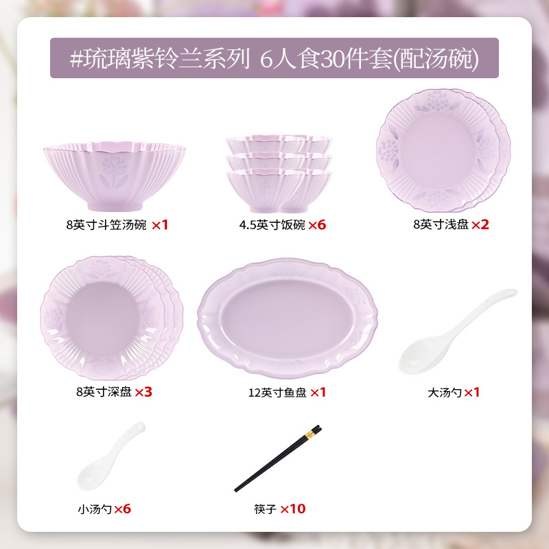 • 글레이즈드 퍼플 은방울꽃 - 국그릇 포함 6인용 30개 세트 [레드 꽃무늬 선물 상자]