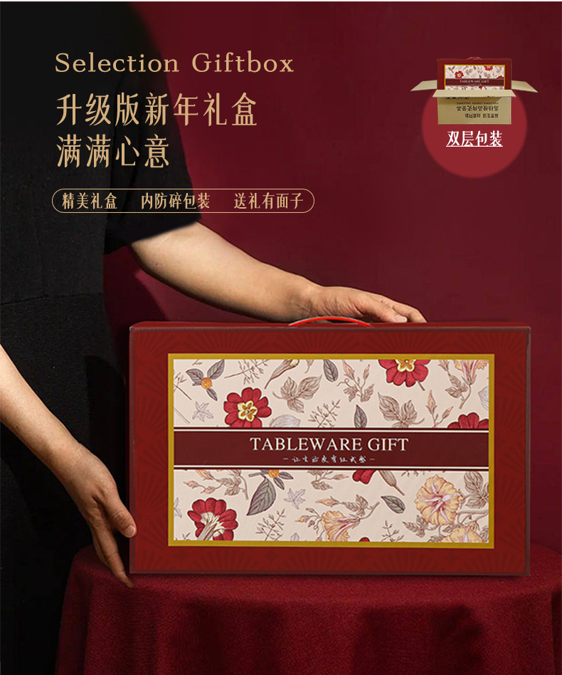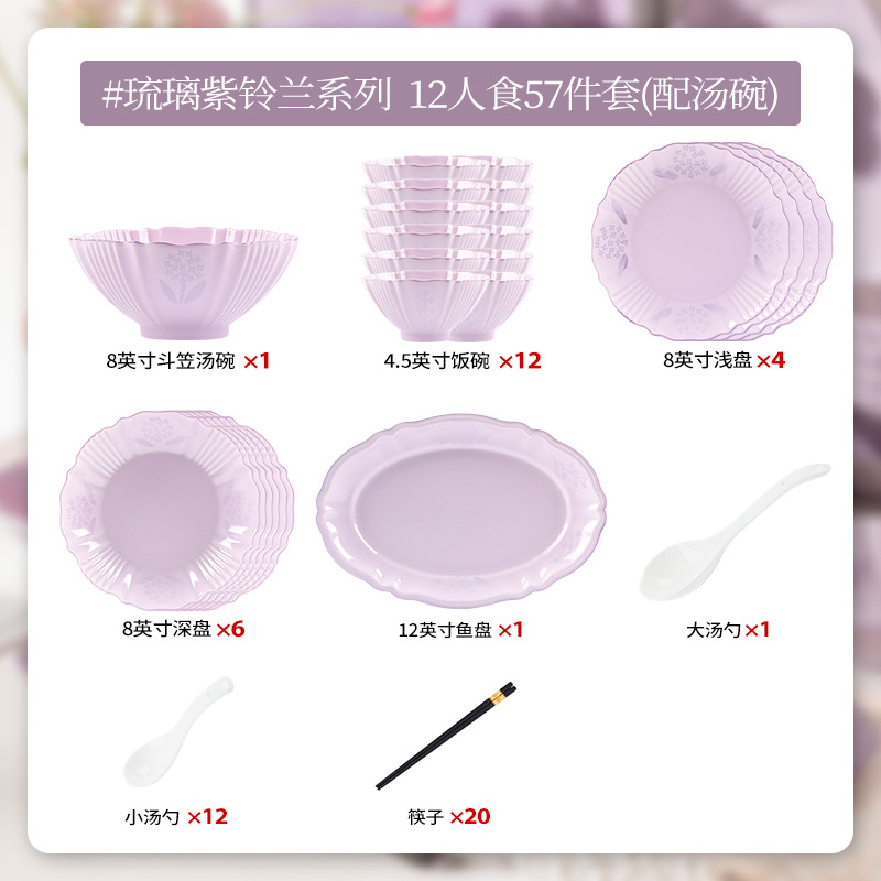 • 글레이즈드 퍼플 은방울꽃 - 국그릇 포함 12인용 57개 세트 [레드 꽃무늬 선물 상자]