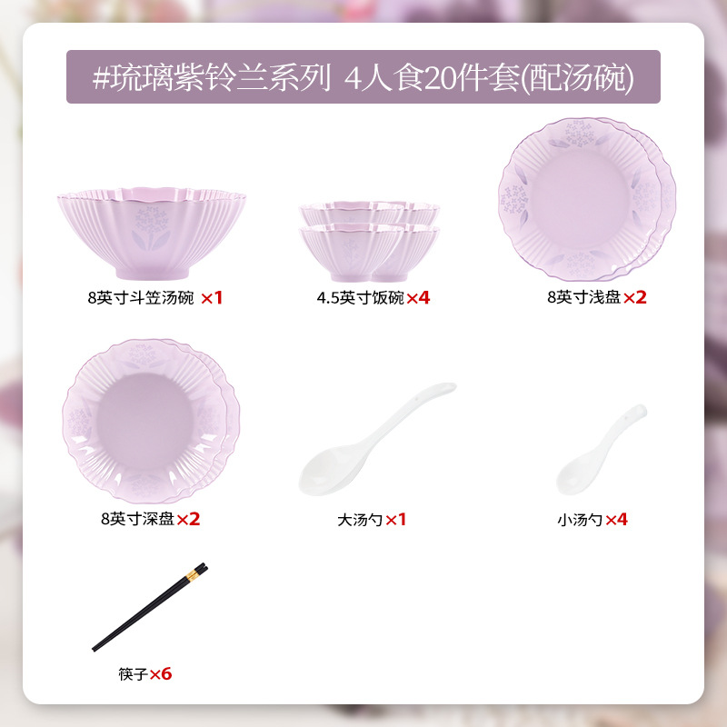 • 글레이즈드 퍼플 은방울꽃 - 국그릇 포함 4인용 20개 세트 [레드 꽃무늬 선물 상자]