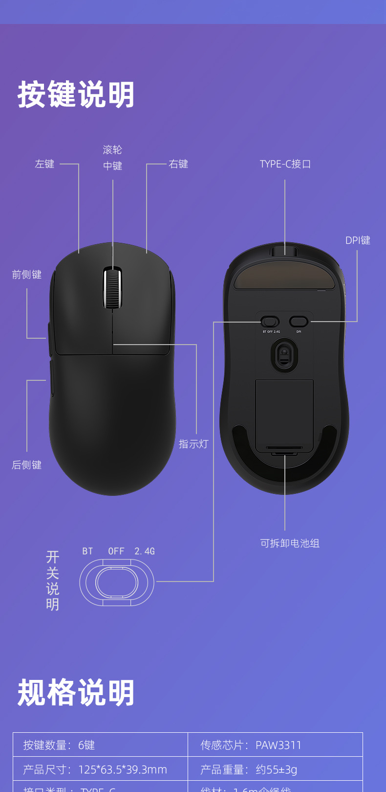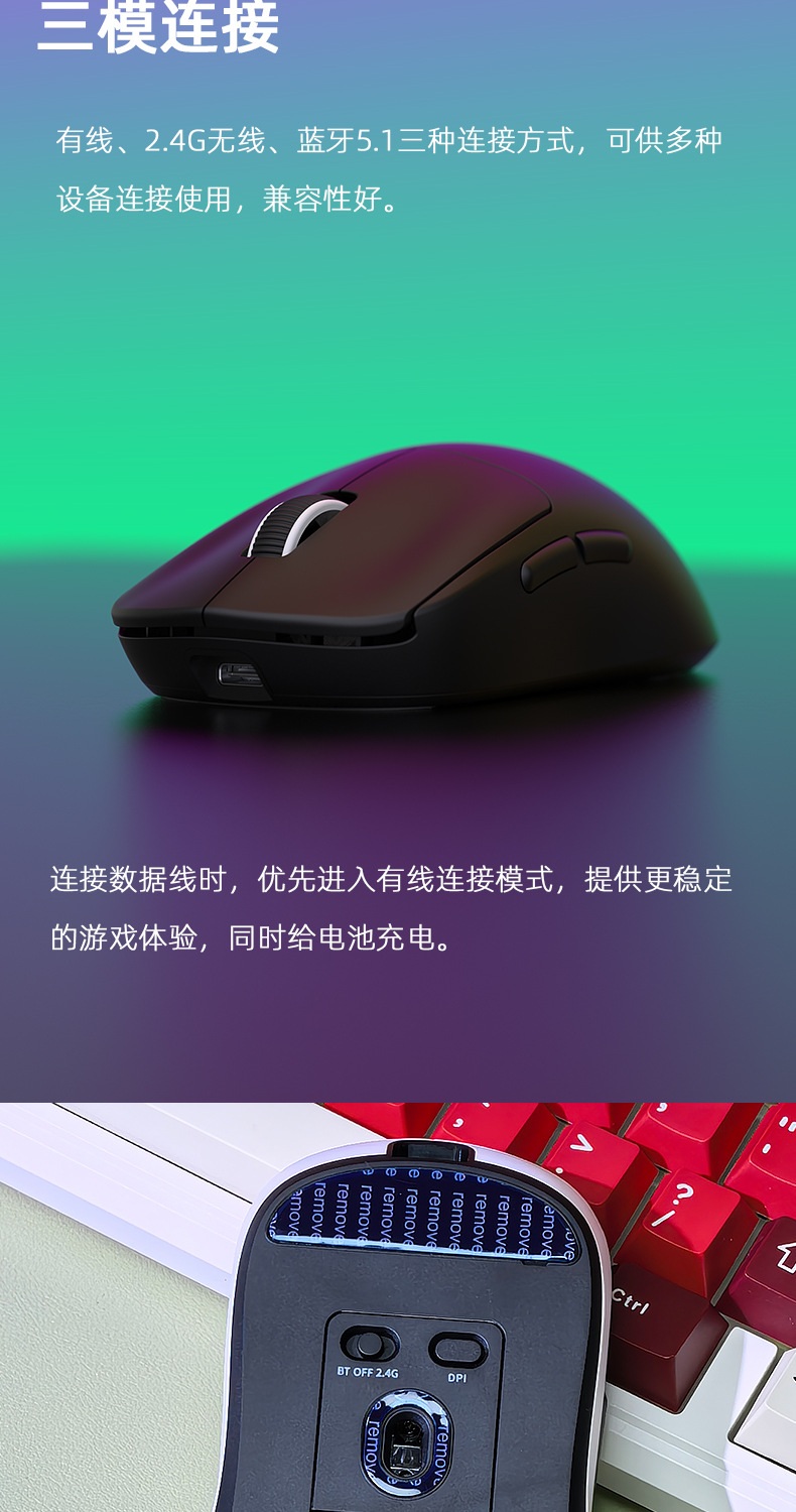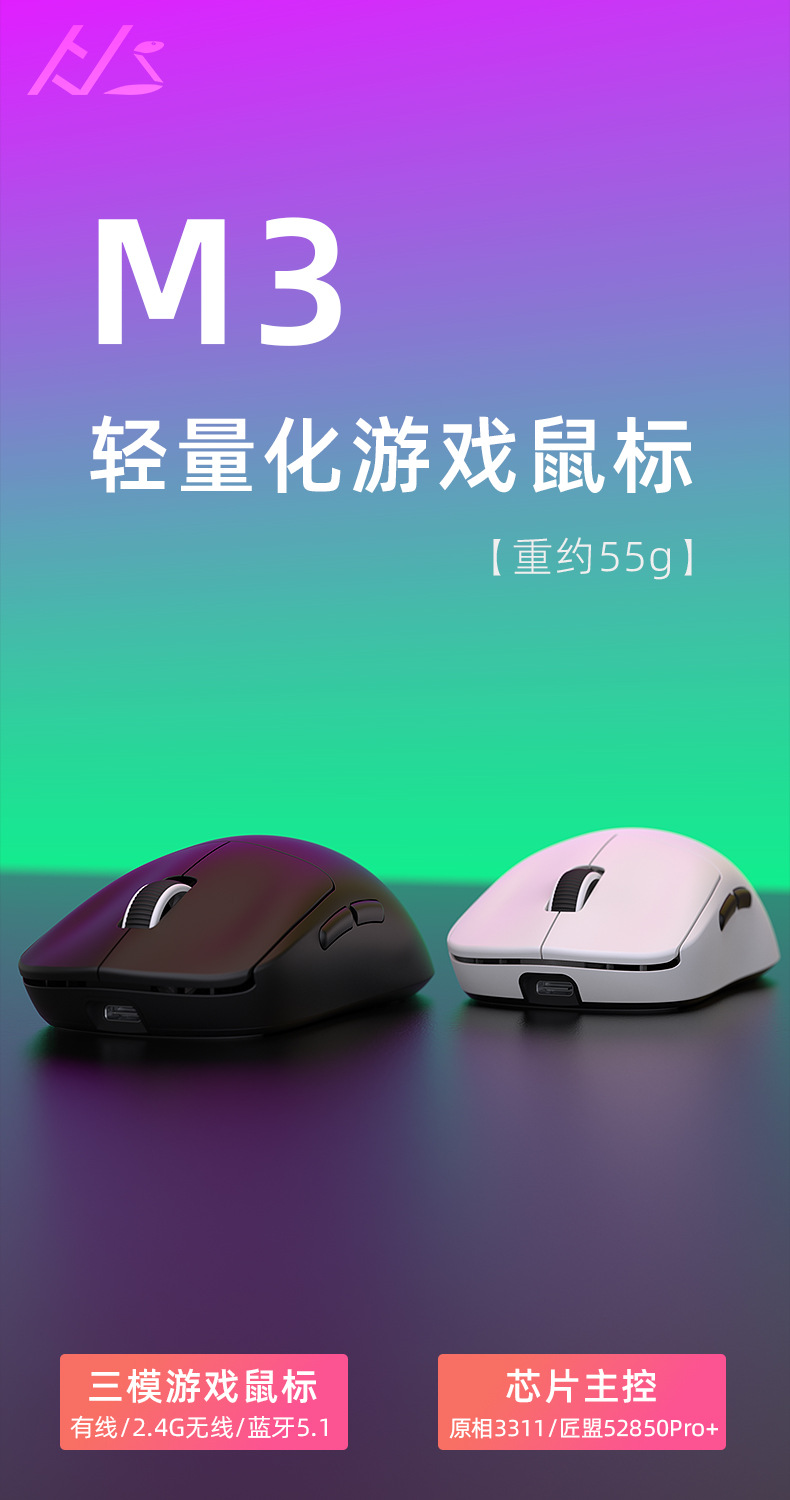 재고 있음 도매 국경 간 Heijishe M3 마우스 무선/유선 3 모드 Bluetooth 게임 e-스포츠 PAW3311 경량