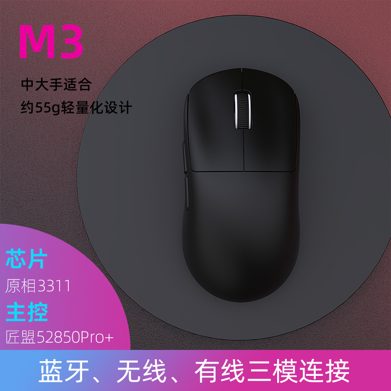 재고 있음 도매 국경 간 Heijishe M3 마우스 무선/유선 3 모드 Bluetooth 게임 e-스포츠 PAW3311 경량스토어 가기