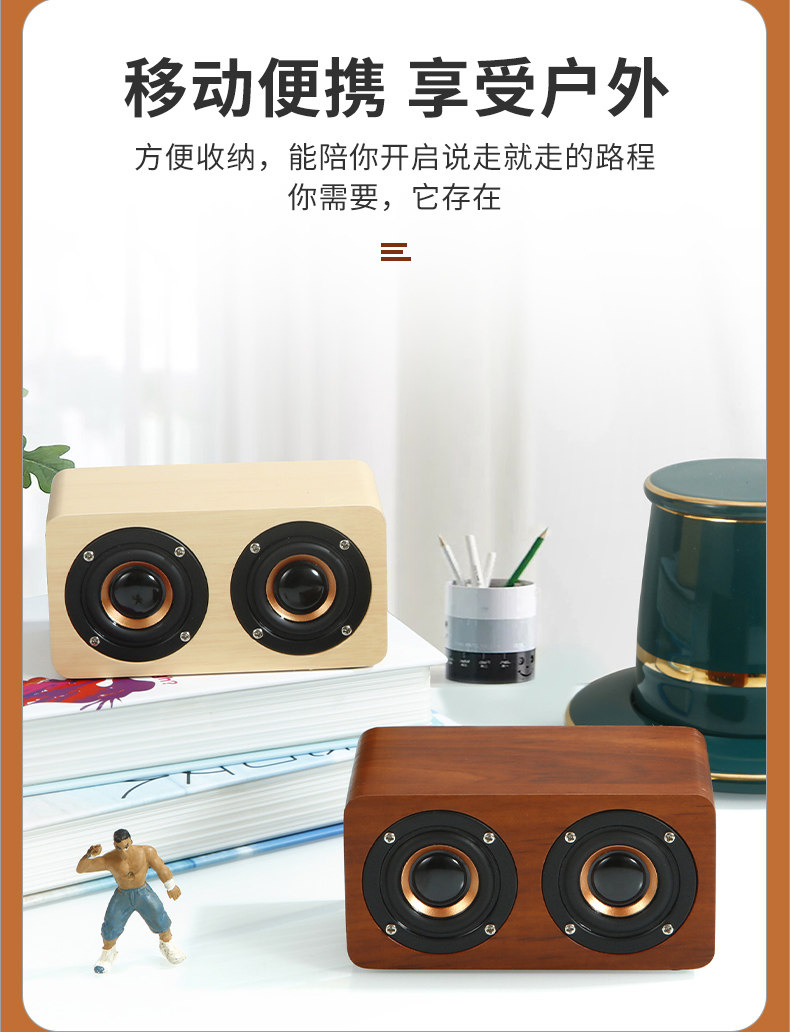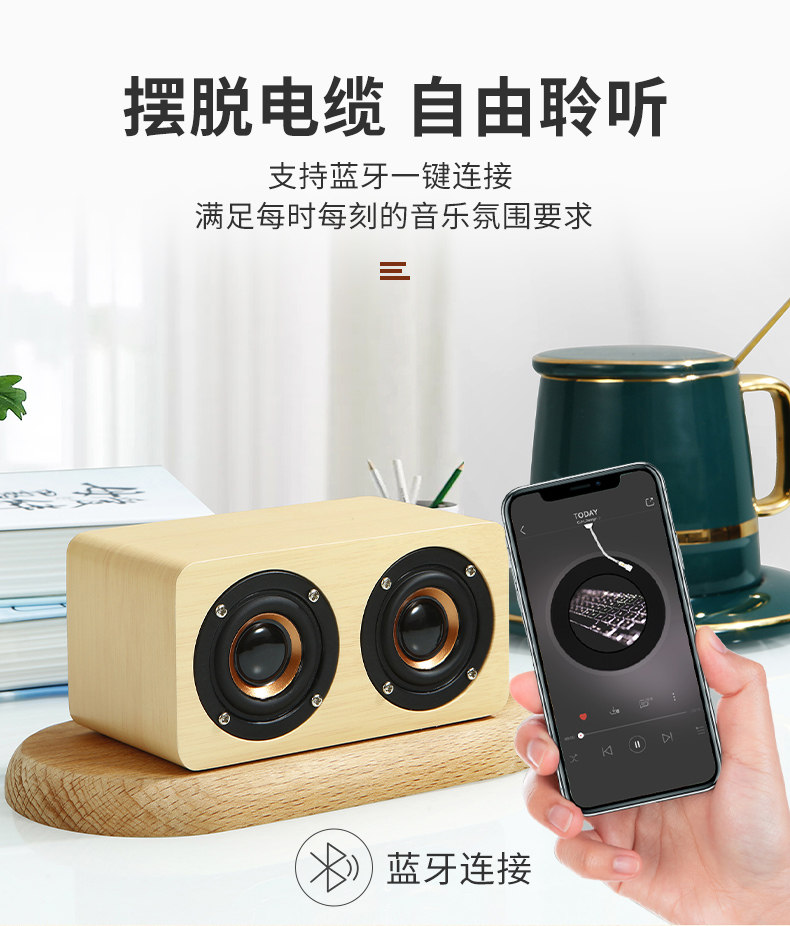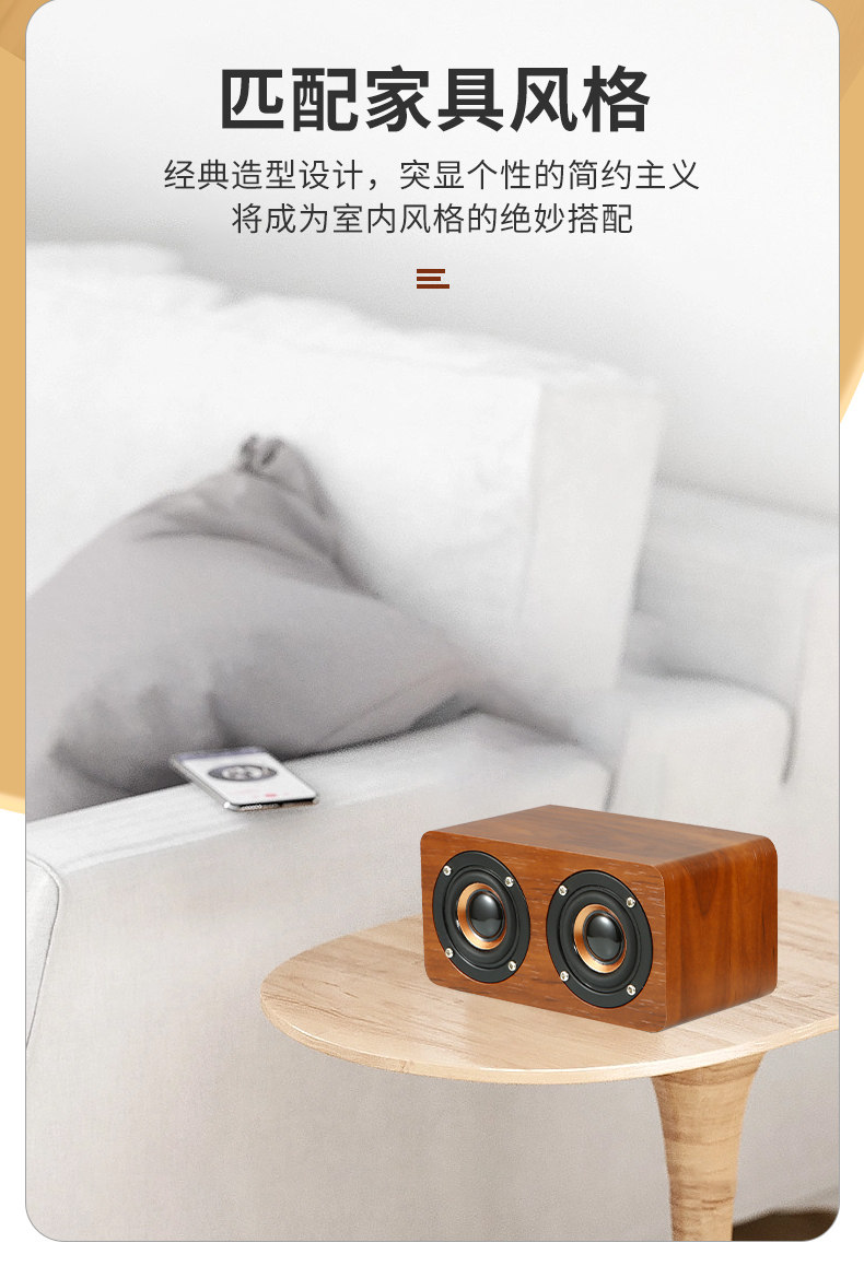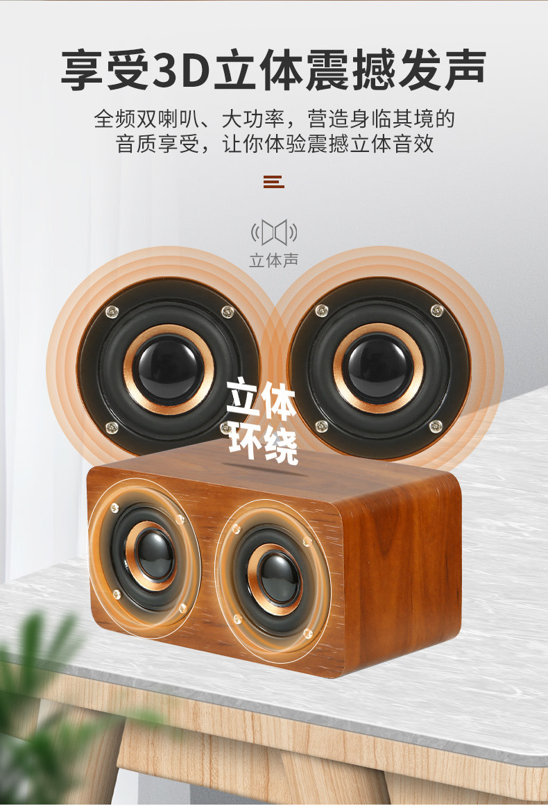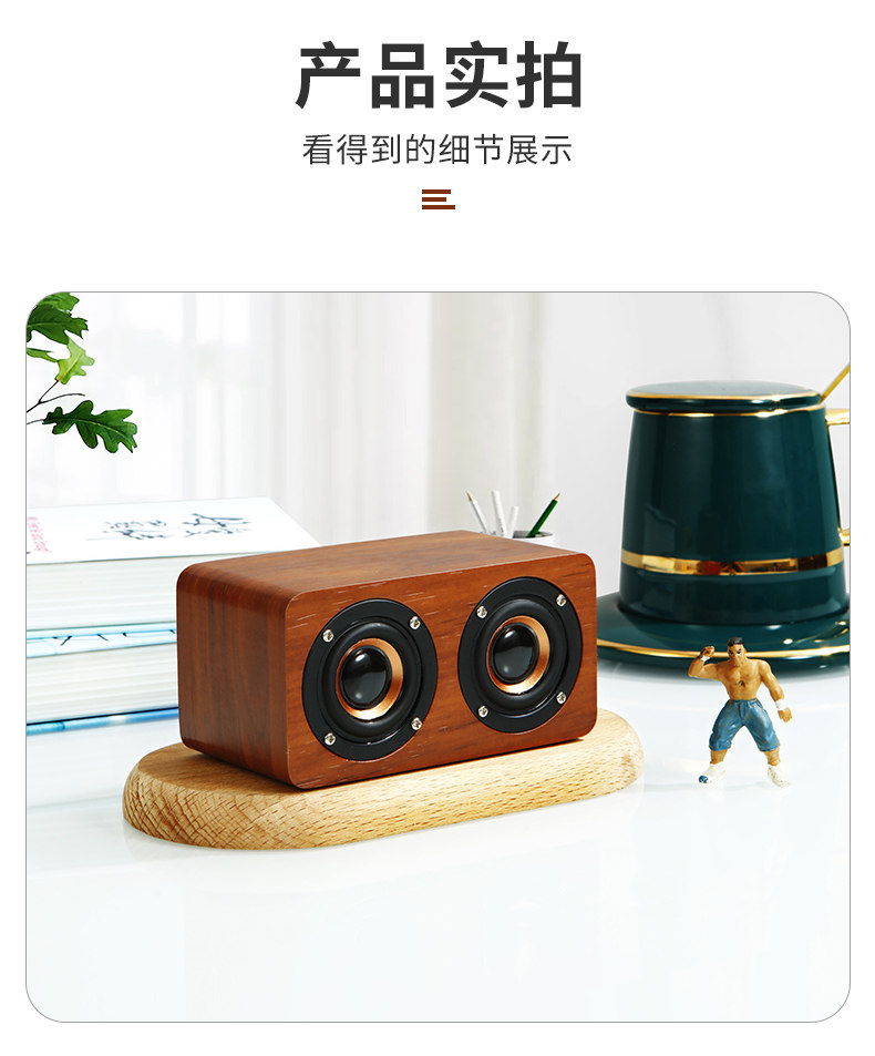 간단한 나무 복고풍 블루투스 스피커 서브 우퍼 중저음 대용량 듀얼 스피커 나뭇결 충전식 소형 스피커스토어 가기