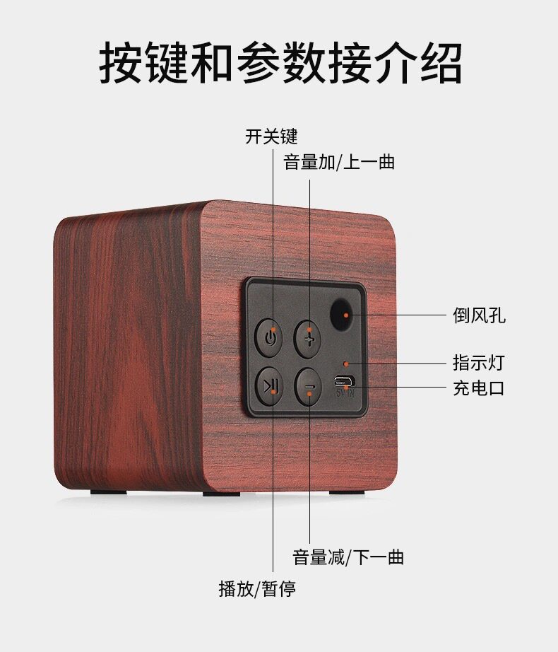 간단한 나무 복고풍 블루투스 스피커 서브 우퍼 중저음 대용량 듀얼 스피커 나뭇결 충전식 소형 스피커