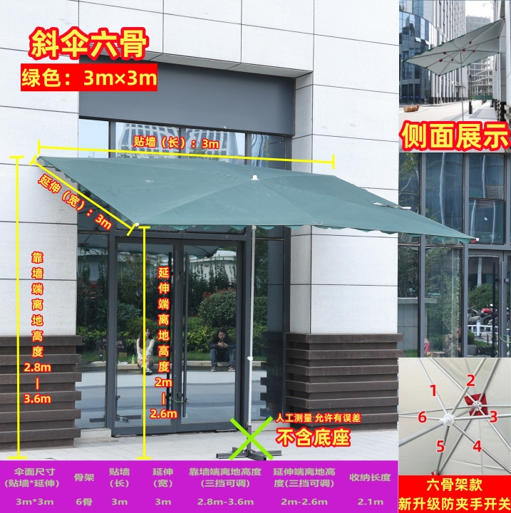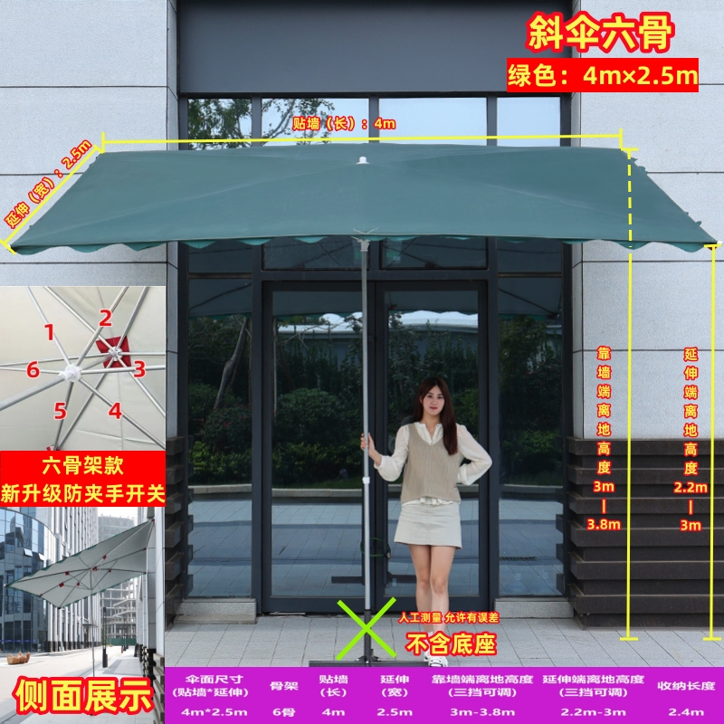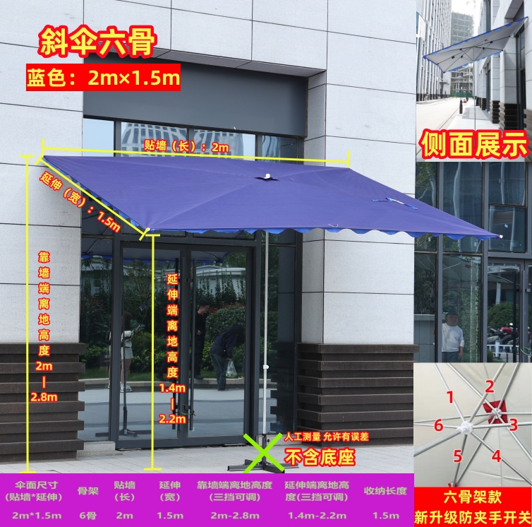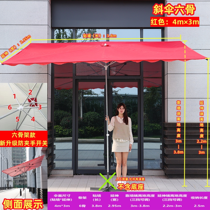파라솔 야외 매점 경사 우산 상점 상업용 사각형 접이식 대형 경사 우산 태양 보호 두꺼운 천막