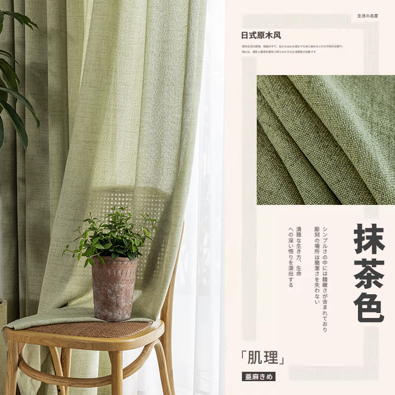 2025 새로운 반 차광 린넨 원사 커튼 침실 거실 발코니 일본식 통나무 스타일 빛과 불침투성 창 스크린