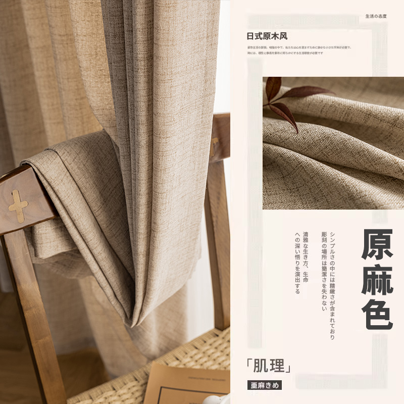 2025 새로운 반 차광 린넨 원사 커튼 침실 거실 발코니 일본식 통나무 스타일 빛과 불침투성 창 스크린스토어 가기