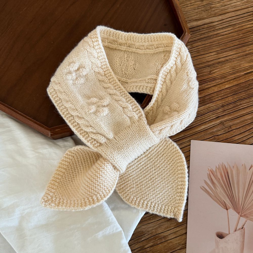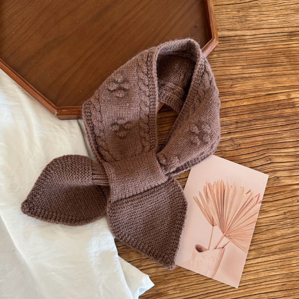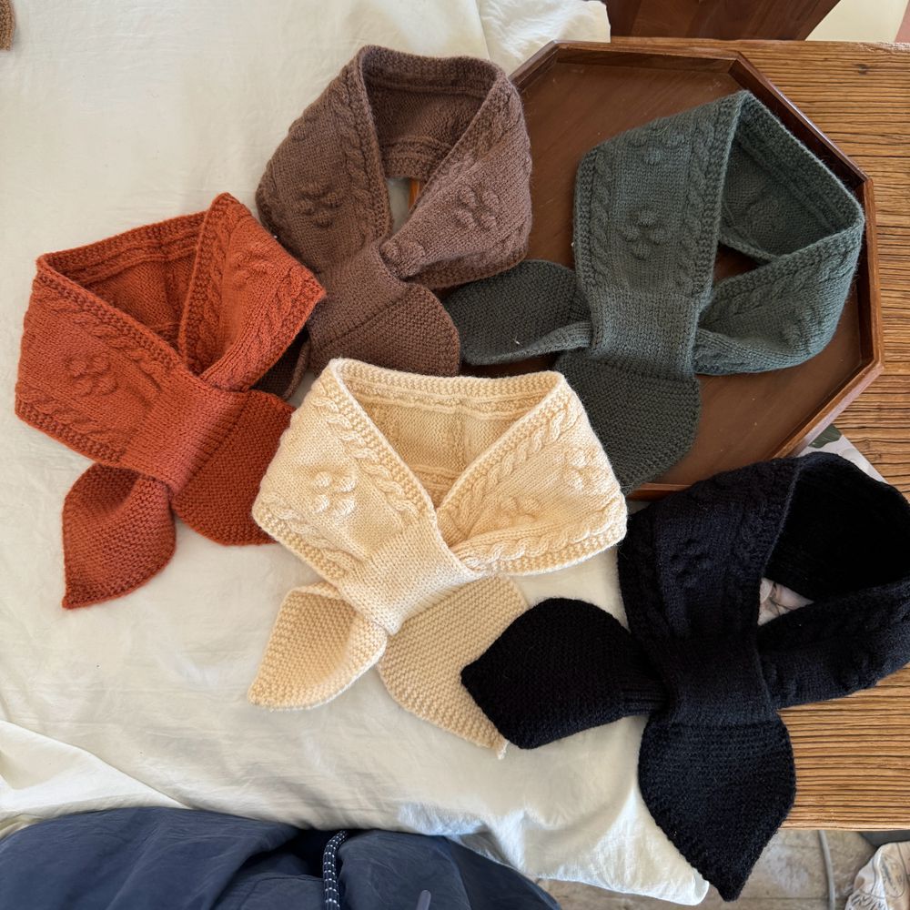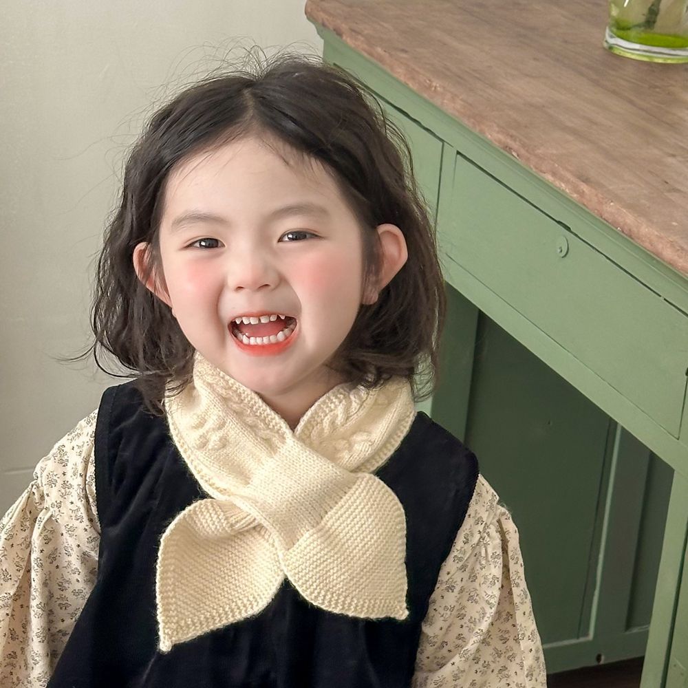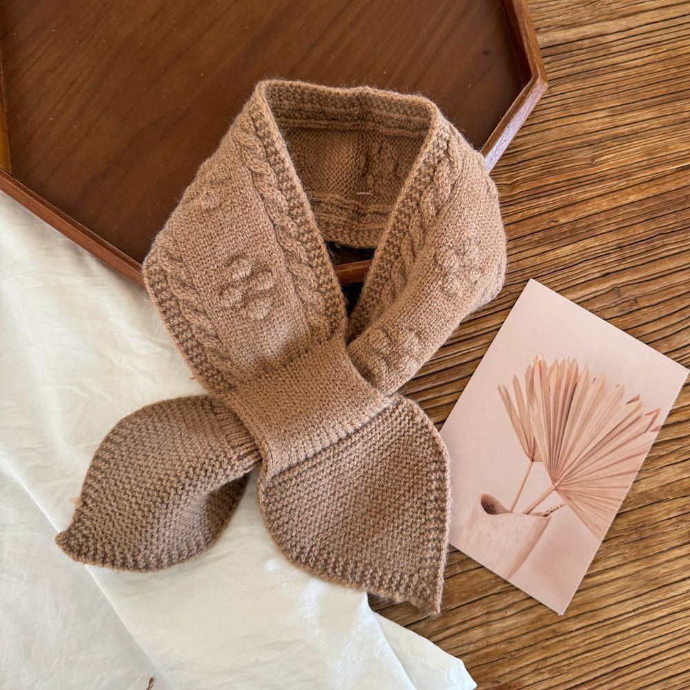 한국 스타일 트위스트 패턴 Doudou 크로스 스카프 가을, 겨울 어린이 따뜻한 방풍 니트 스카프 아기 단색 스카프 유행