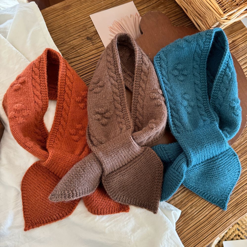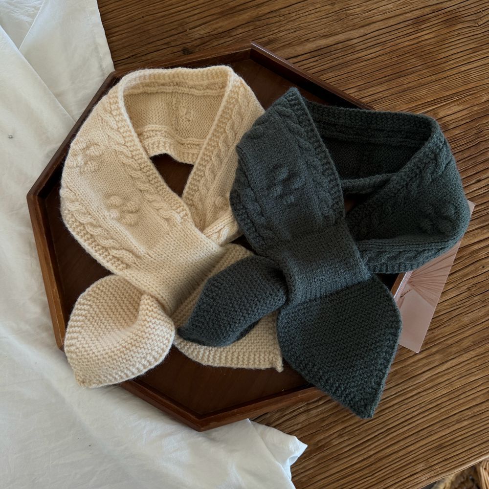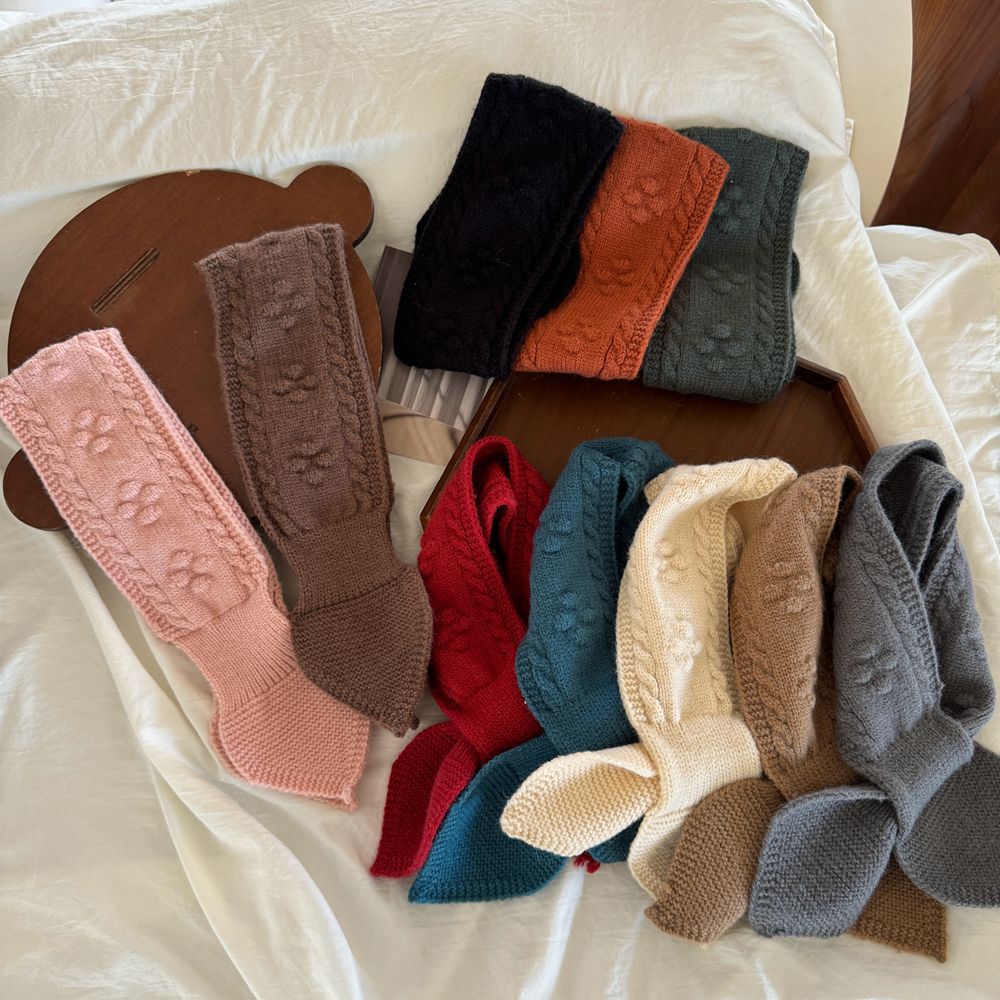 한국 스타일 트위스트 패턴 Doudou 크로스 스카프 가을, 겨울 어린이 따뜻한 방풍 니트 스카프 아기 단색 스카프 유행스토어 가기