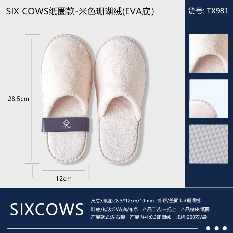 • SIX COWS 페이퍼 서클 스타일 - 베이지 코랄 벨벳(EVA 바닥)(쌍)