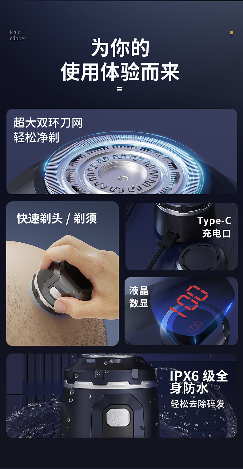 새로운 국경 간 남성용 홈 셀프 이발기 대머리 기계 전기 충전식 면도기 면도기 대머리
