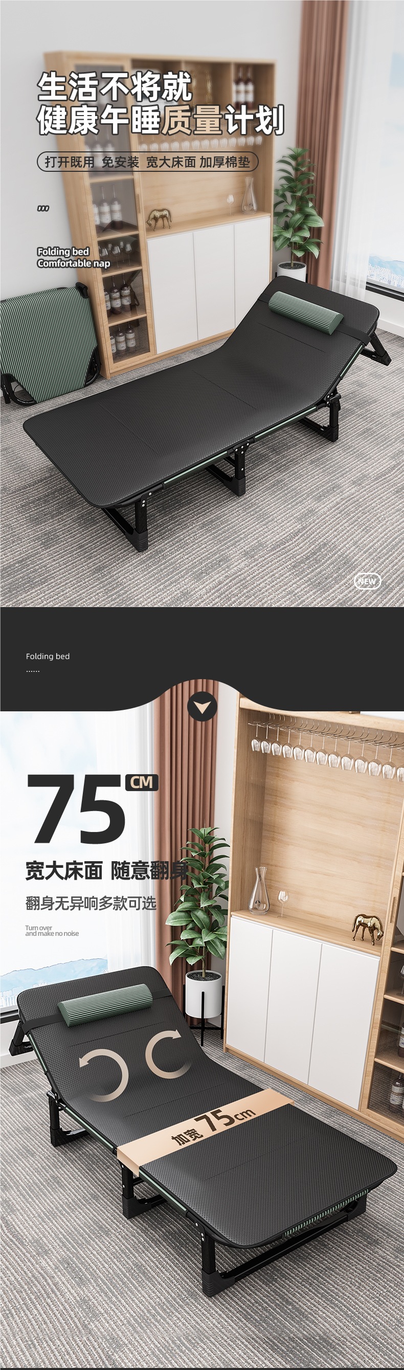 1인용 접이식 침대 시트, 간이 점심시간, 사무실, 성인 낮잠, 캠프용 간이 침대, 동행, 편리한 안락의자스토어 가기