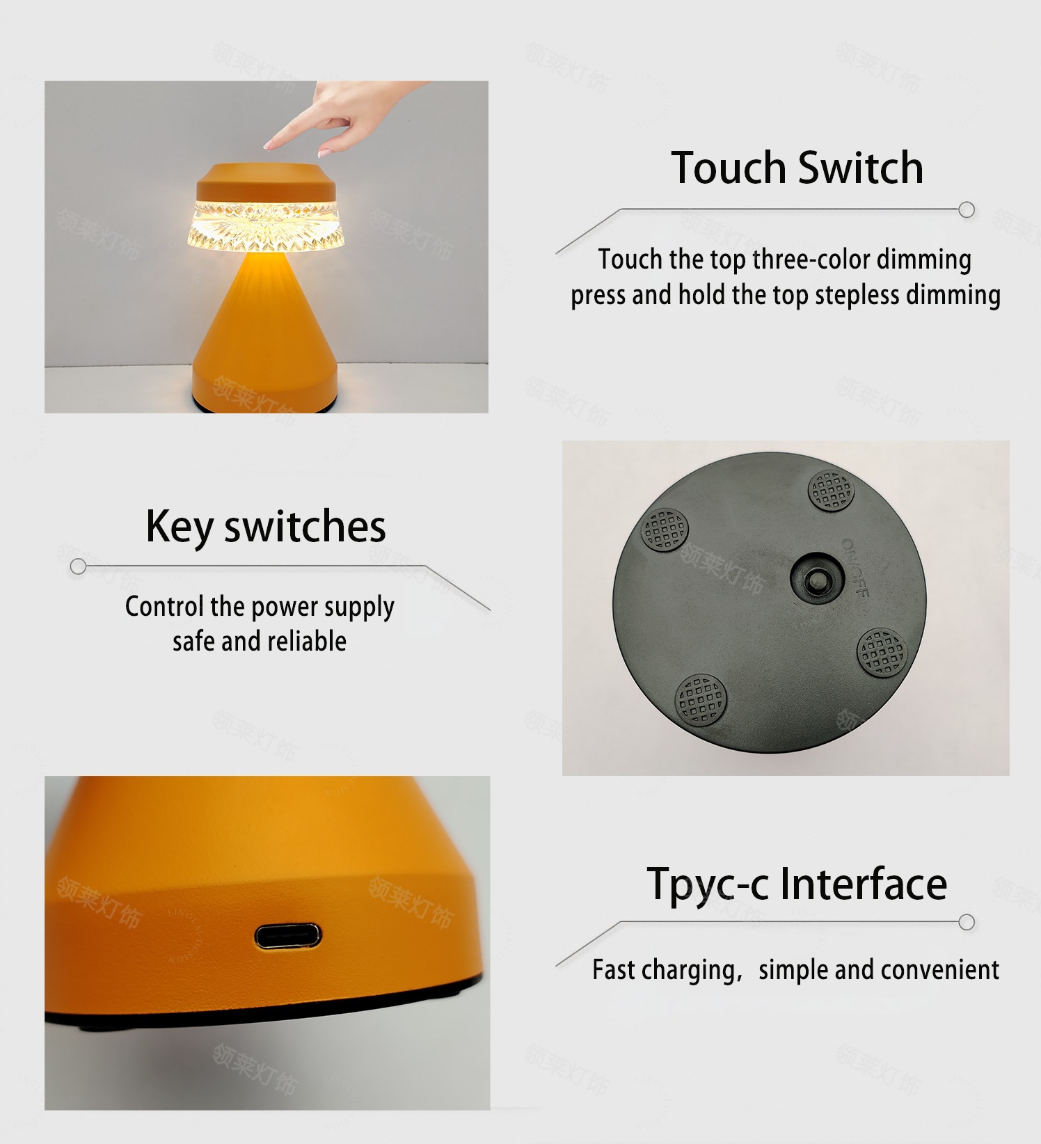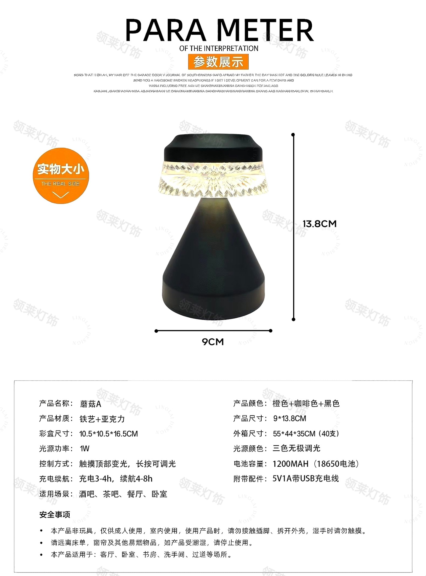 크로스보더 신형 메탈 테이블 램프 창의적인 침실 침대 옆 램프 LED 충전식 USB 야간등 실외 장식 분위기등스토어 가기