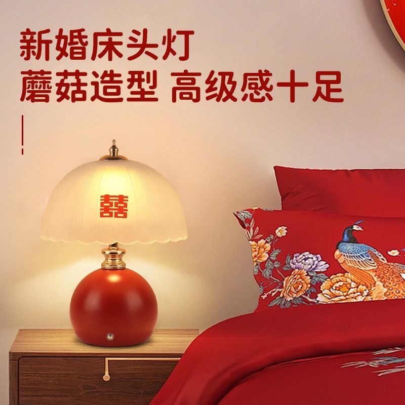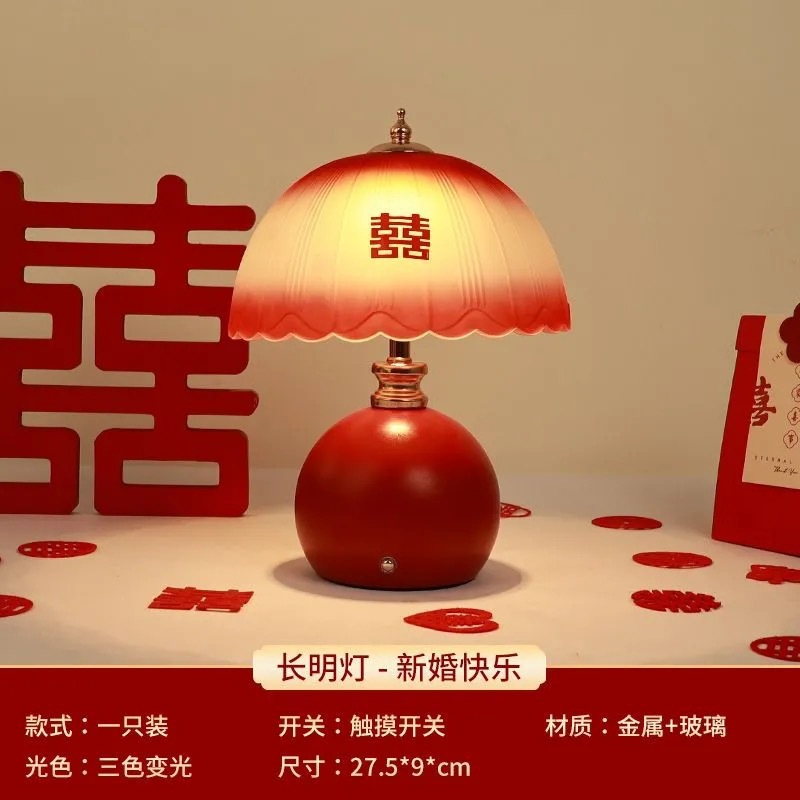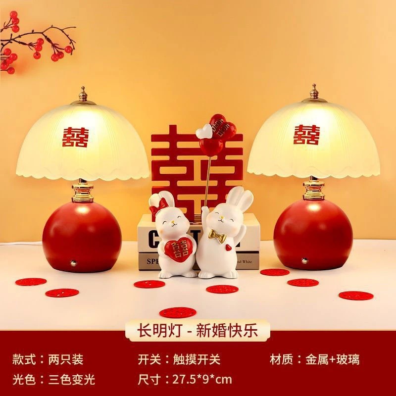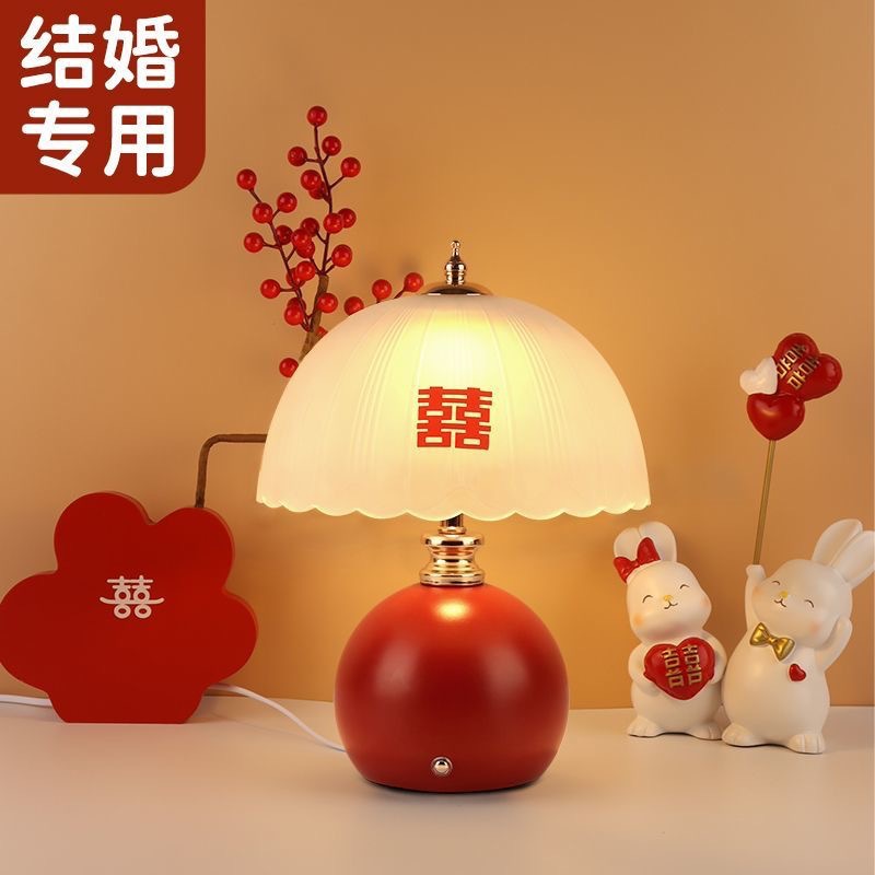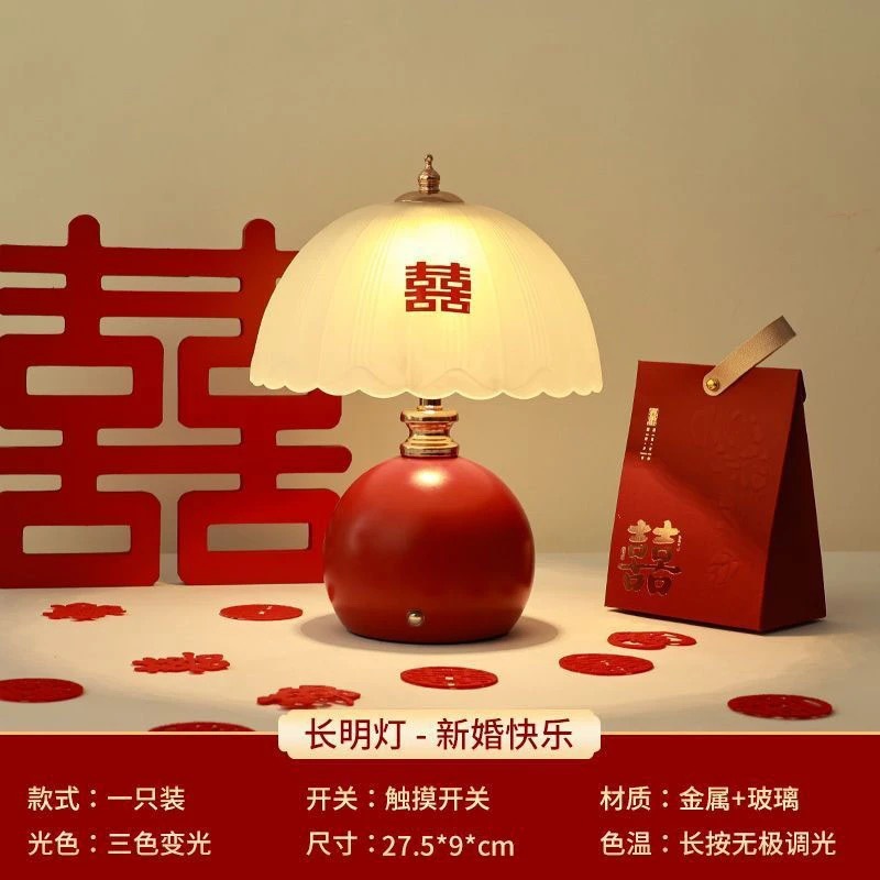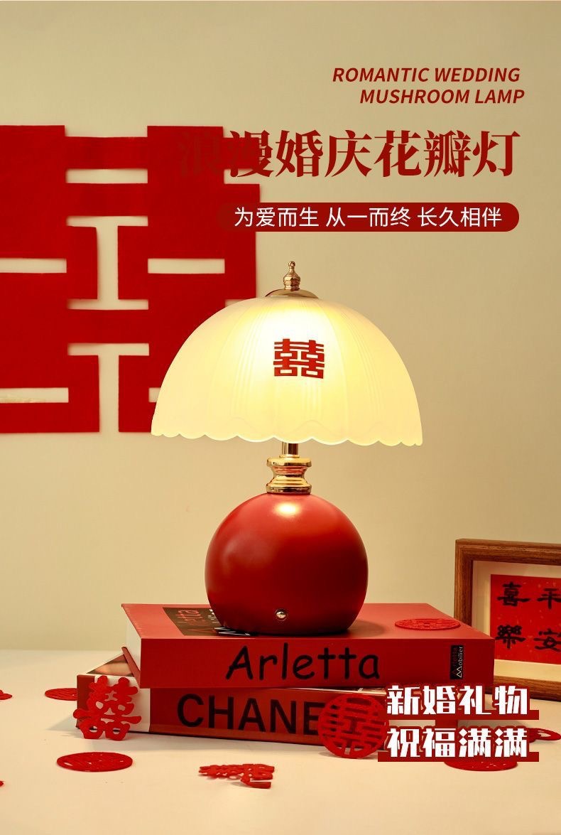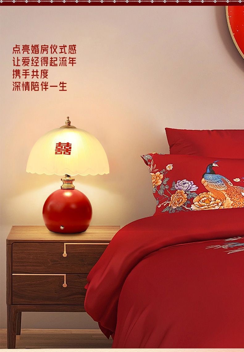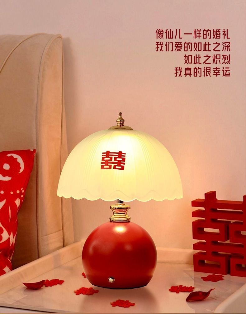 장미등은 결혼식을 위한 신혼부부를 위한 고급 웨딩룸 장식 레드 테이블 램프 침대 옆 램프 결혼 선물로 항상 밝게 빛납니다.