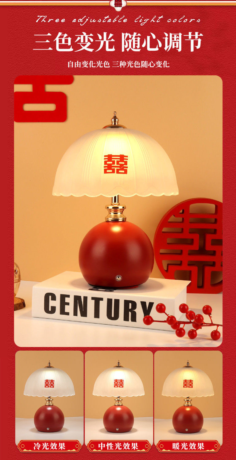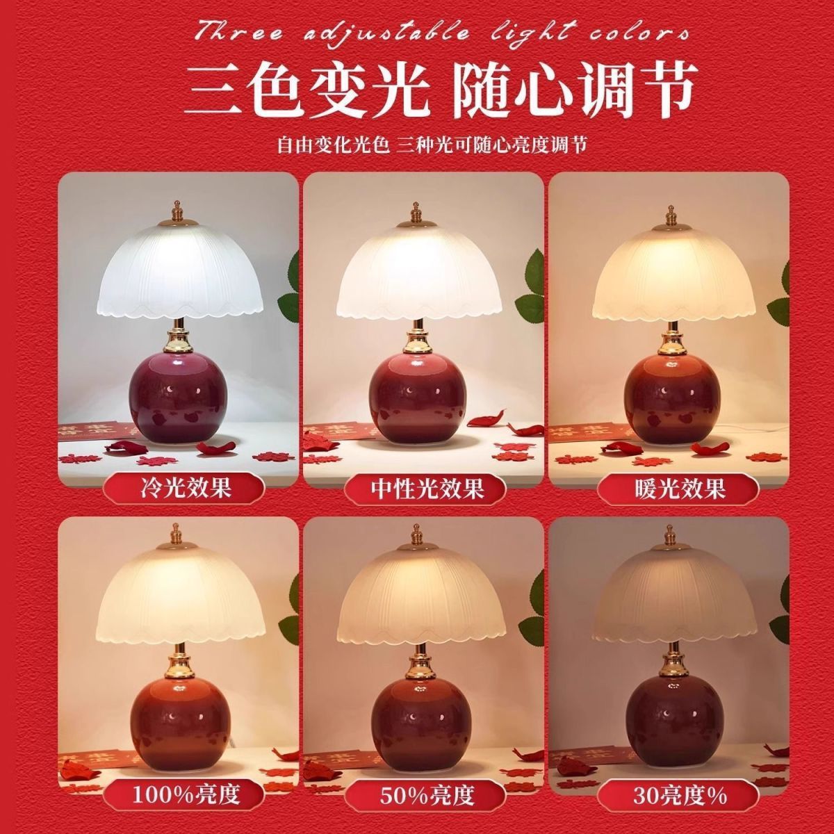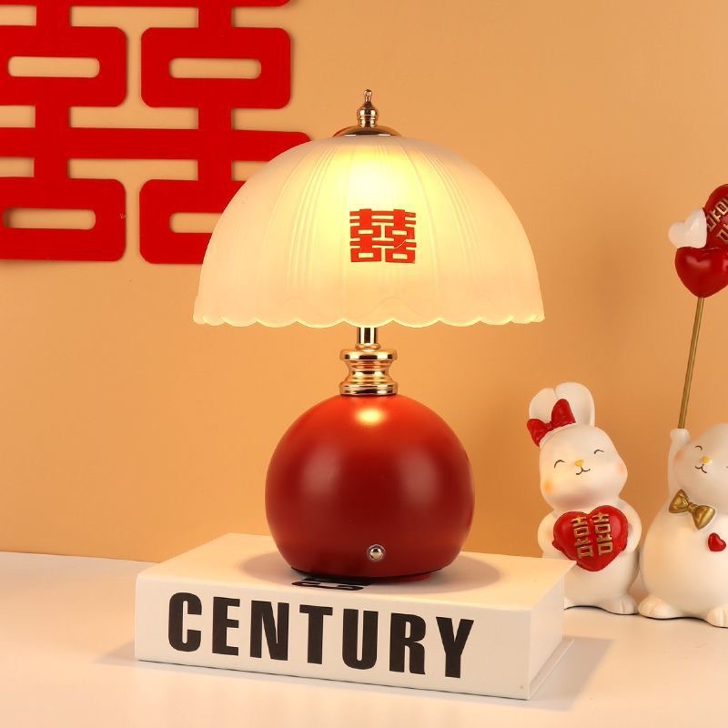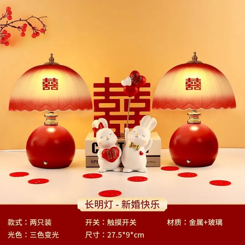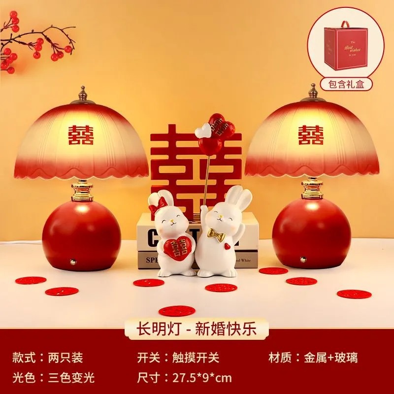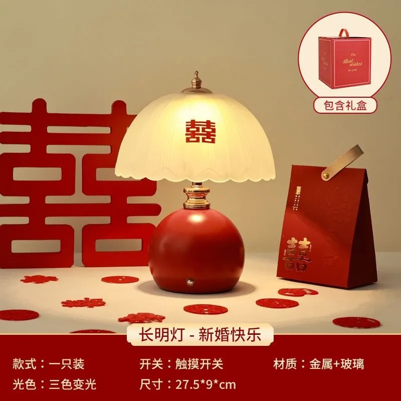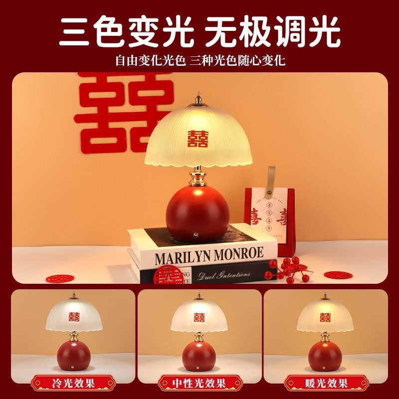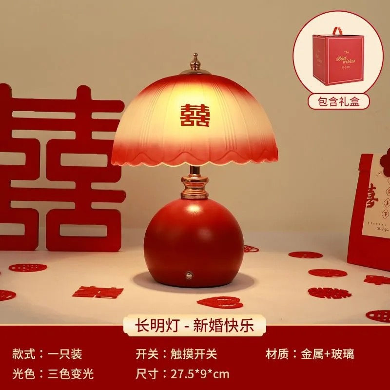 장미등은 결혼식을 위한 신혼부부를 위한 고급 웨딩룸 장식 레드 테이블 램프 침대 옆 램프 결혼 선물로 항상 밝게 빛납니다.