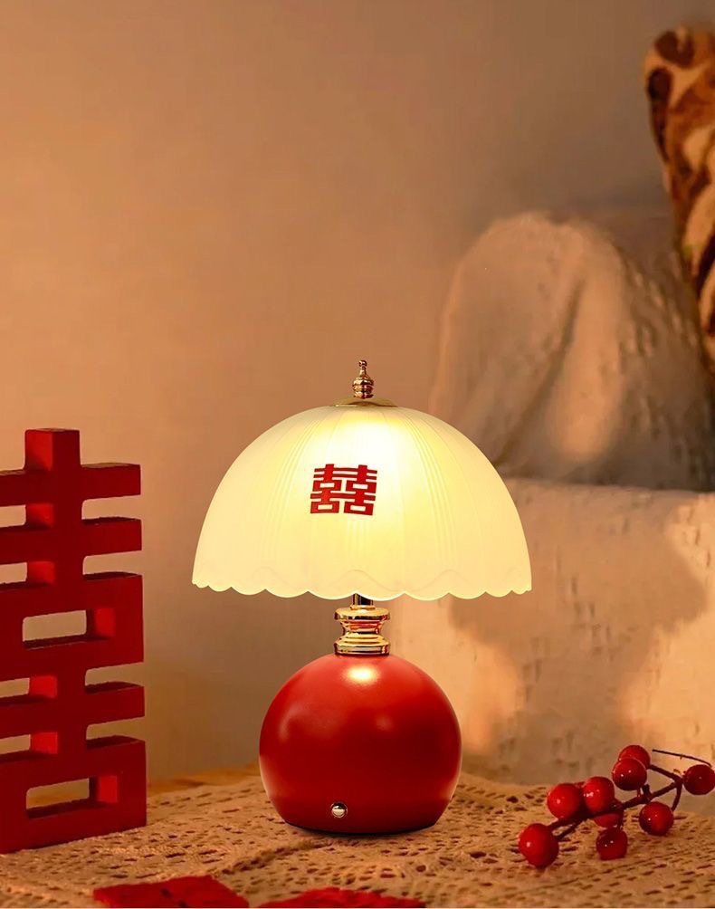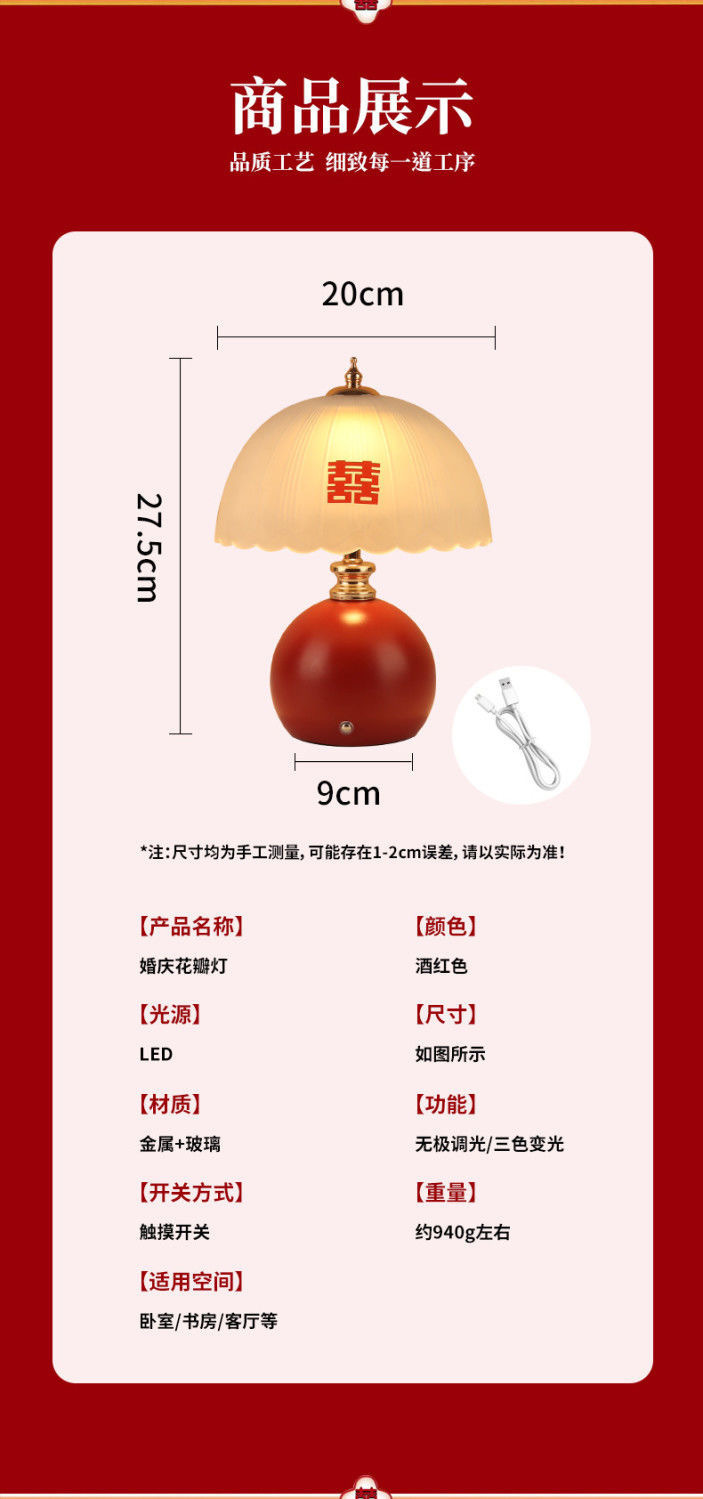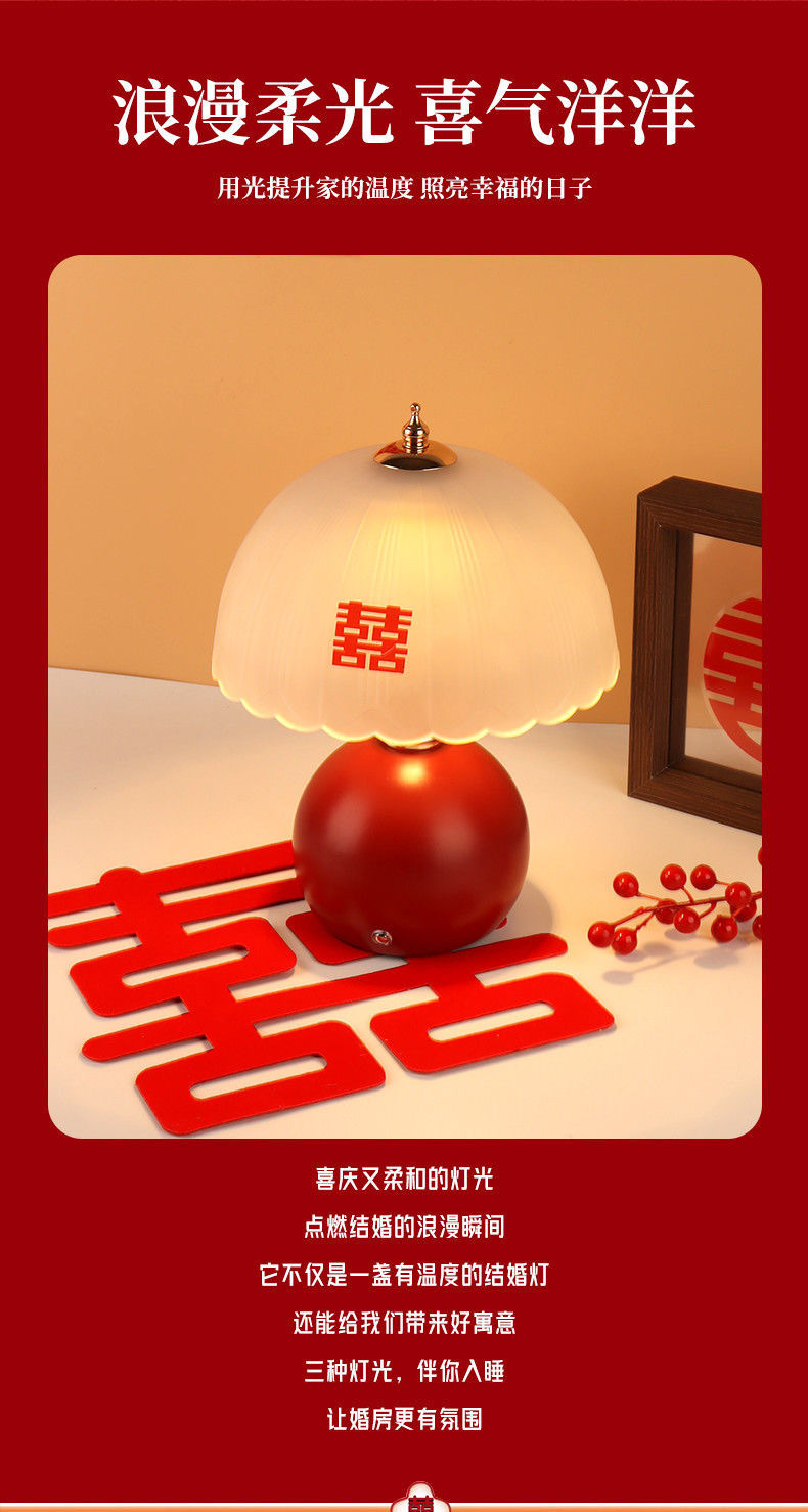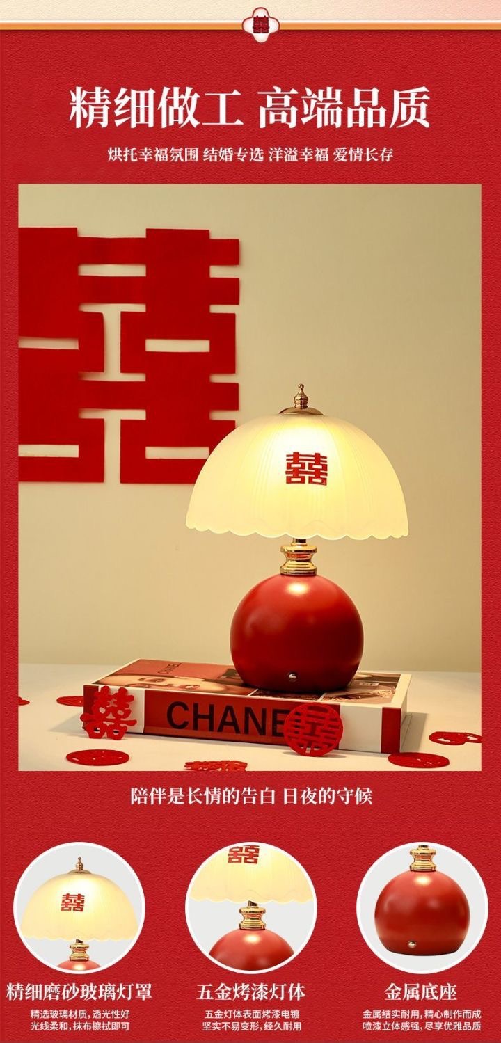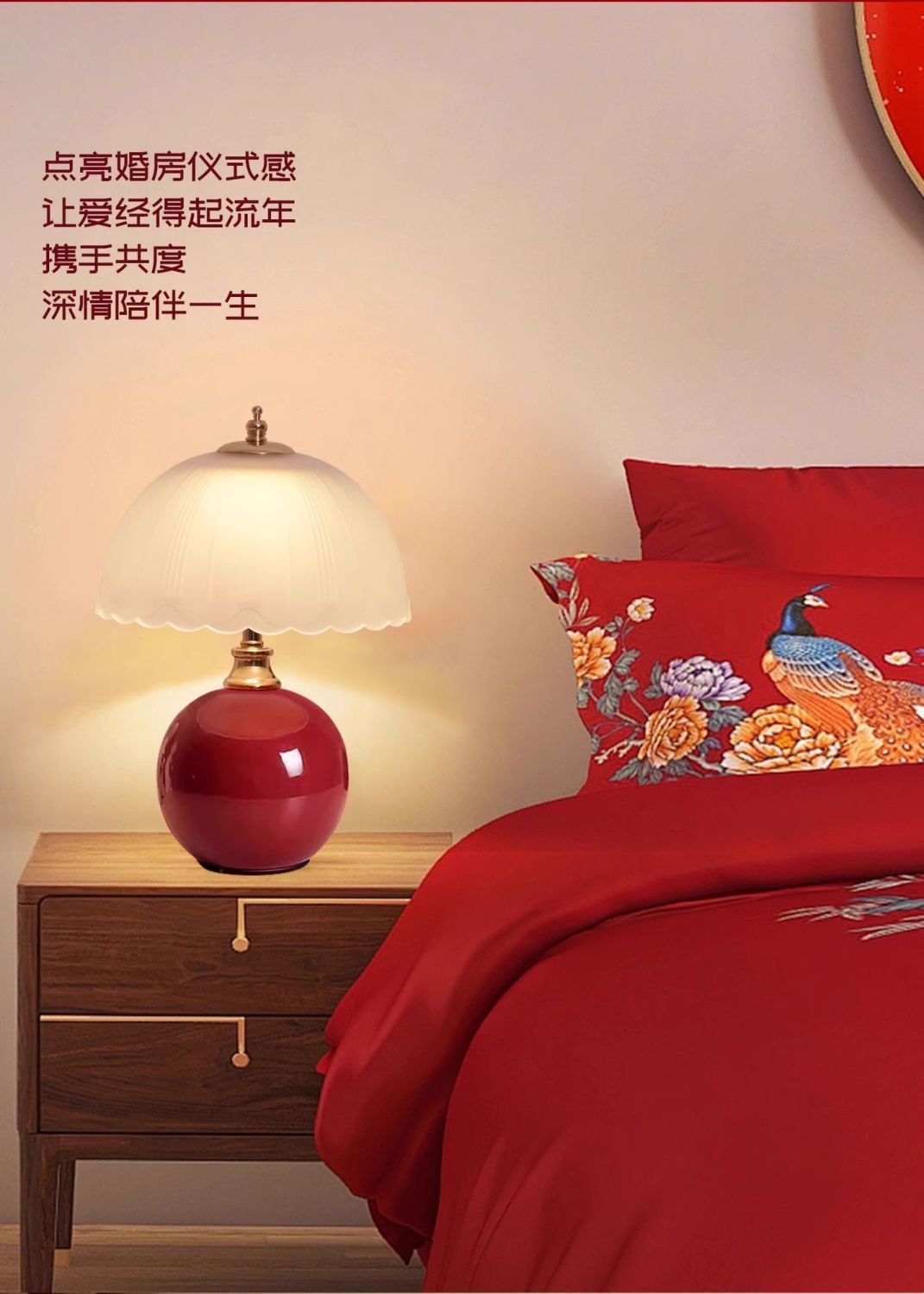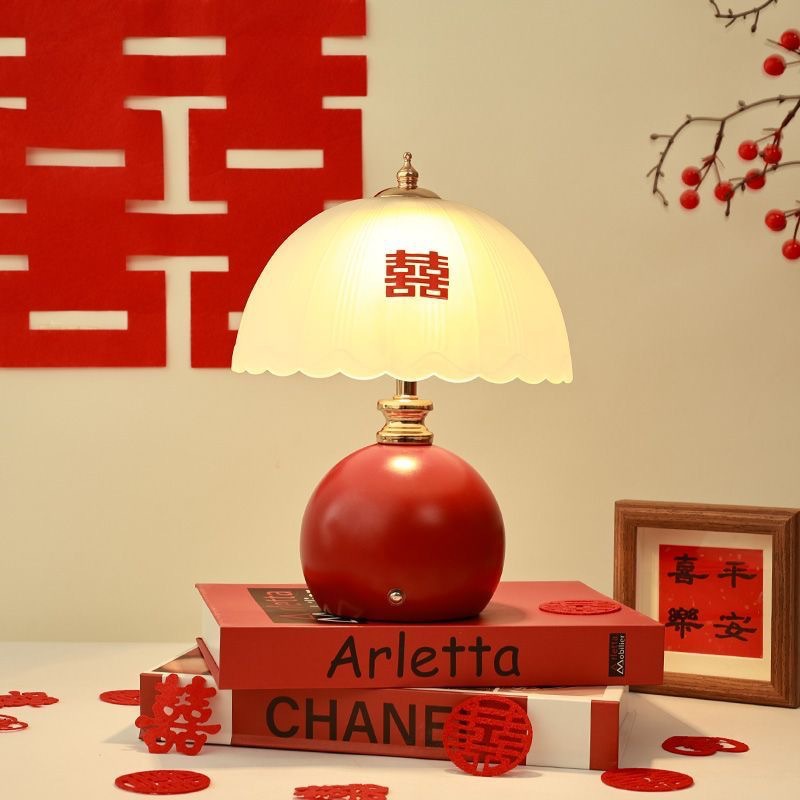 장미등은 결혼식을 위한 신혼부부를 위한 고급 웨딩룸 장식 레드 테이블 램프 침대 옆 램프 결혼 선물로 항상 밝게 빛납니다.