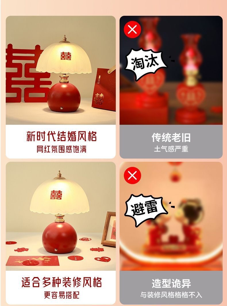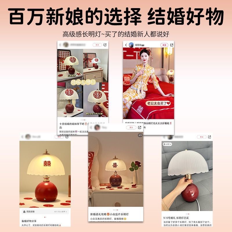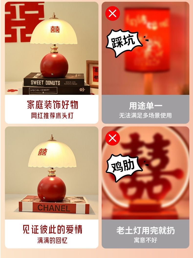 장미등은 결혼식을 위한 신혼부부를 위한 고급 웨딩룸 장식 레드 테이블 램프 침대 옆 램프 결혼 선물로 항상 밝게 빛납니다.스토어 가기