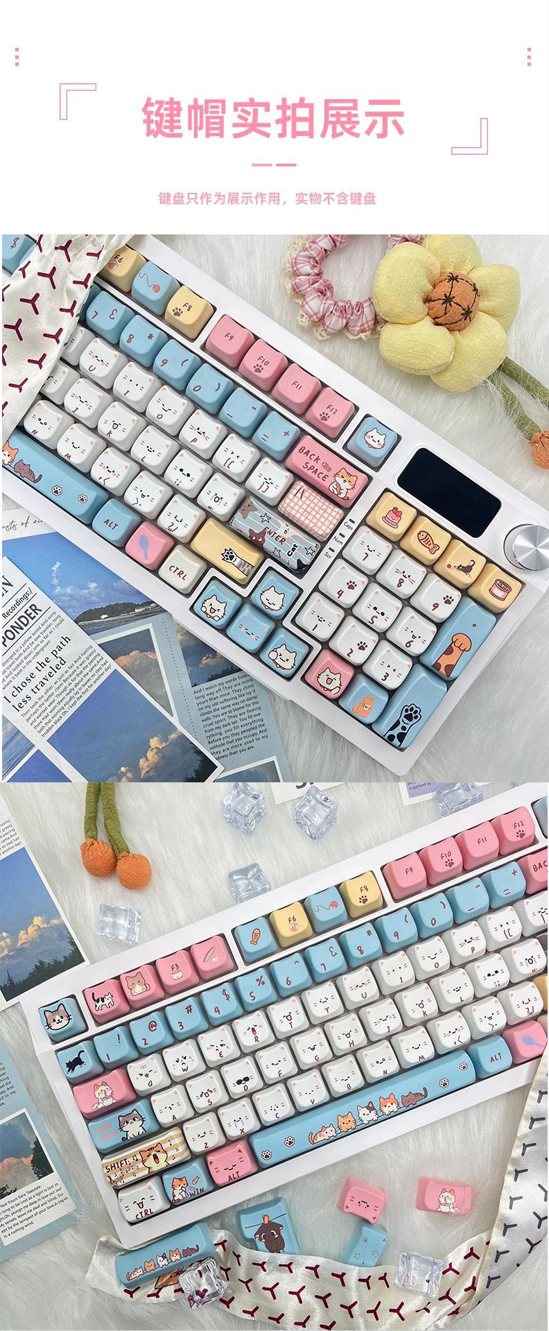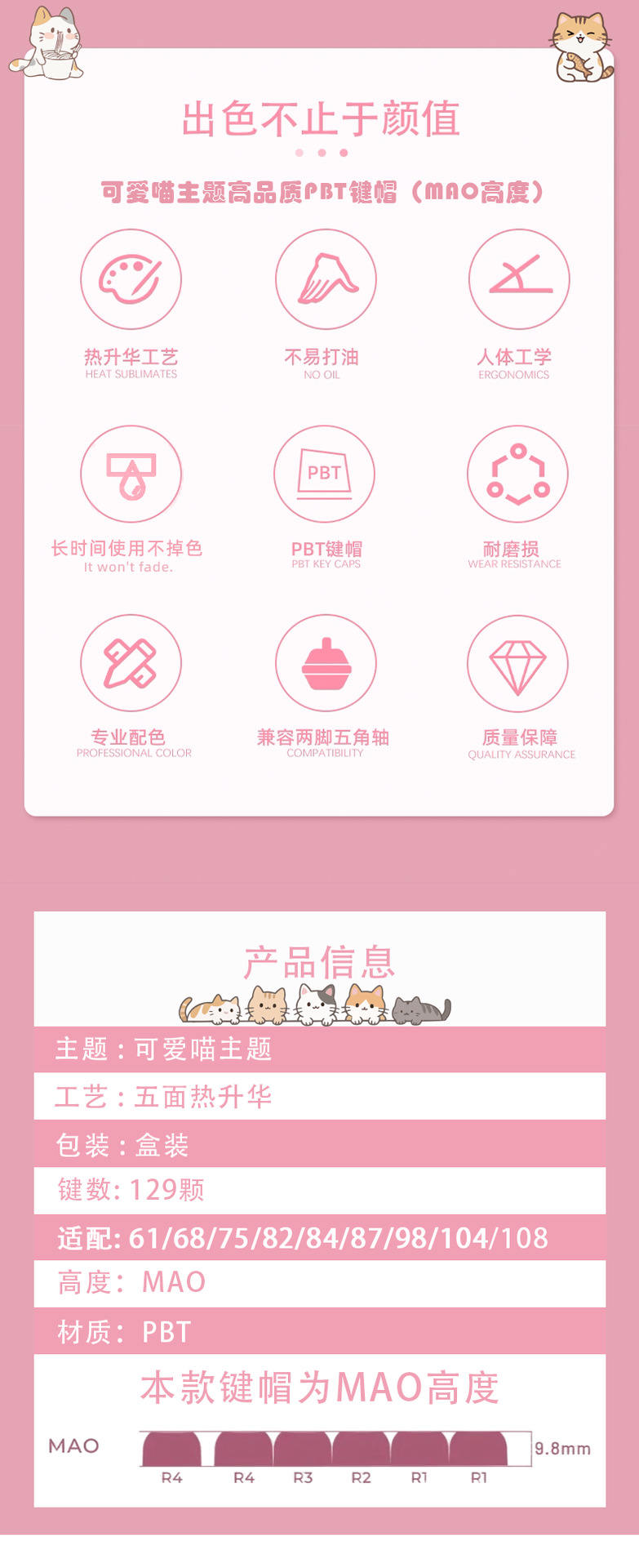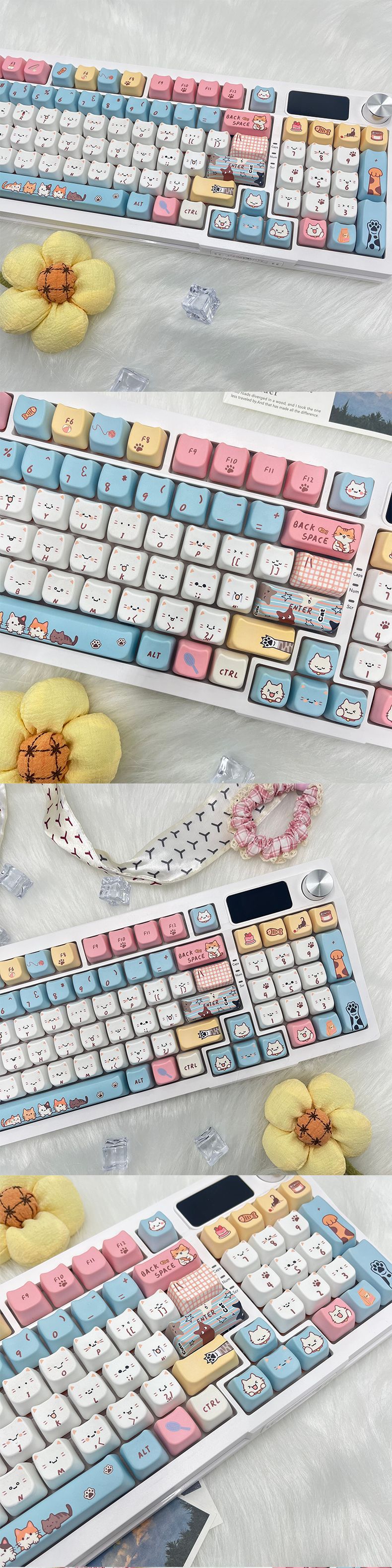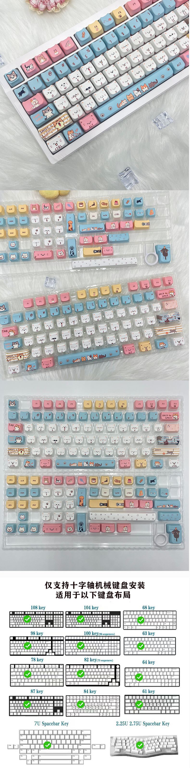 새로운 고양이 머리 귀여운 고양이 테마 맞춤형 키캡 MAO 유선 기계식 키보드 컴퓨터 액세서리에 매우 적합스토어 가기