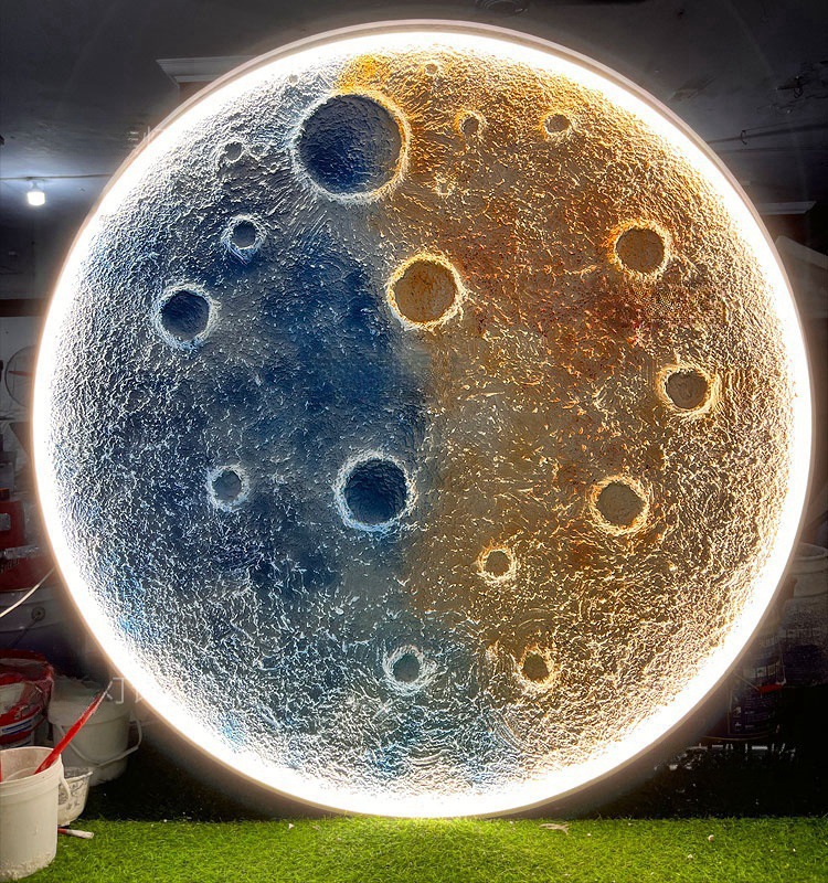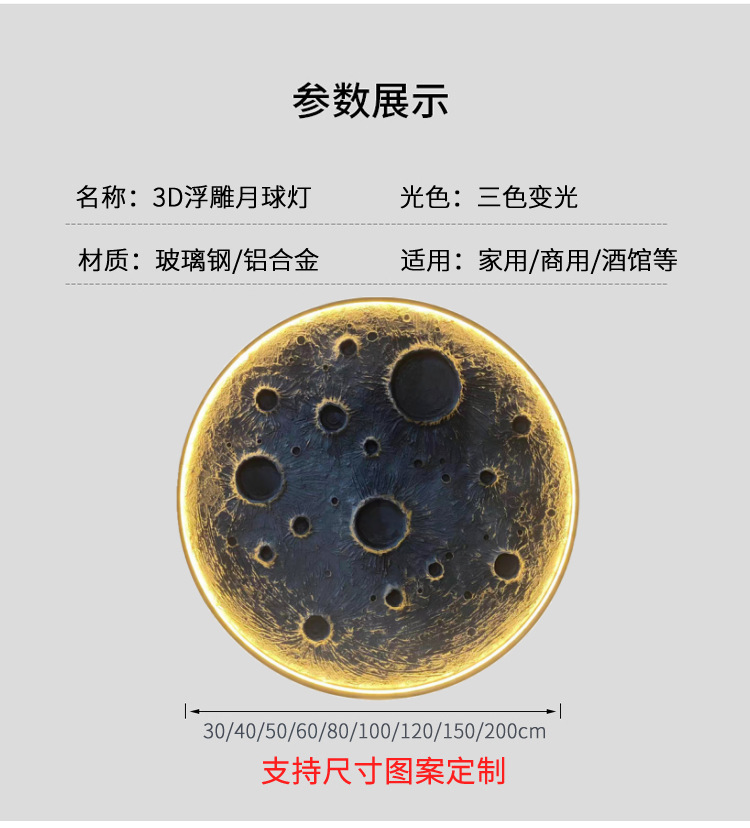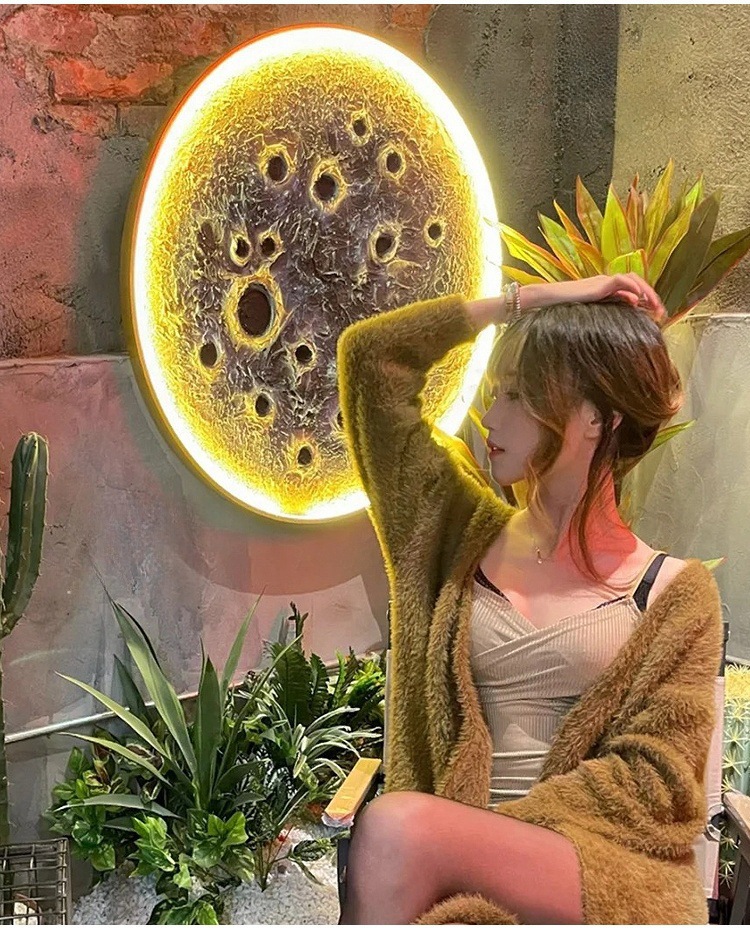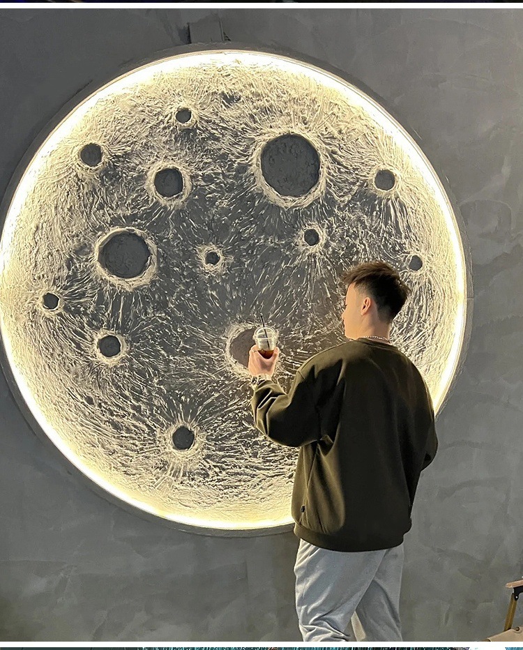 3D 입체 양각 달 램프 벽 램프 인터넷 연예인 캠핑 레스토랑 바 배경 벽 장식 라운드 달 벽화 램프스토어 가기