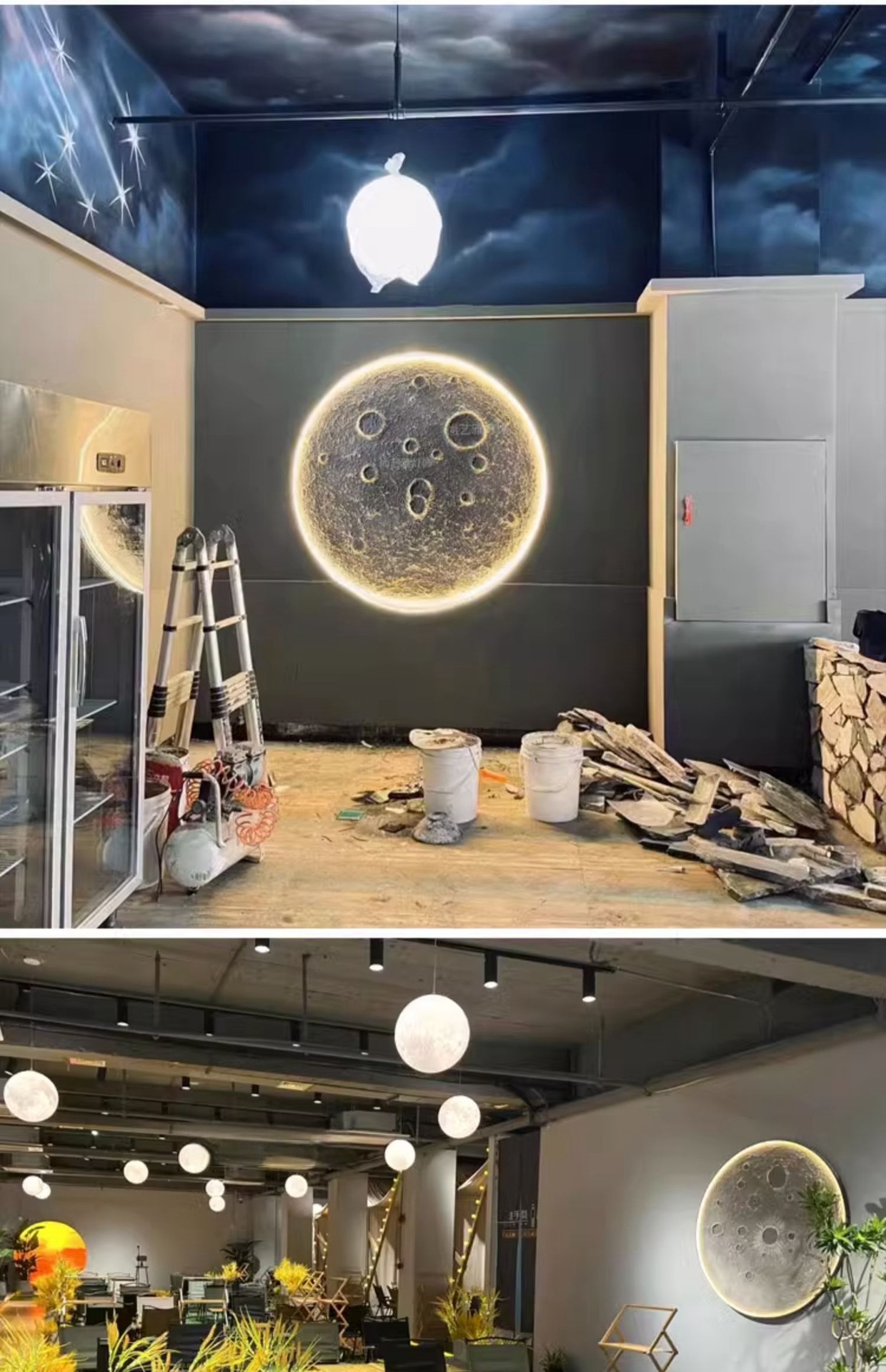 3D 입체 양각 달 램프 벽 램프 인터넷 연예인 캠핑 레스토랑 바 배경 벽 장식 라운드 달 벽화 램프