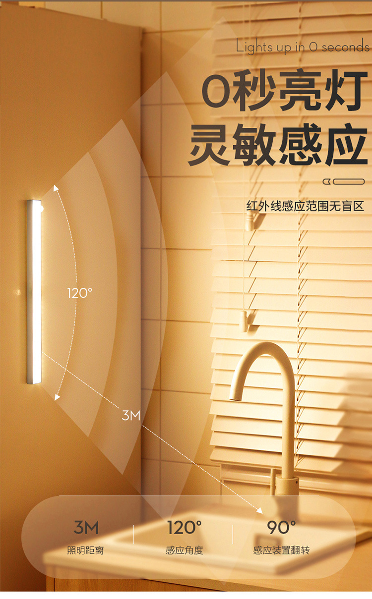LED 스마트 인체 감지 무선 긴 스트립 충전식 주방 옷장 캐비닛 와인 캐비닛 침실 조명 스트립 야간등