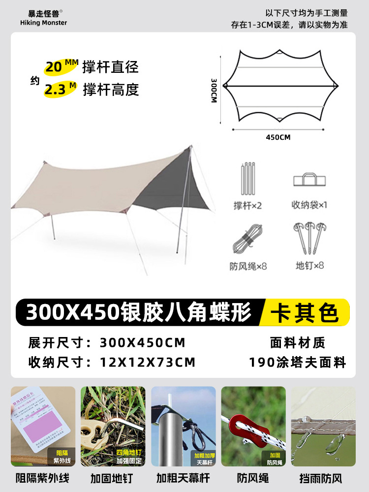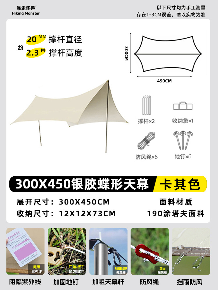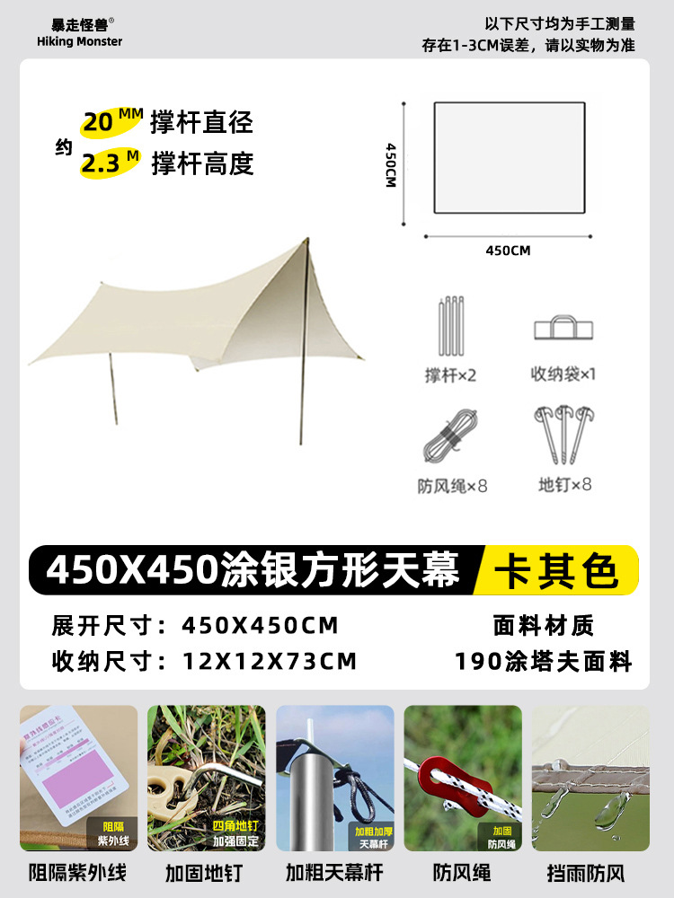 야외 대형 비닐 캐노피 캠핑 텐트 캠핑 피크닉 방수 및 자외선 차단 스톨 천막