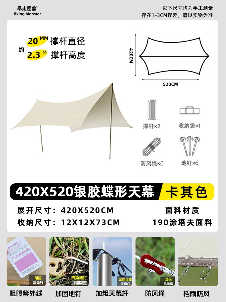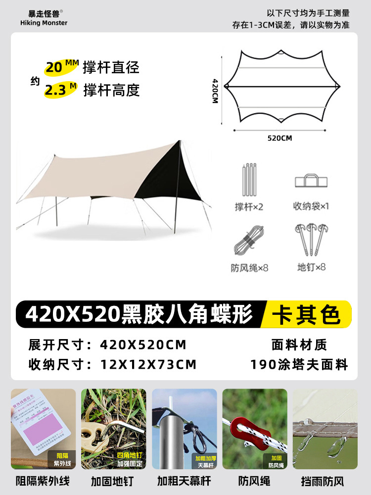 야외 대형 비닐 캐노피 캠핑 텐트 캠핑 피크닉 방수 및 자외선 차단 스톨 천막스토어 가기