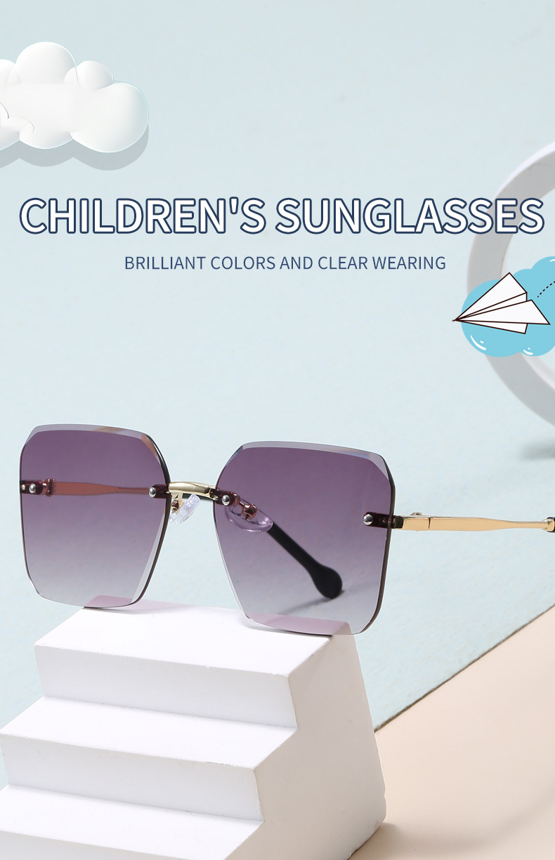 어린이 선글라스, 패셔너블하고 귀여운 아기 사각형 무테 선글라스, 남성용 및 여성용 자외선 차단 선글라스, 트렌디함