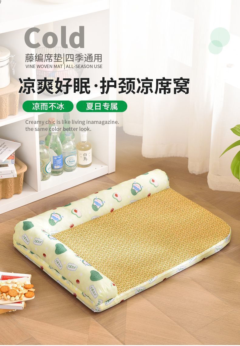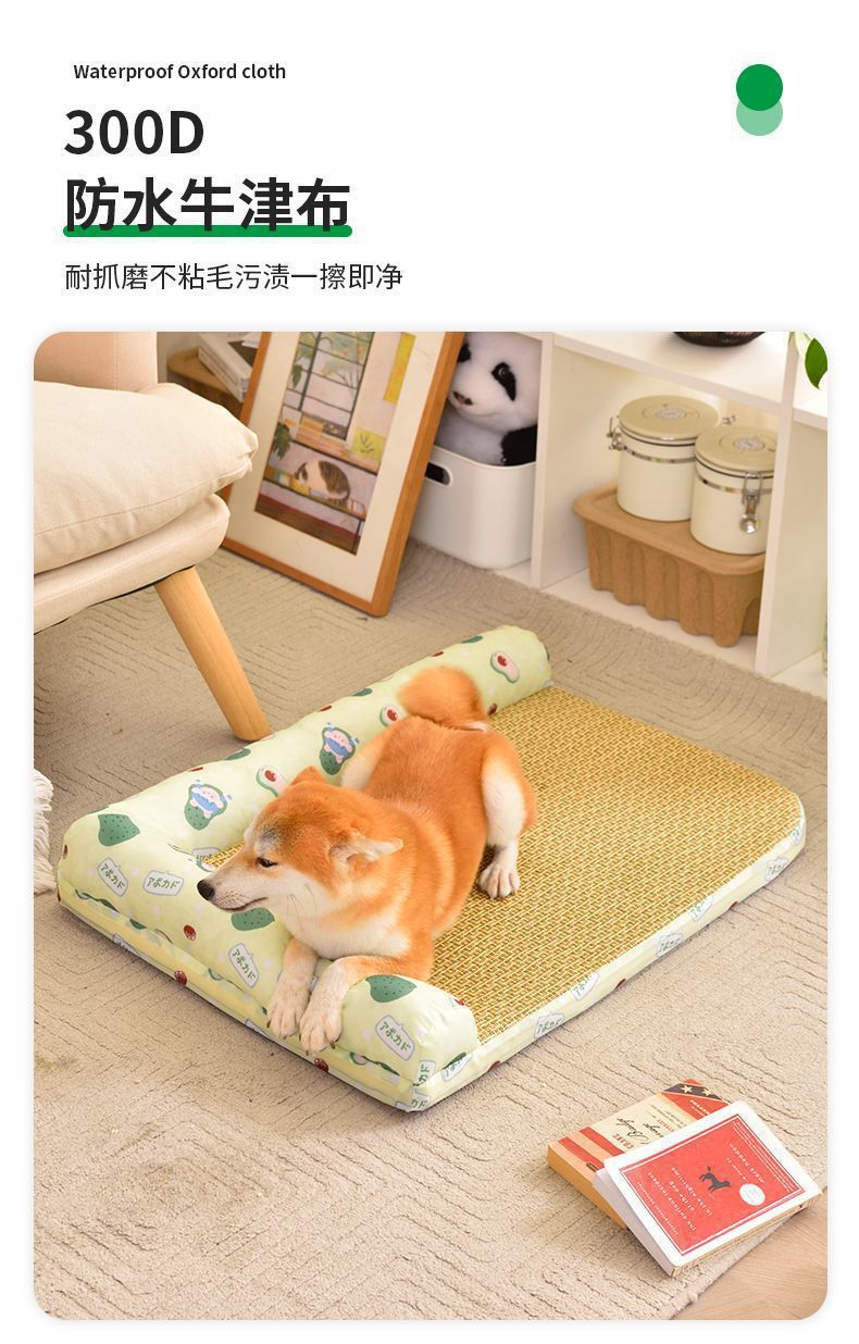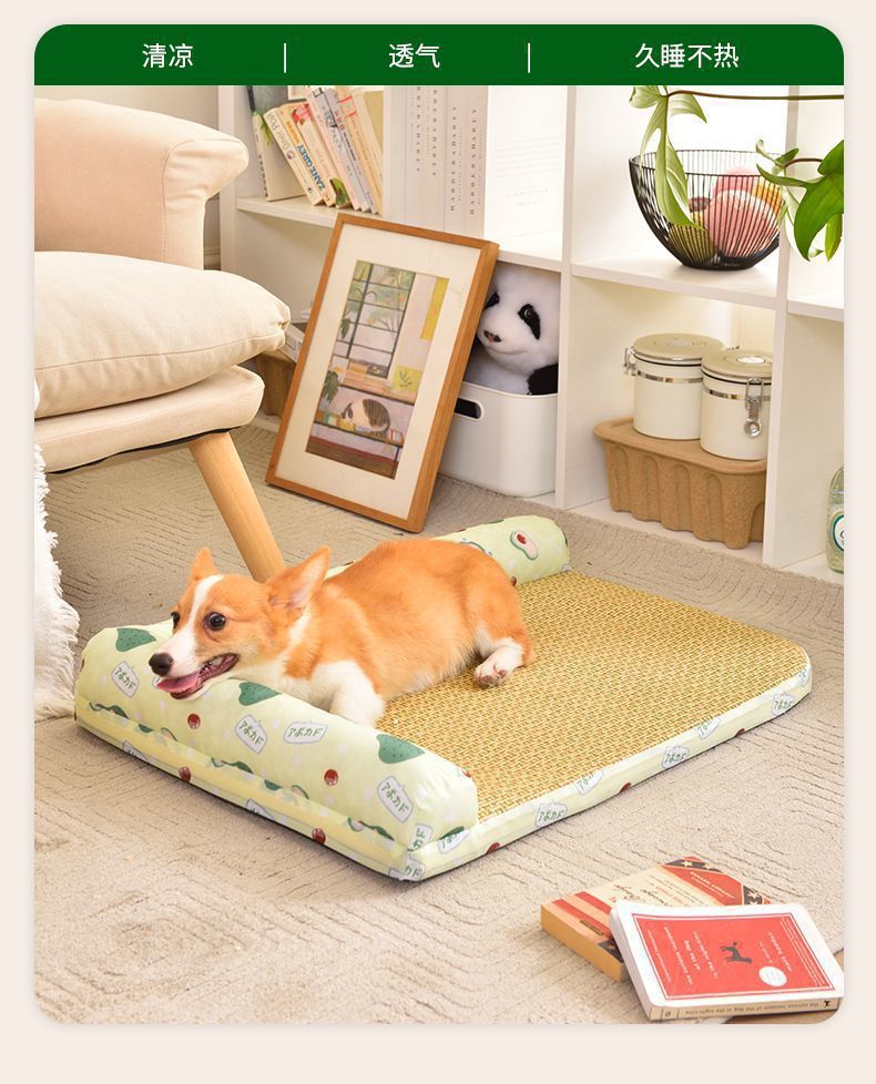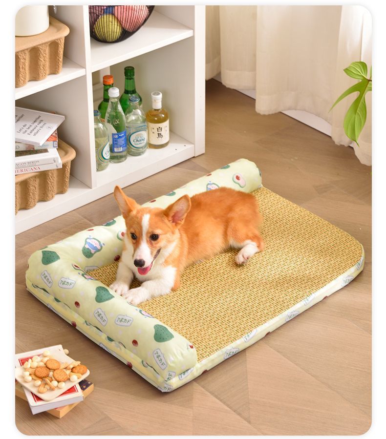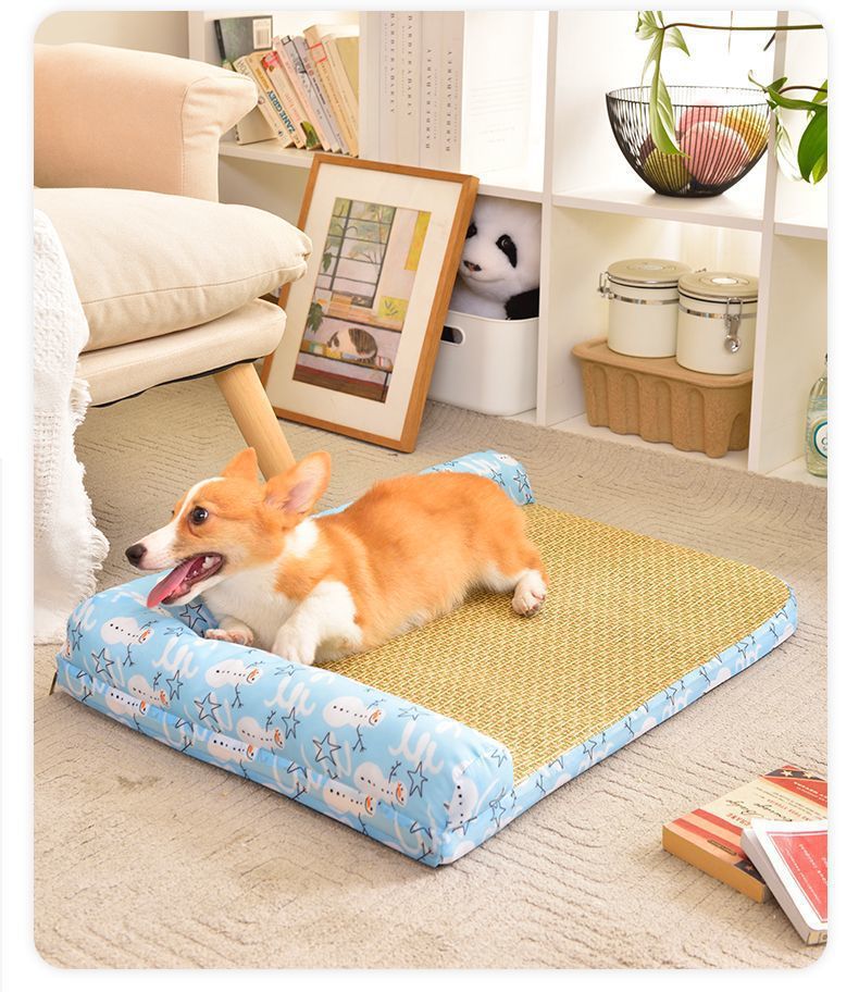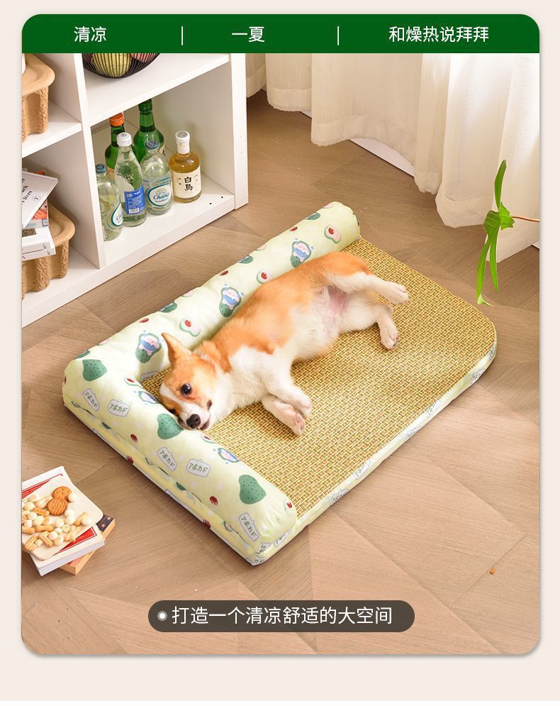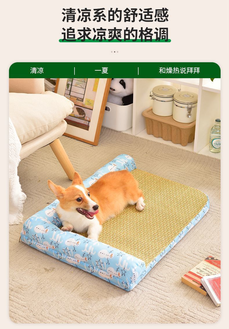 여름용 아이스 실크 매트 개집, 탈부착 및 세탁 가능한 개 매트, 고양이 개집, 여름 중대형 개 수면, 봄 코기 개 및 고양이스토어 가기