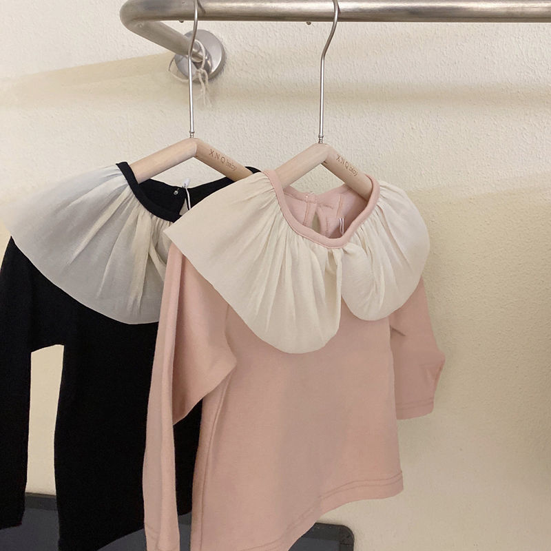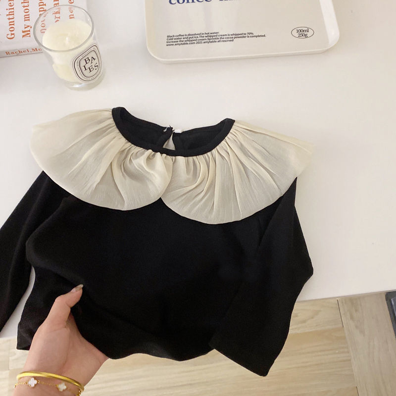 여자 봄, 가을 얇은 긴팔 달콤한 공주 탄성 어린이 티셔츠 탑 레이스 칼라 바닥 셔츠 소녀 아동 의류스토어 가기