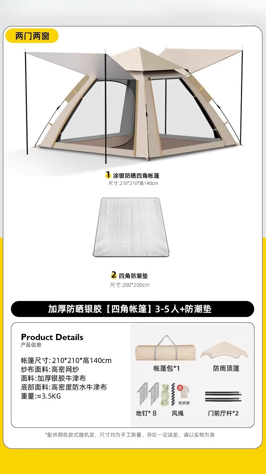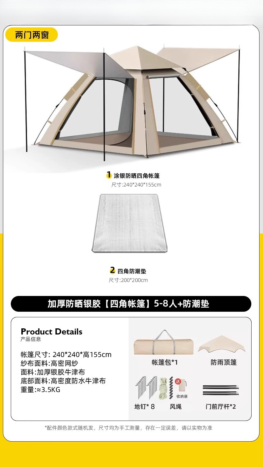 • [3-5인용 대형] [두 개의 문과 두 개의 창문, 두꺼운 은색 접착제] 로비 폴 포함