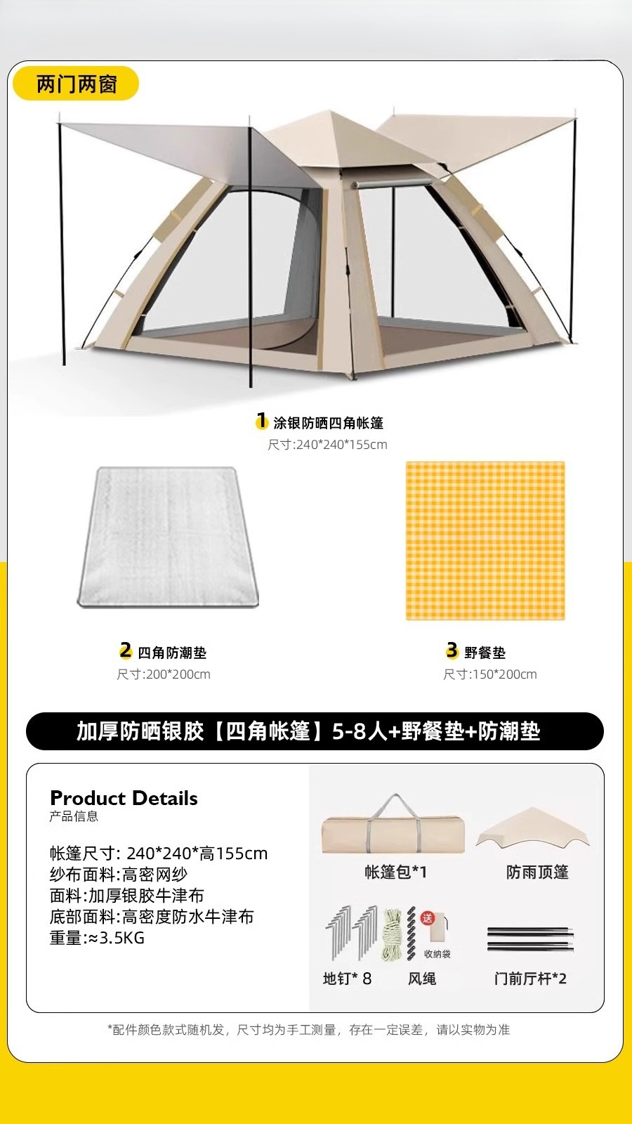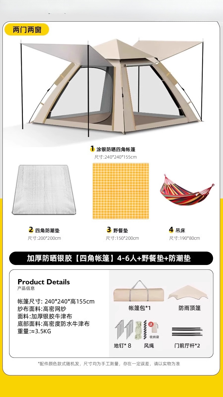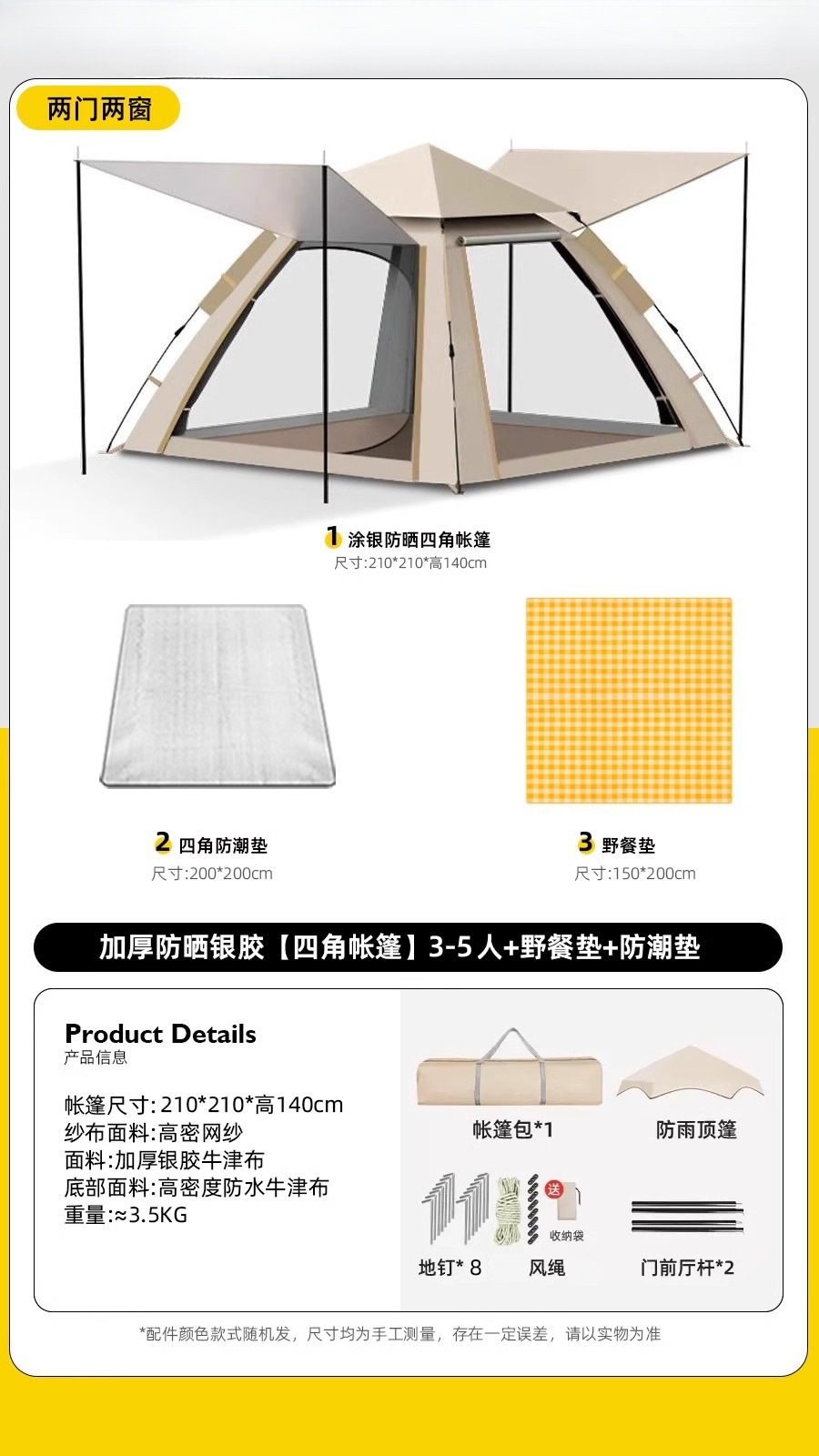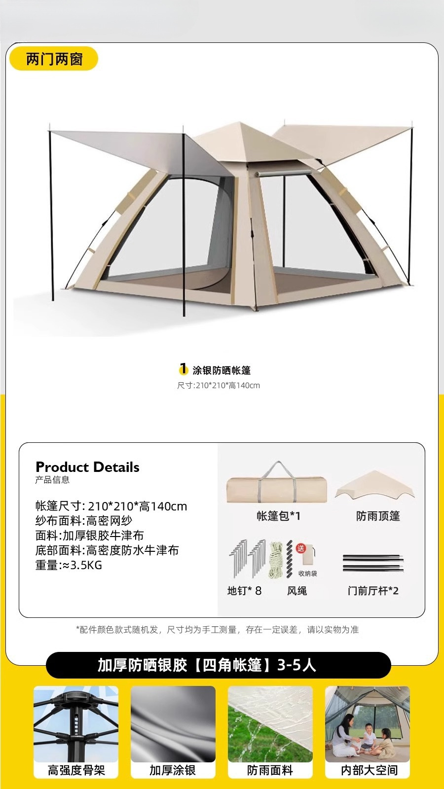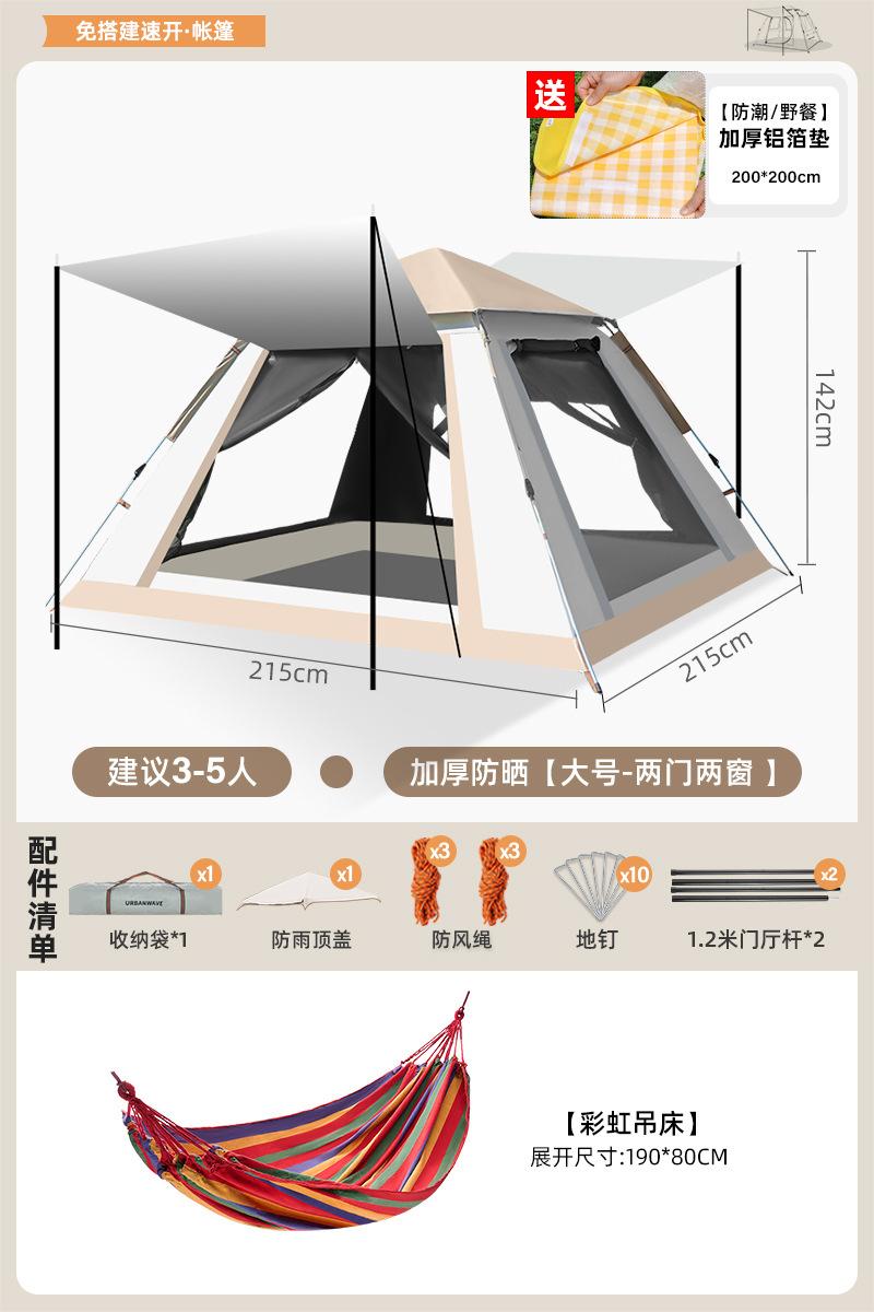 야외 텐트 캠핑 휴대용 접이식 빠른 개방 원클릭 개폐 완전 자동 실내 공원 부모-자식 캠핑 피크닉