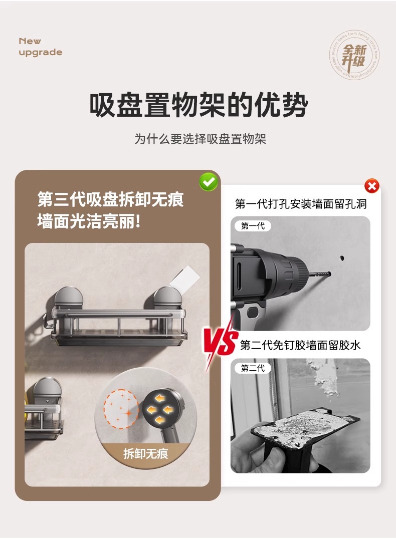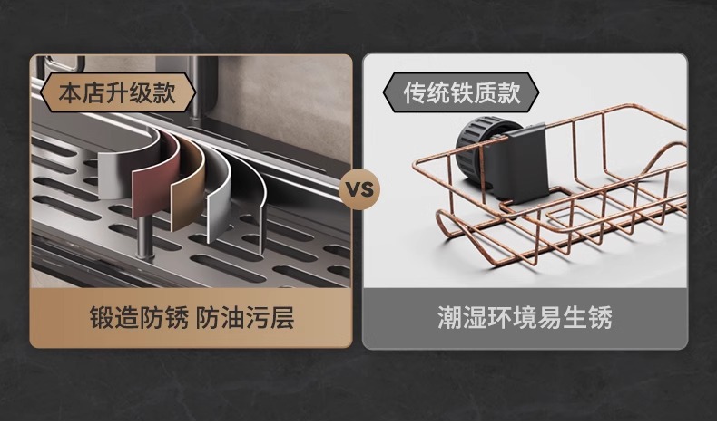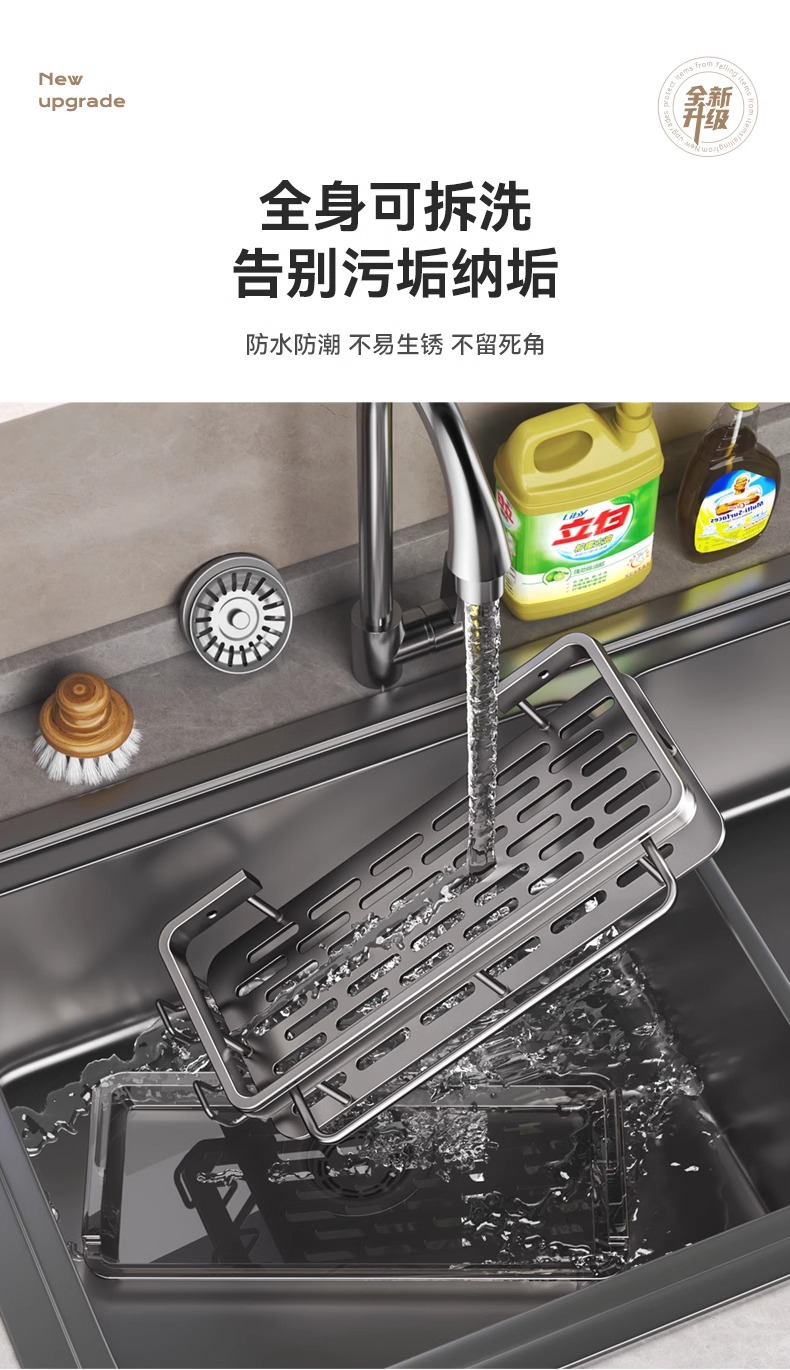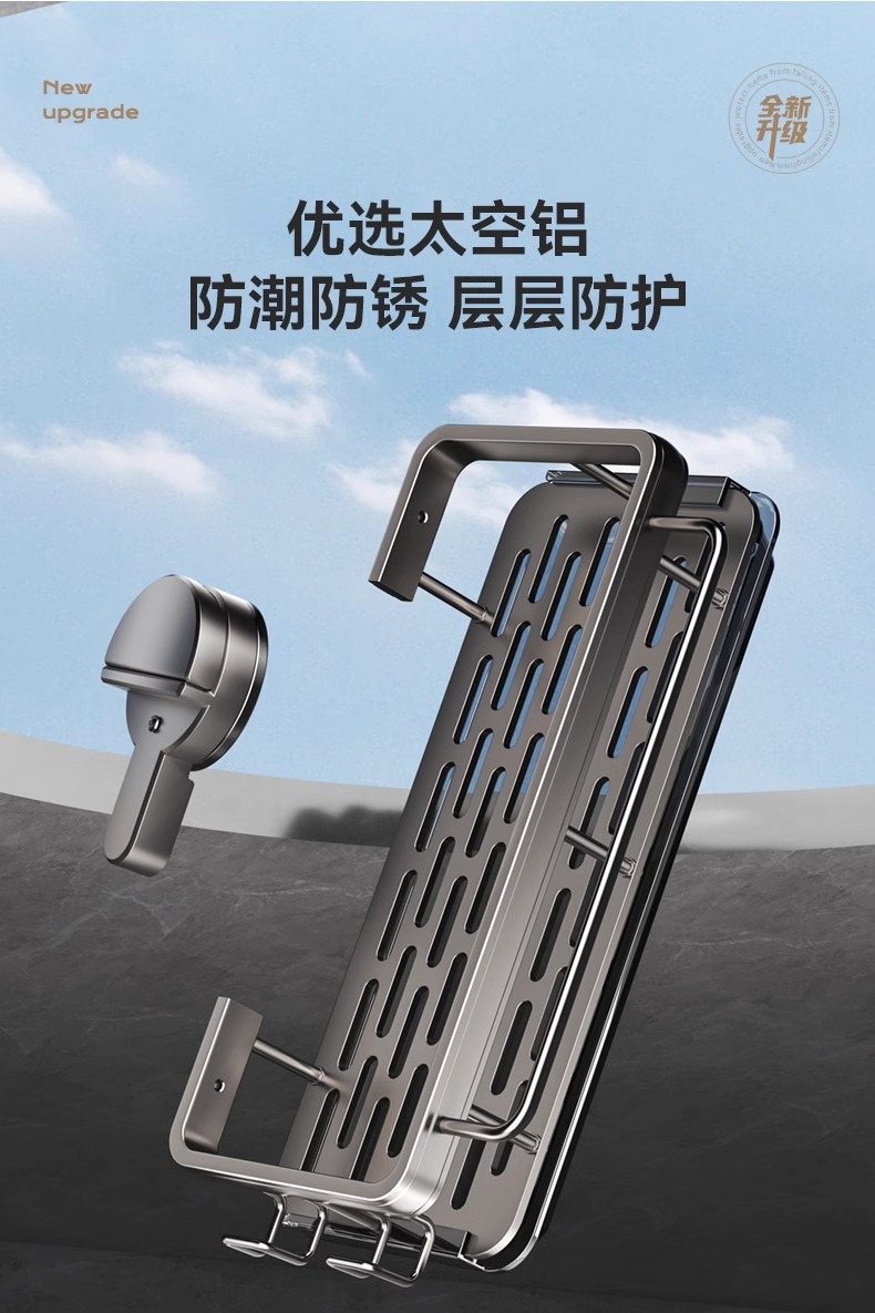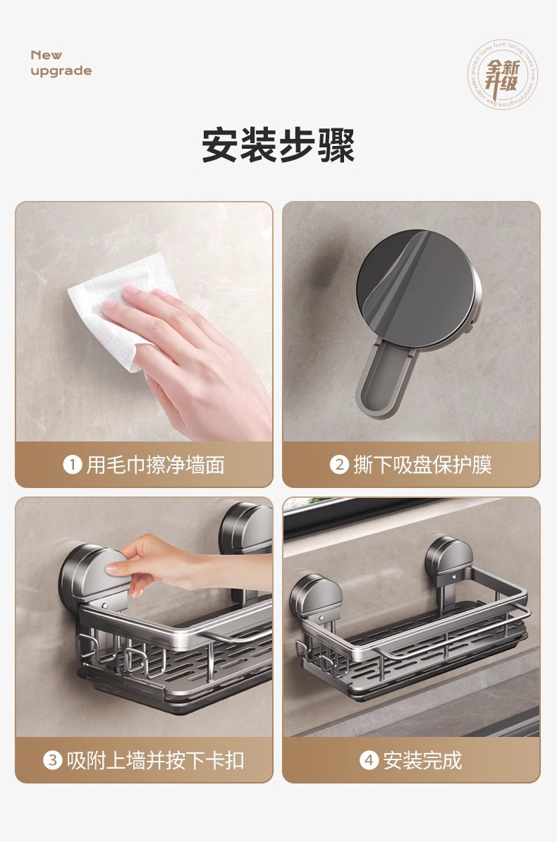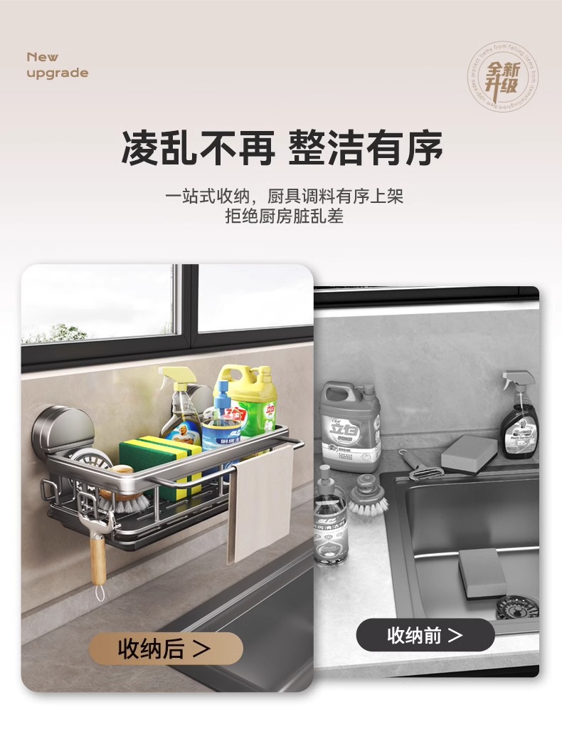 흡착컵 주방수납선반, 걸레수납 및 배수선반, 펀치프리 벽걸이 양념선반, 수도꼭지 싱크대용품