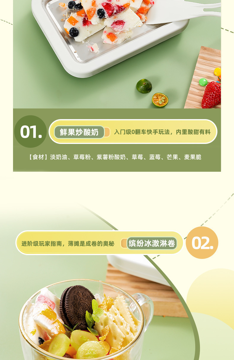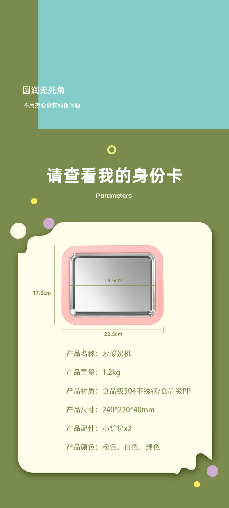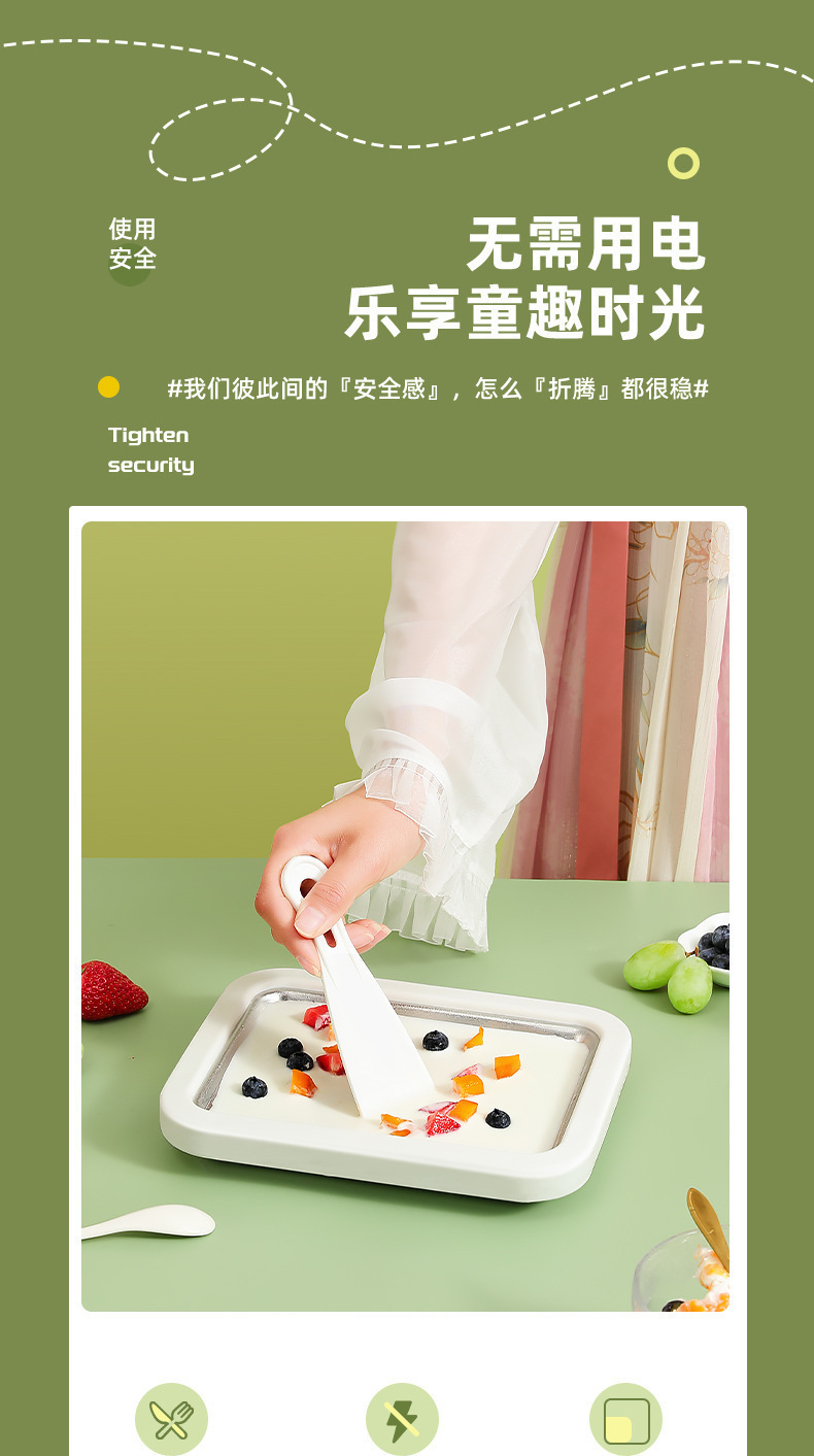 가정용 아이스크림 기계, 요거트 기계, 소형 아이스크림, 과일 아이스크림, 어린이용 스테인레스 스틸 플러그인 프리 아이스크림 트레이