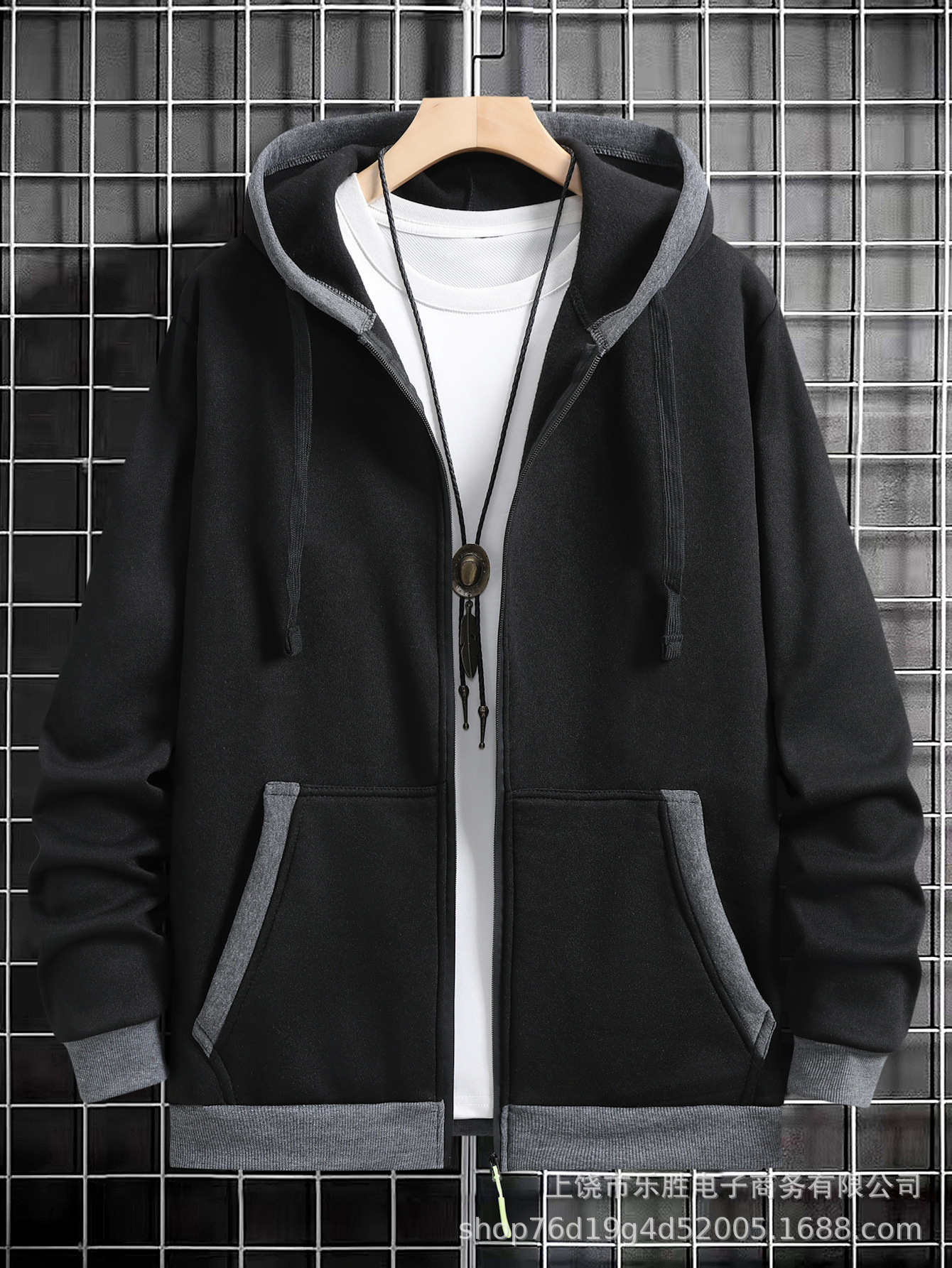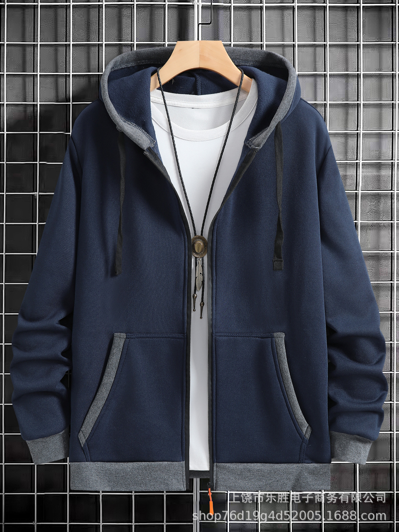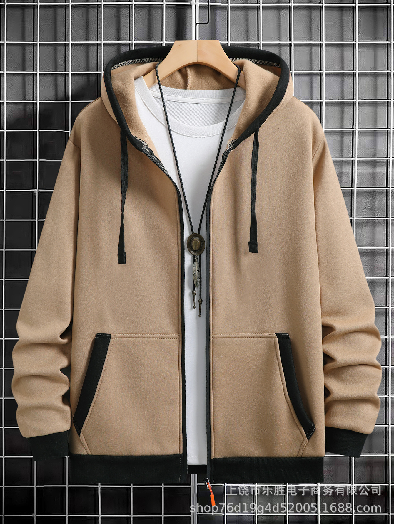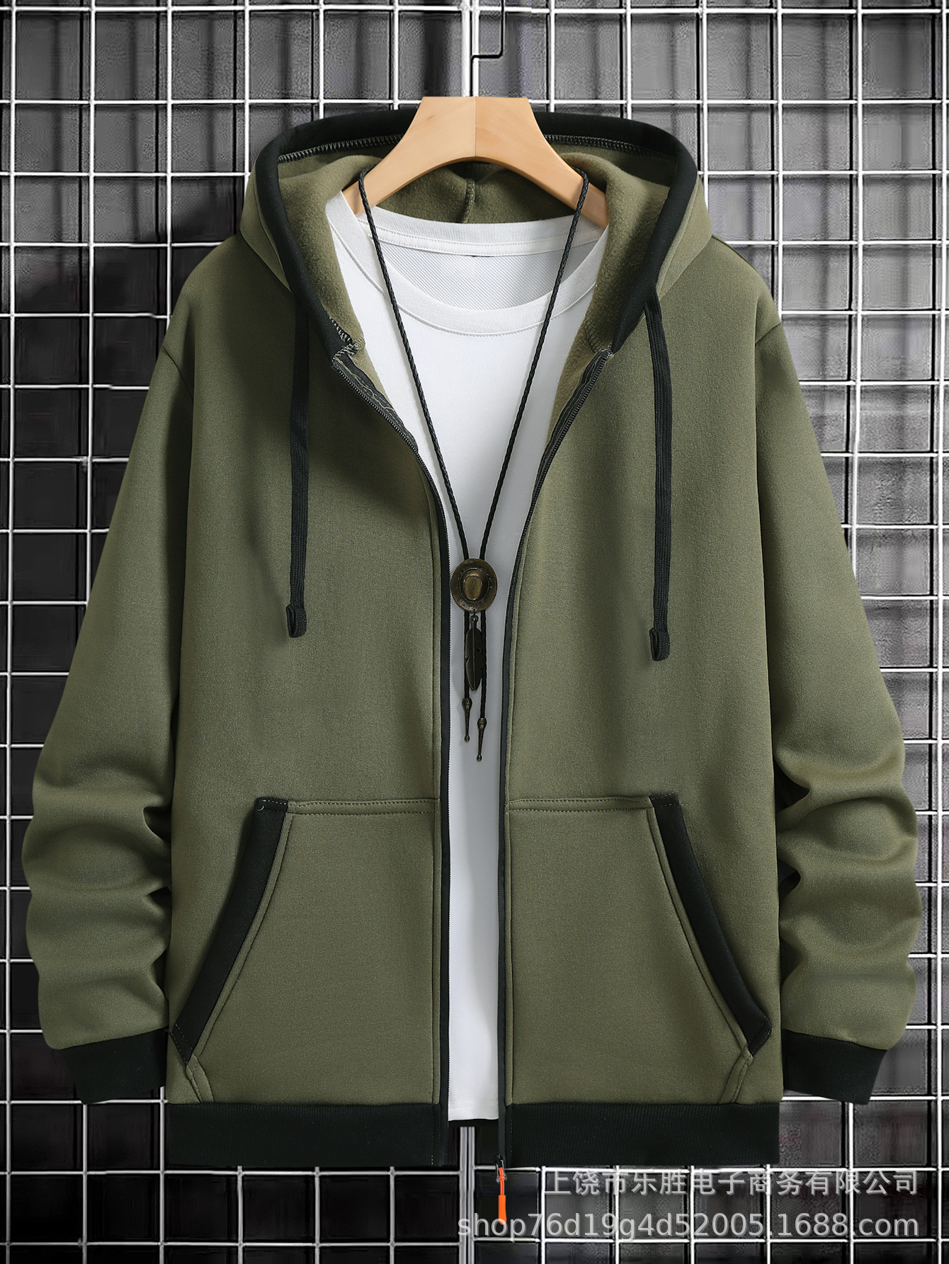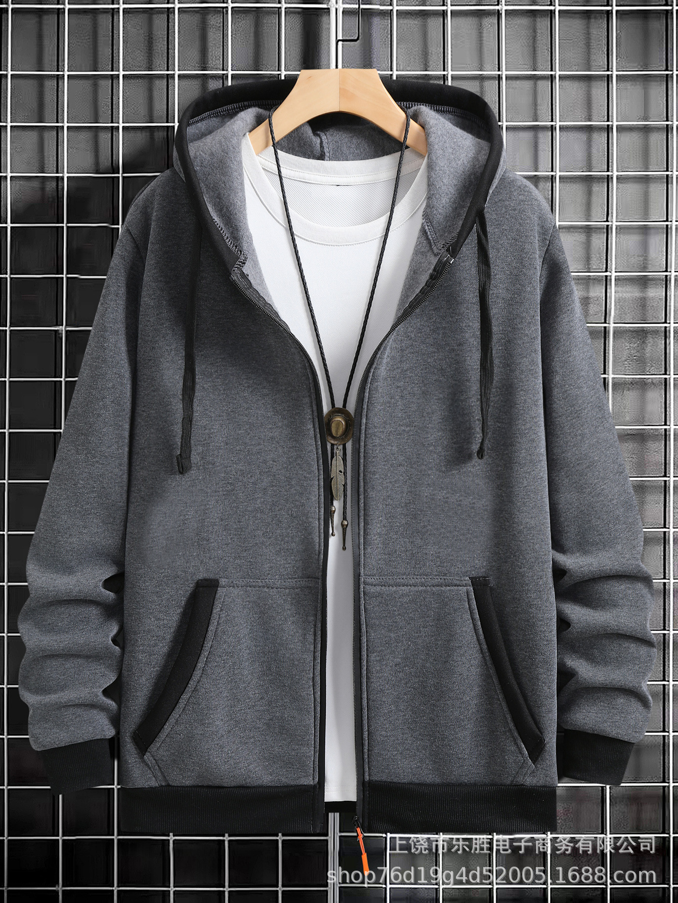 국경 간 새로운 남성 두꺼운 후드 티셔츠 청소년 카디건 탑 가을, 겨울 지퍼 스웨터 캐주얼 재킷