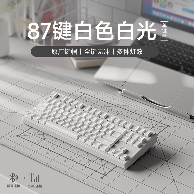 • 87키 흰색 [백색광] 무선 3모드 - 단일 키보드 - 녹색 축 [선명한 느낌]