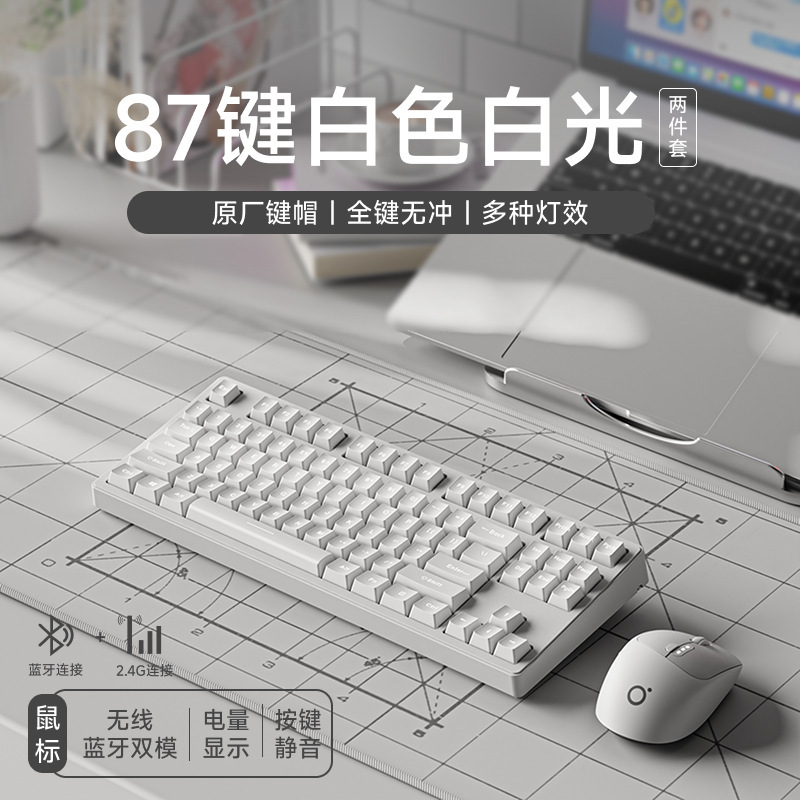 • 87키 흰색 [백색광] 무선 3모드 + 무음 마우스 - 녹색 축 [선명한 느낌]