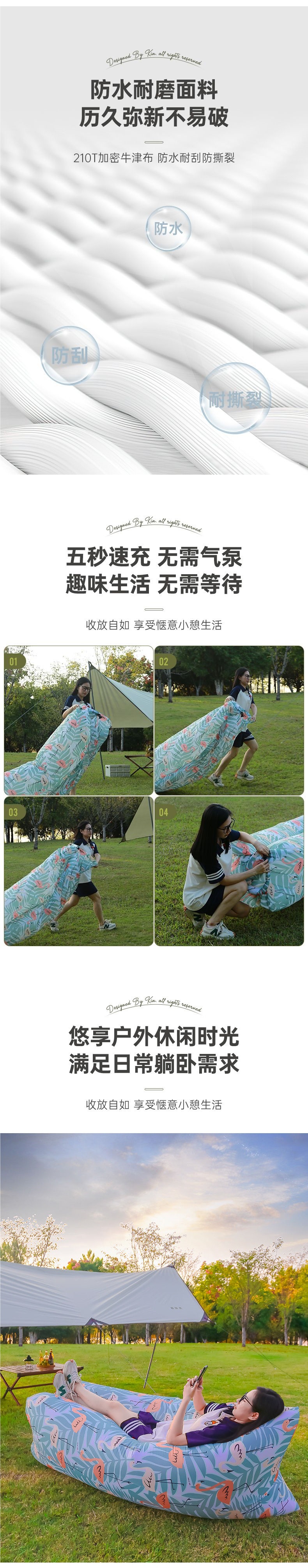 야외 게으른 풍선 소파 접이식 휴대용 에어 침대 피크닉 캠핑 용품 매트리스 에어 침대 펌프 없음