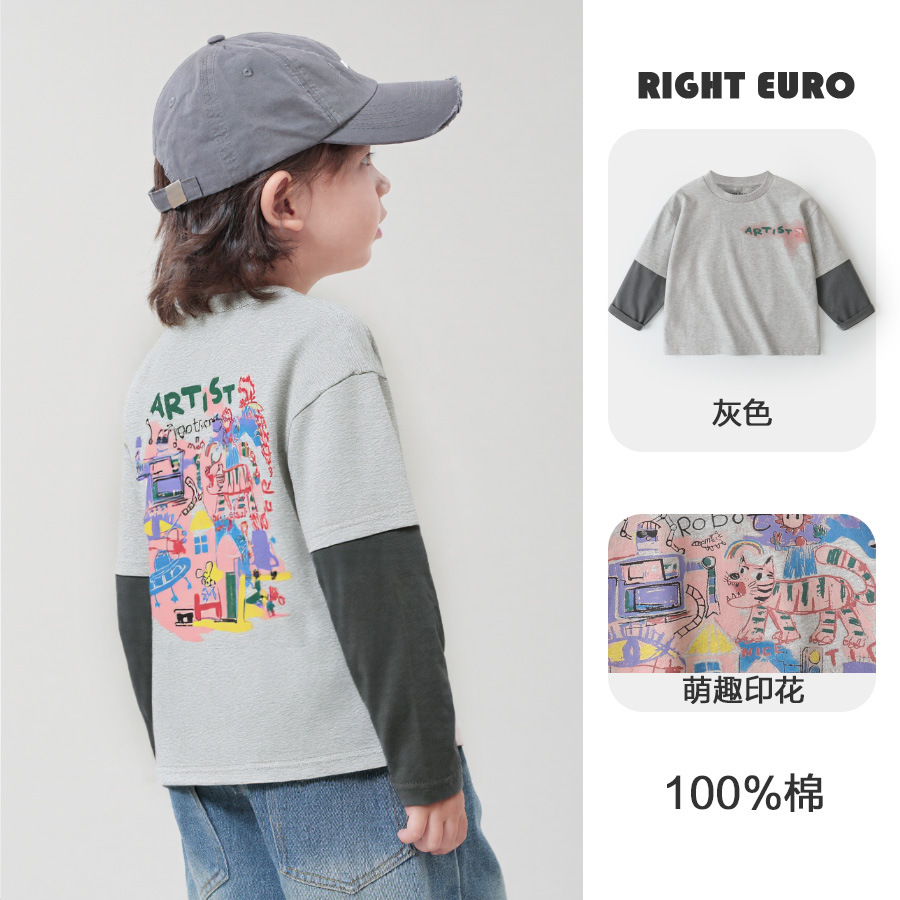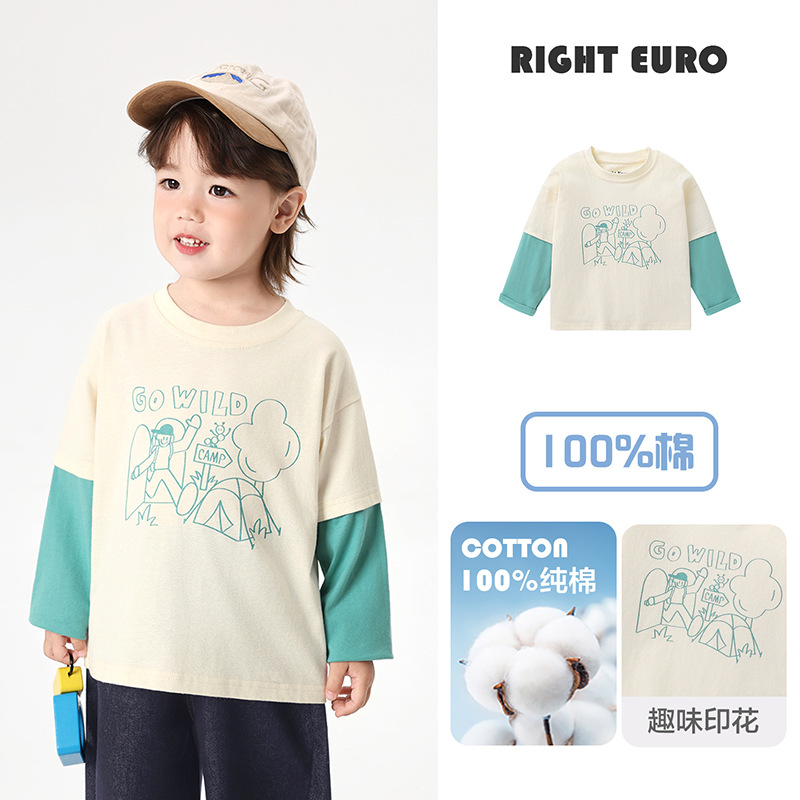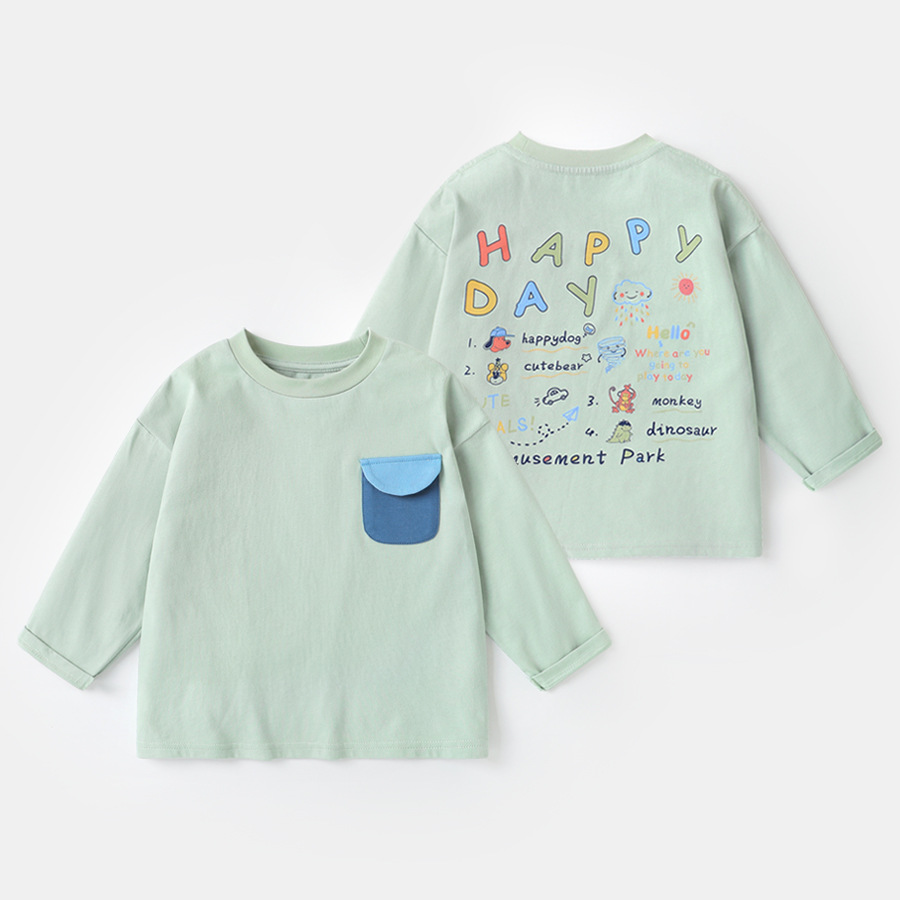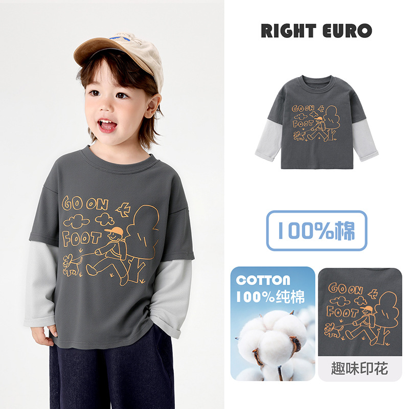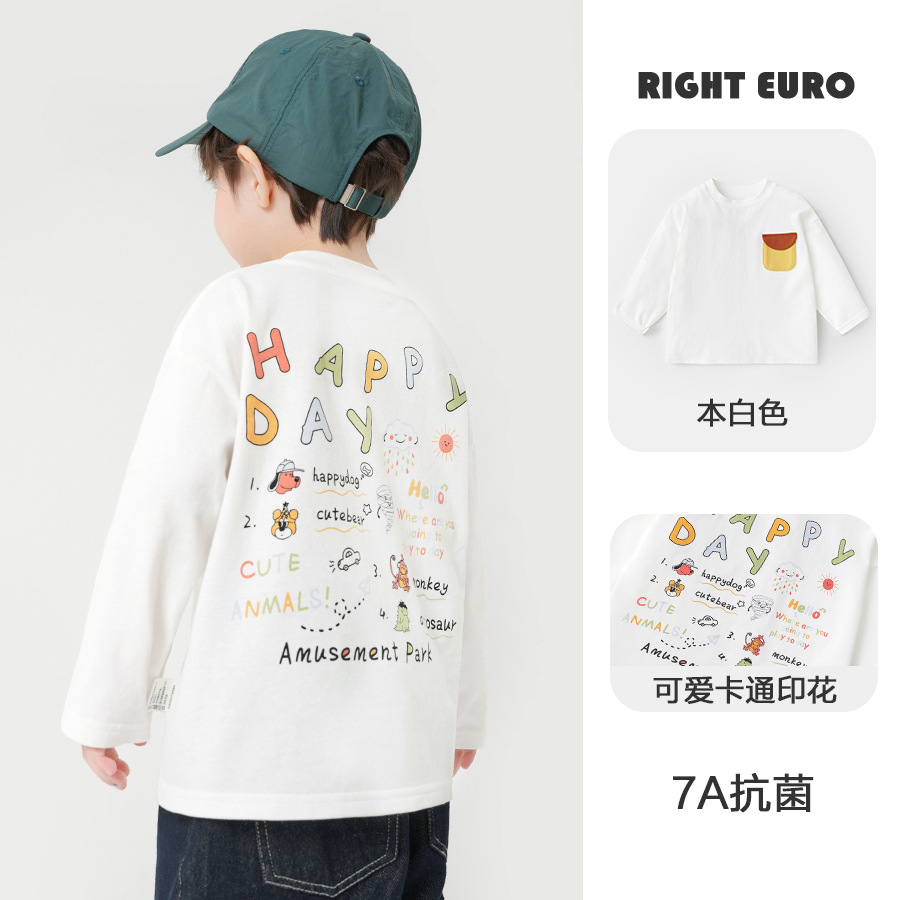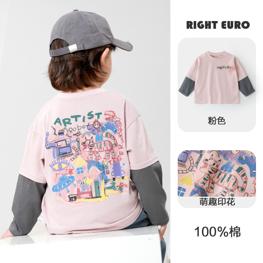 소년 순면 긴팔 티셔츠 가을 의류 봄, 가을 2025 새로운 아동 의류 아동용 베이비 베이비 셔츠 가을스토어 가기