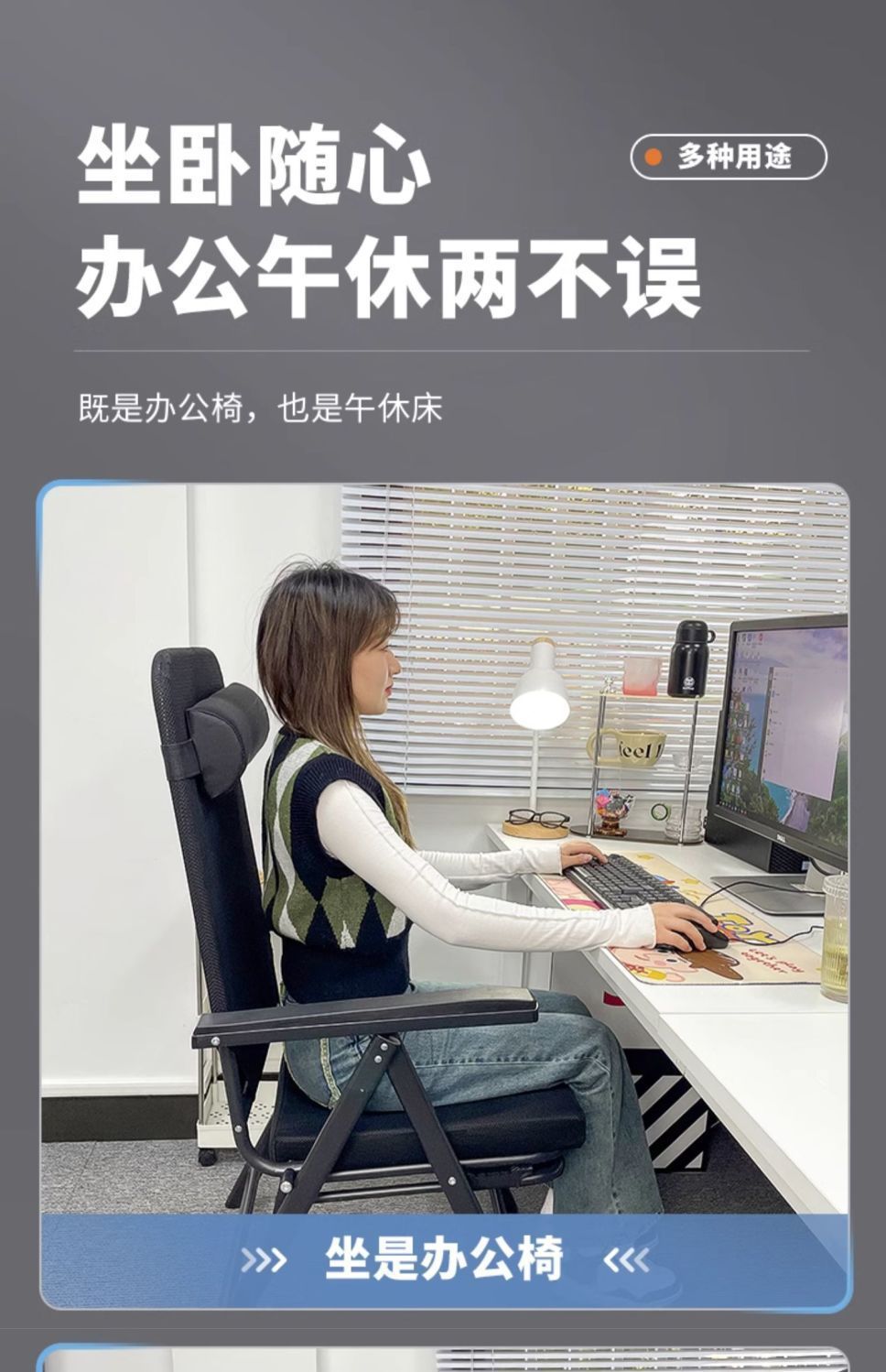 Mlo 낮잠 컴퓨터 기숙사 의자 게으른 사람들의 좌식 등받이 의자 접이식 사무실 사무실 의자 안락 의자 편안한 휴식스토어 가기