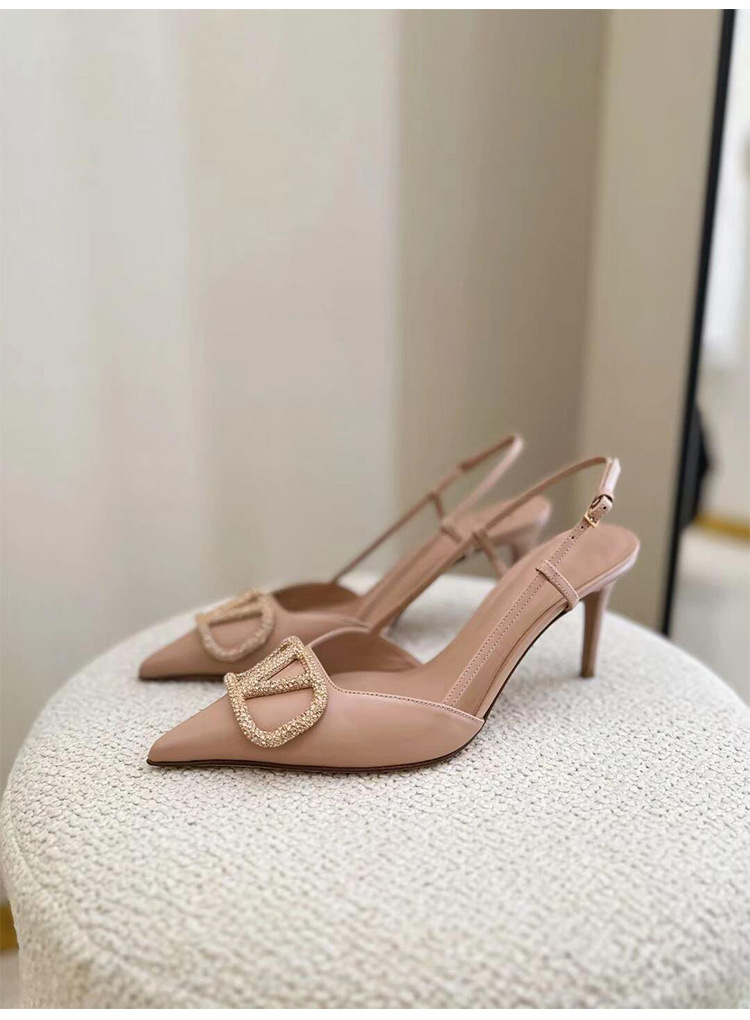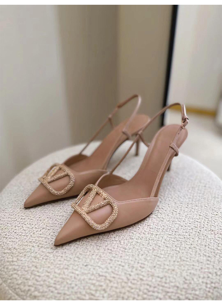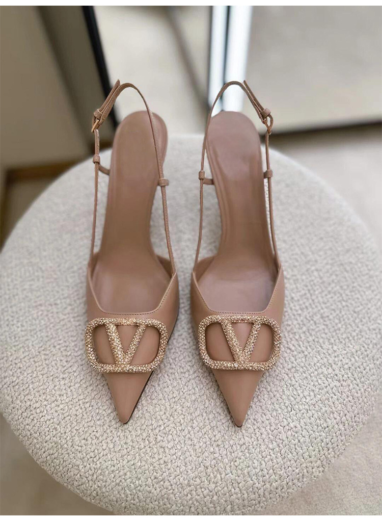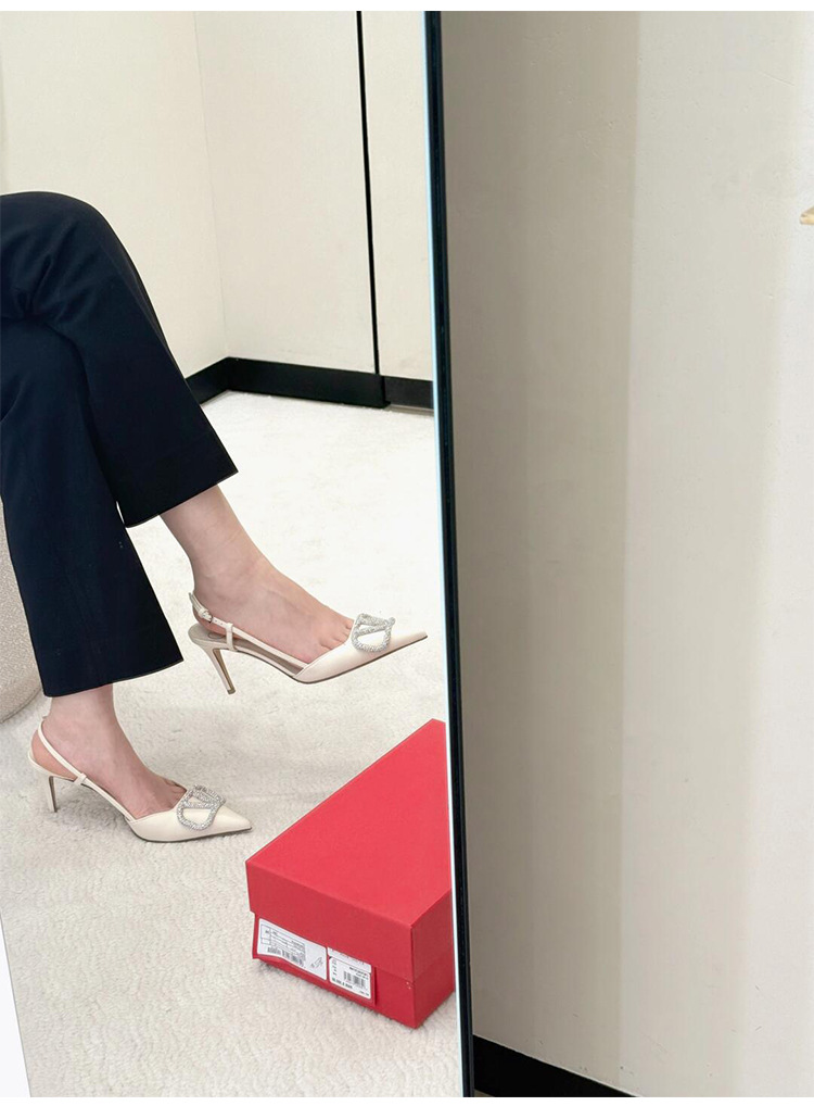 2025 봄 여름 신상 여성용 화이트 포인티드 프렌치 하이힐, 스틸레토 힐, 빈 토 샌들, 라인스톤 슈즈스토어 가기