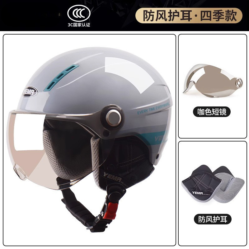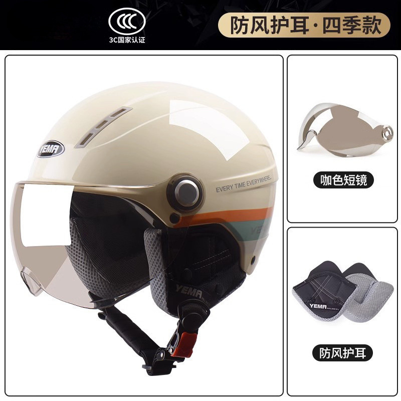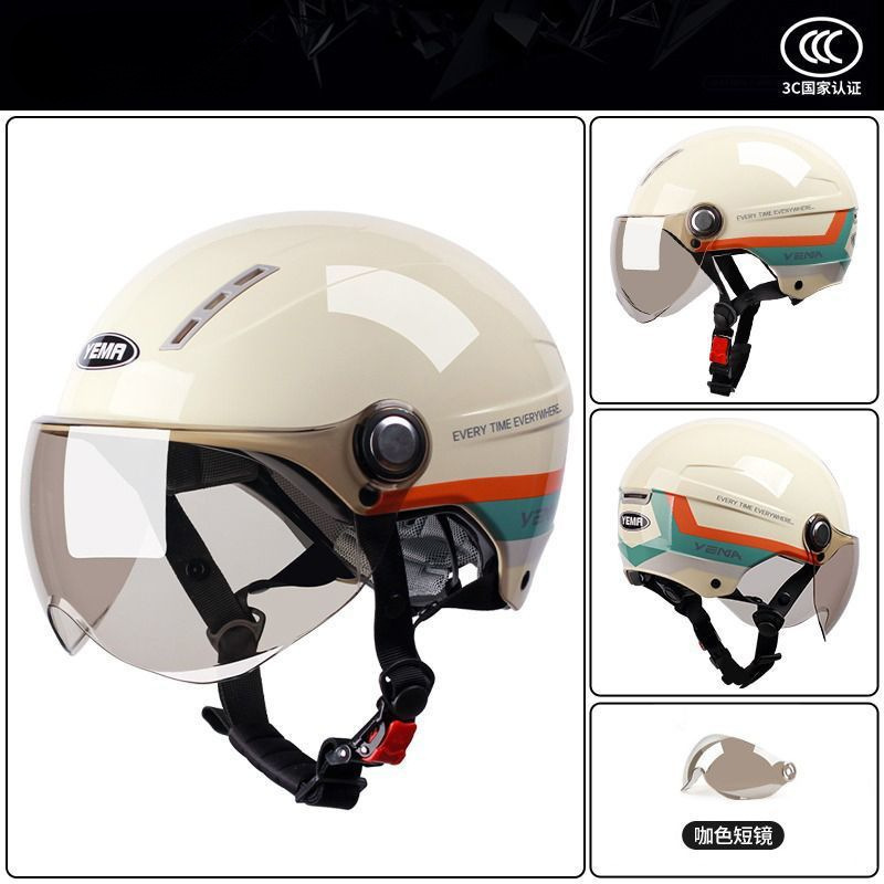 Mustang 헬멧 새로운 국가 표준 인증 전기 자동차 하프 헬멧 여성 겨울 안전 헤드 오토바이스토어 가기