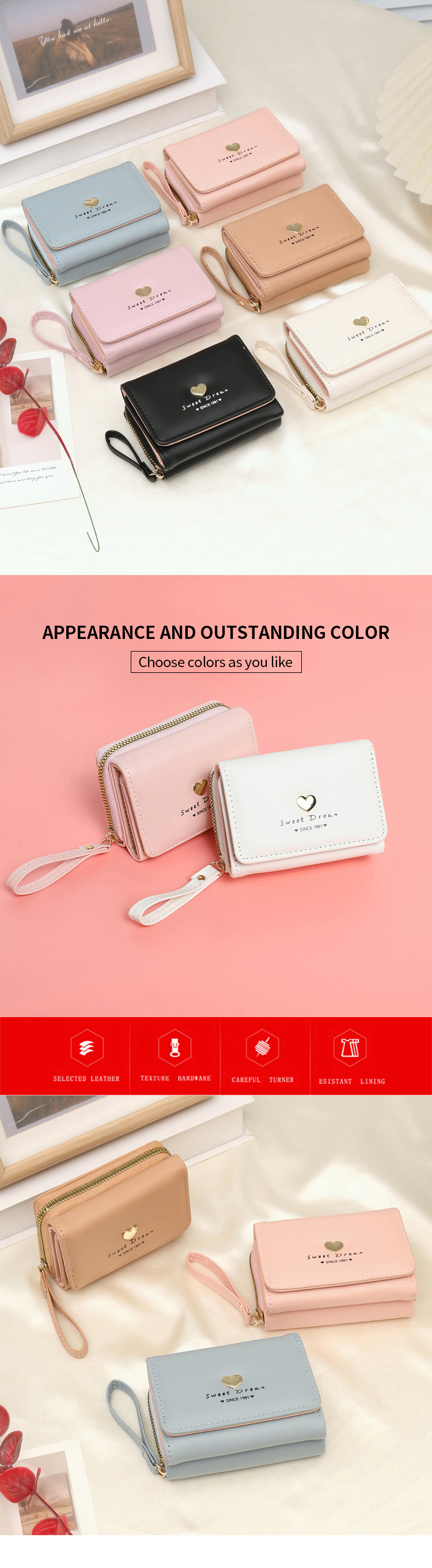 보관 가방 미니 카드 가방 열쇠 가방 귀여운 하트 모양의 하드웨어 편지 동전 지갑 휴대용 새 스타일