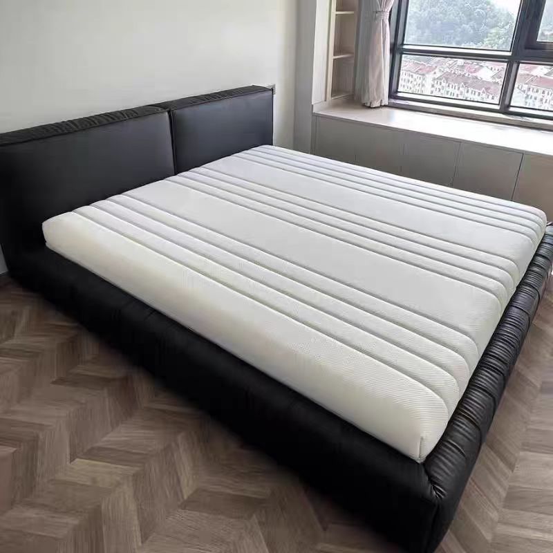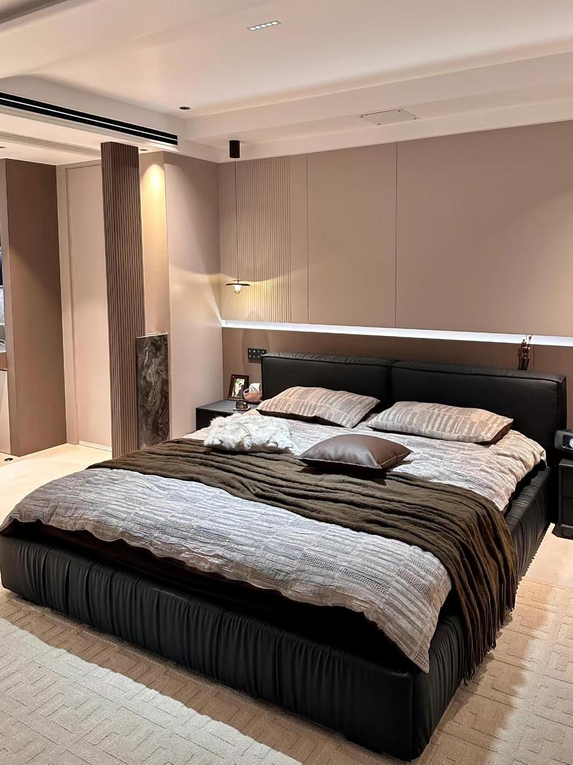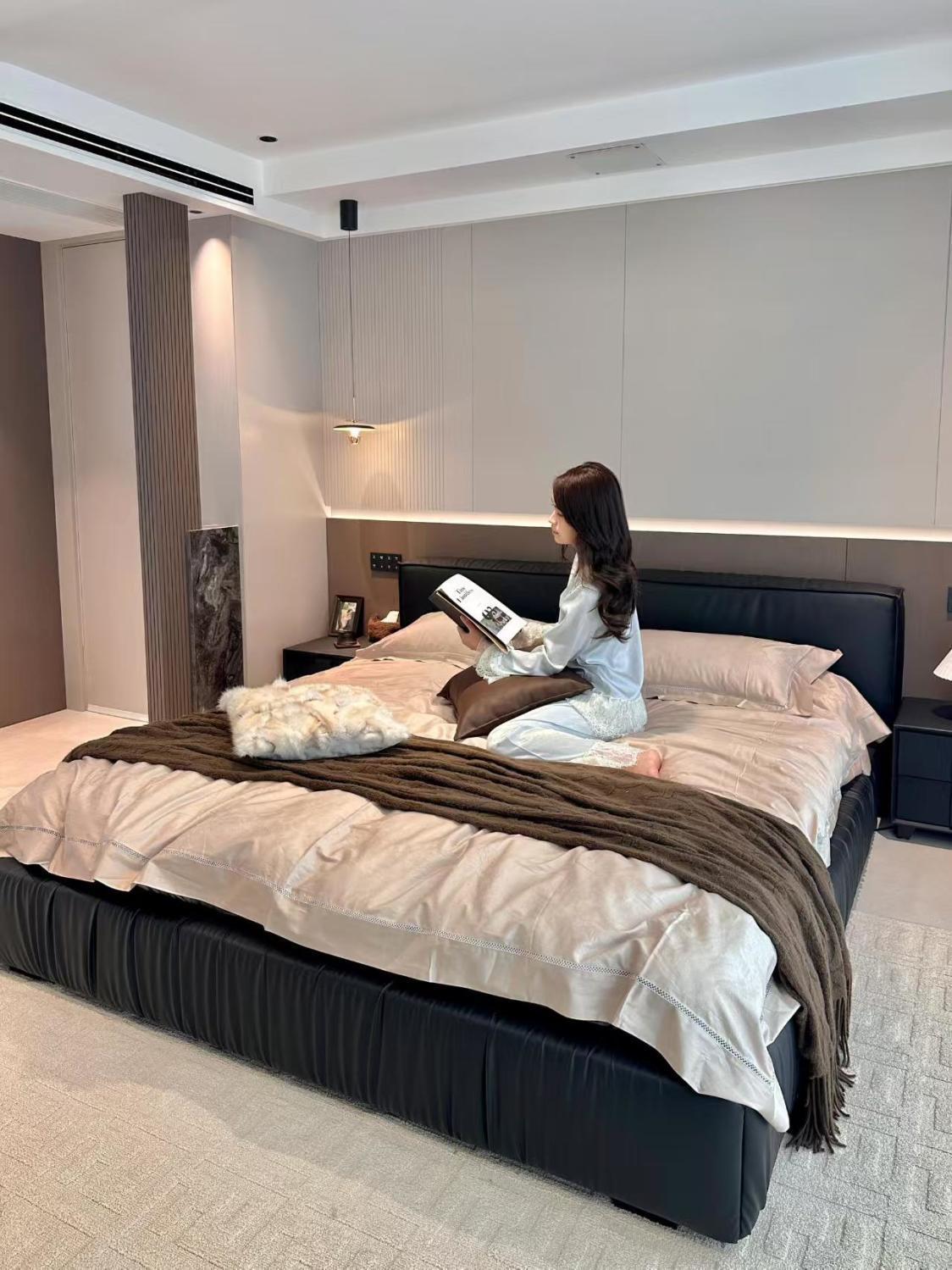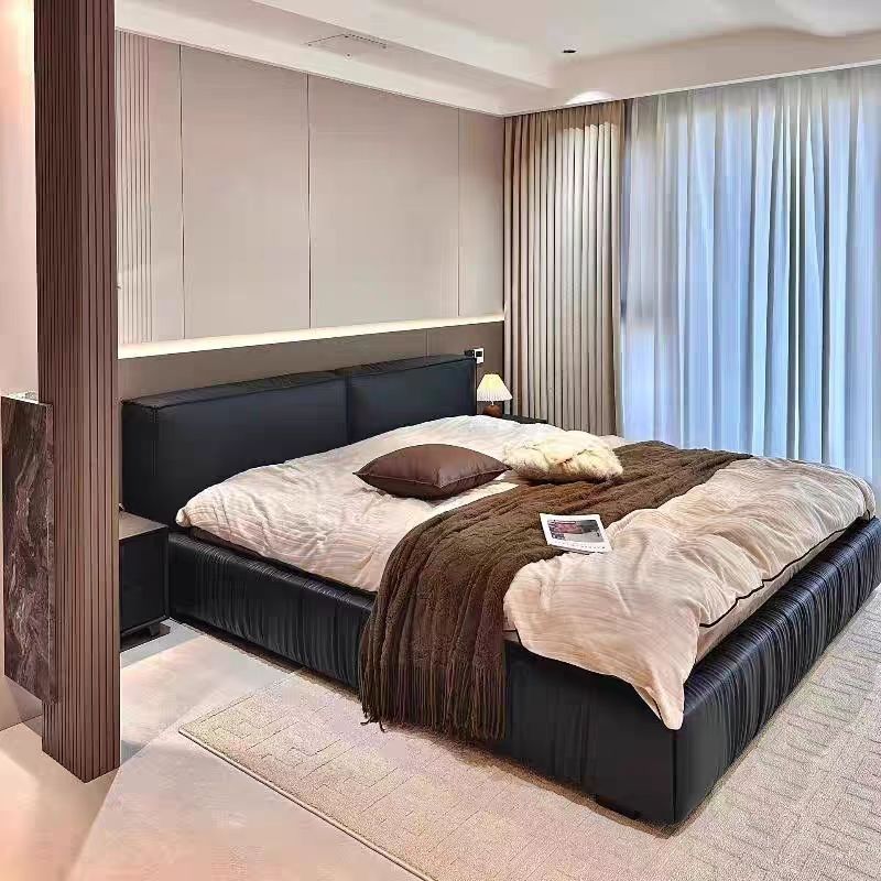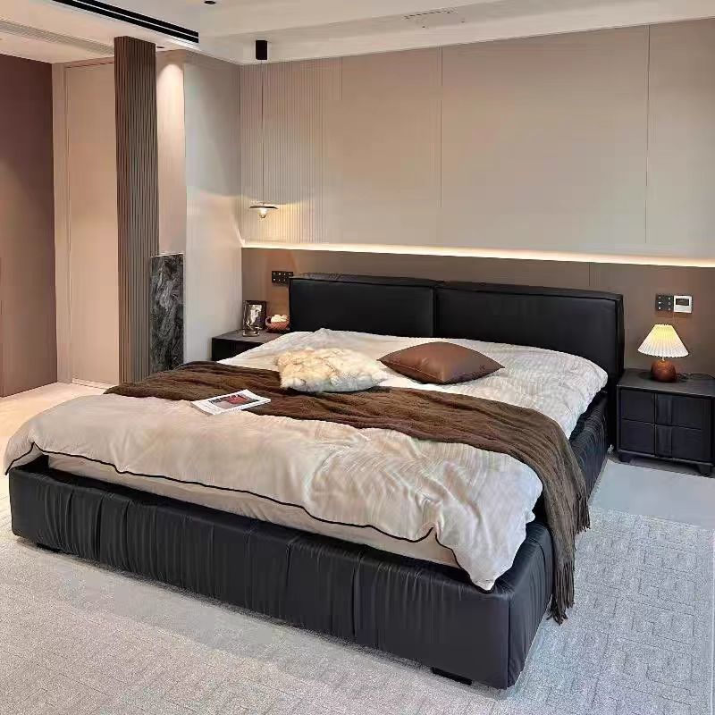 이탈리아 스타일의 가벼운 고급 가죽 침대 현대적인 미니멀리스트 더블 1.8 침대 가죽 침대 산업 스타일 현대 노르딕 스토리지 웨딩 침대스토어 가기