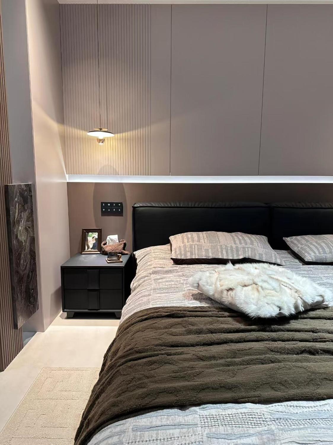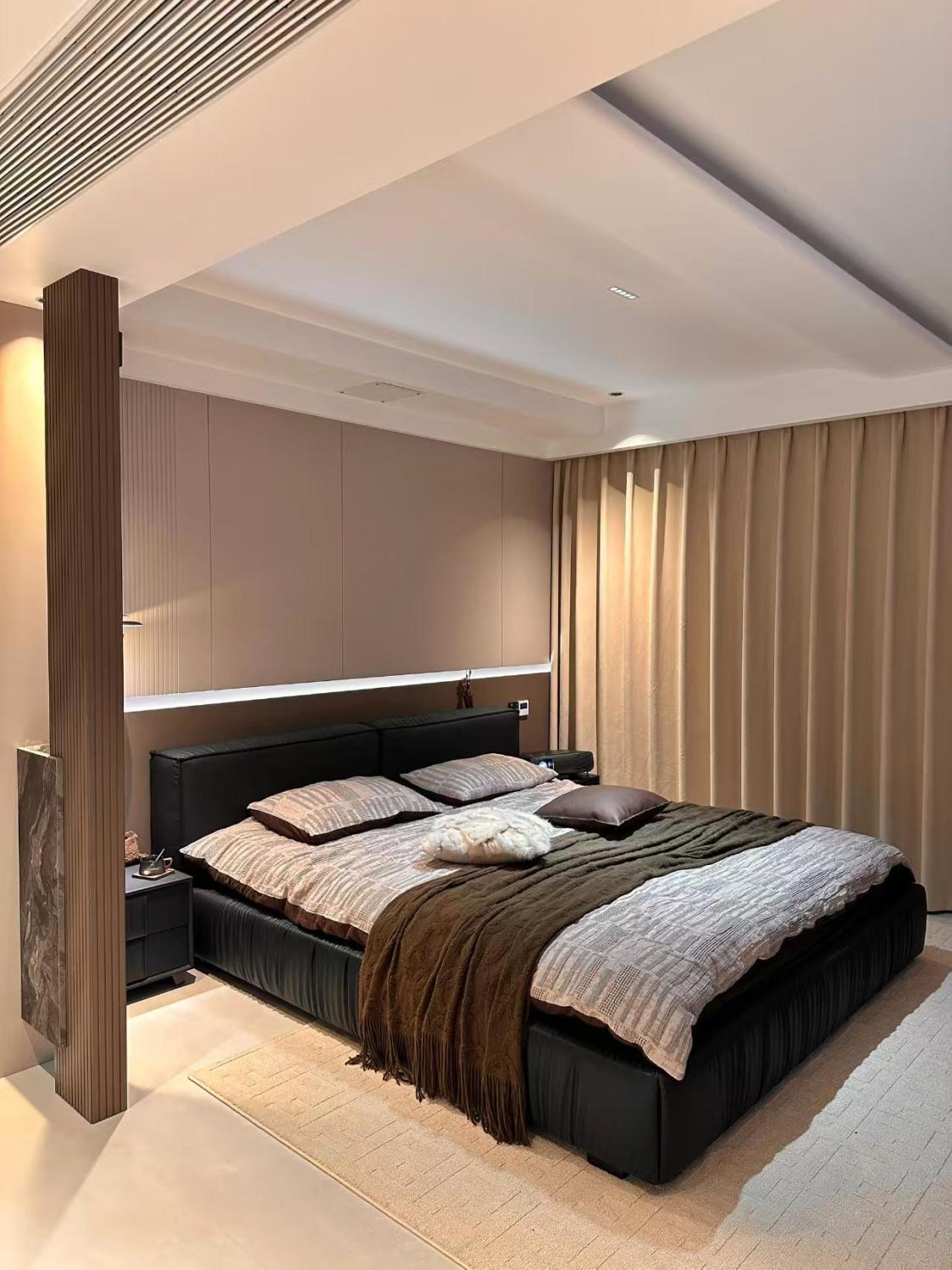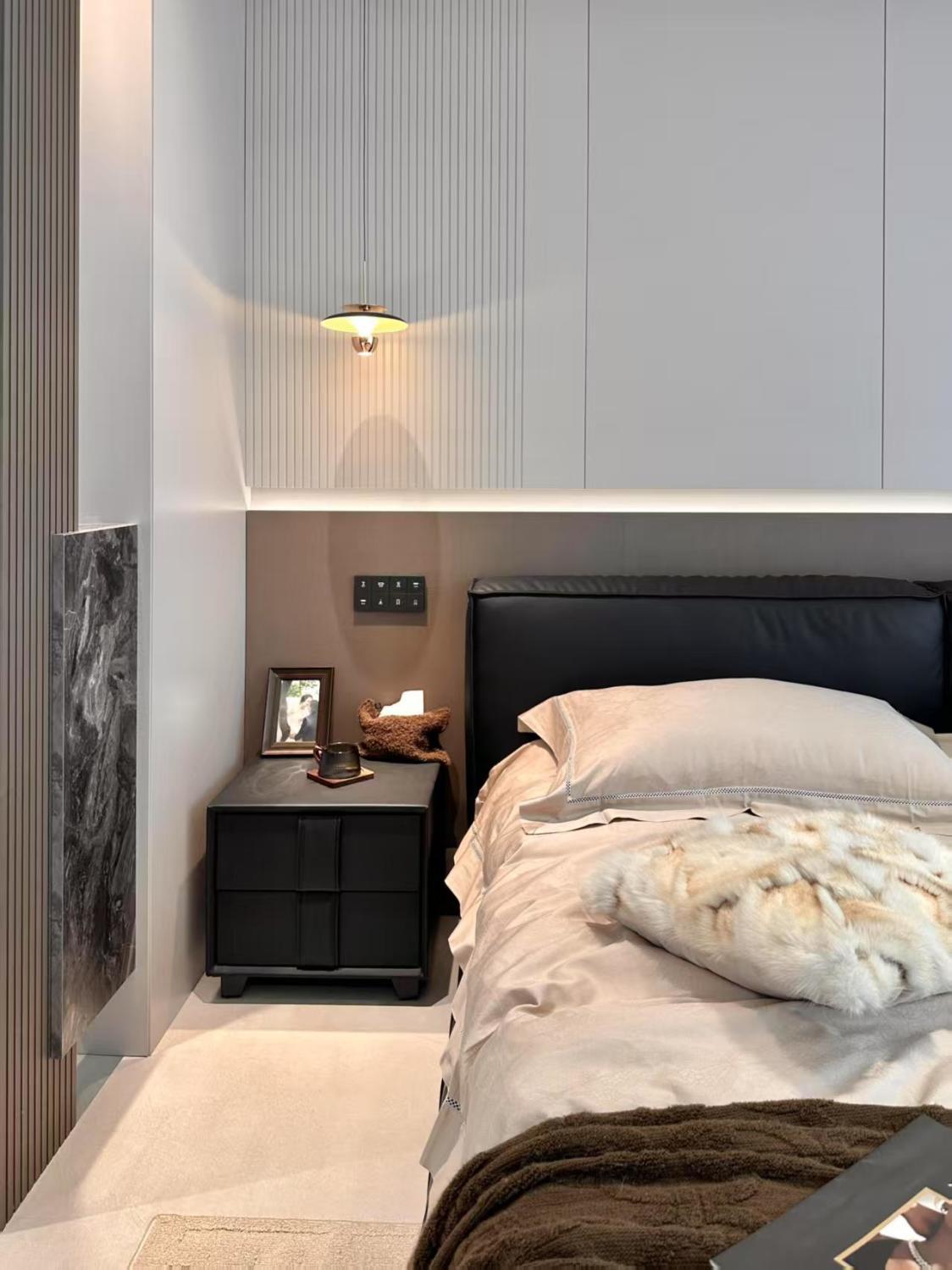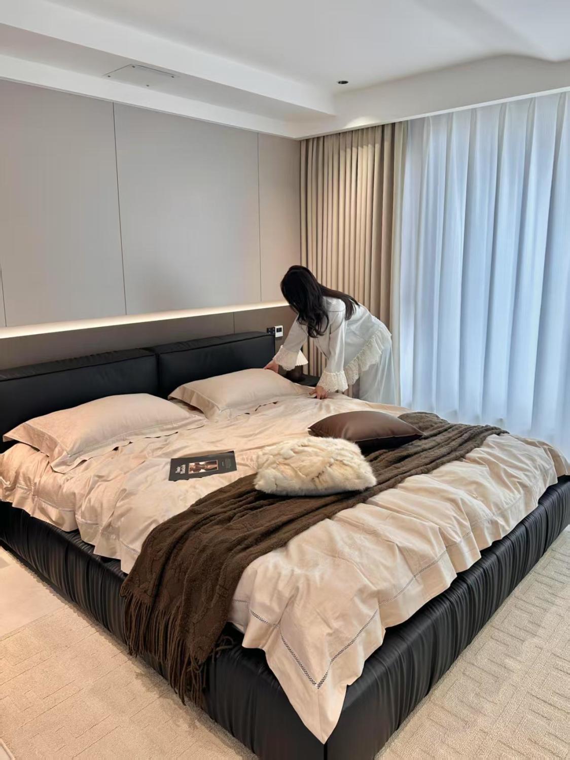 이탈리아 스타일의 가벼운 고급 가죽 침대 현대적인 미니멀리스트 더블 1.8 침대 가죽 침대 산업 스타일 현대 노르딕 스토리지 웨딩 침대스토어 가기